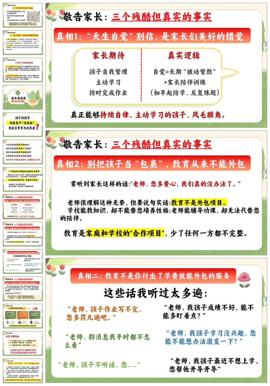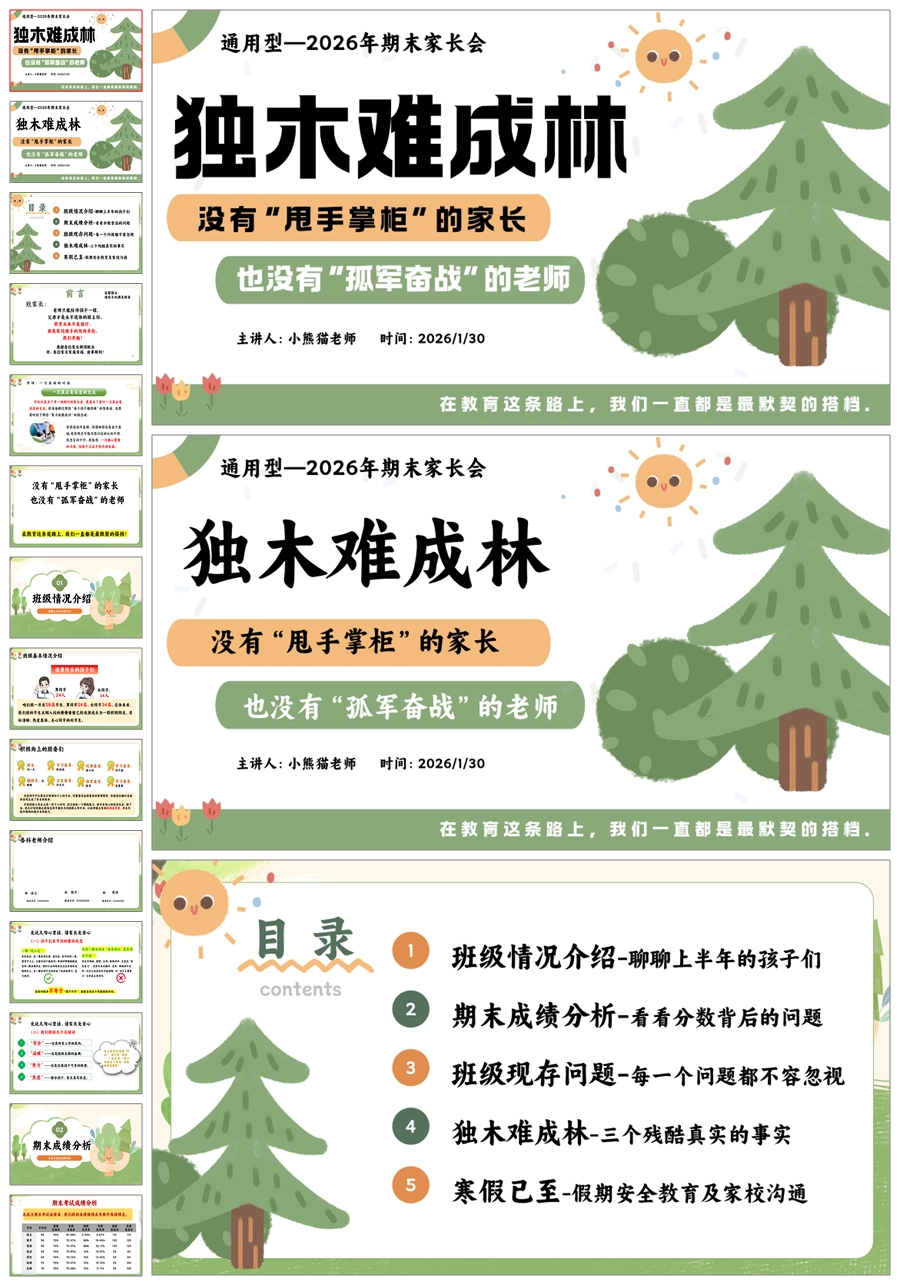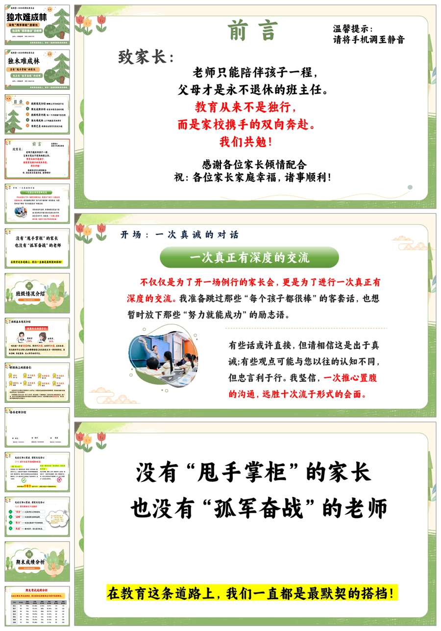 【5905】小学通用期末家长会《独木难成林没有甩手掌柜的家长》PPT课件+发言稿