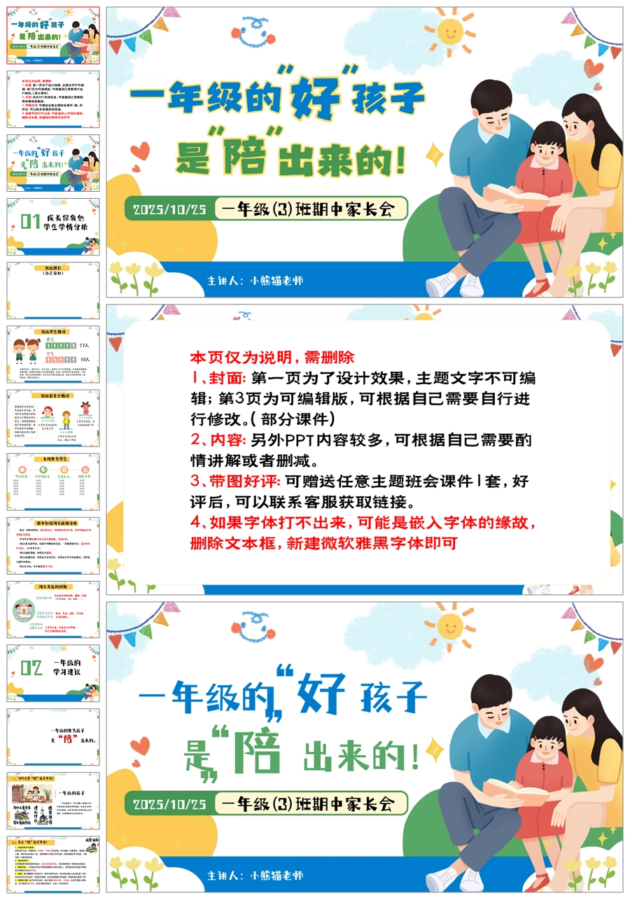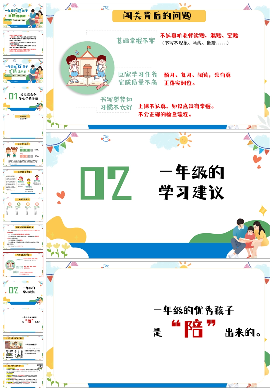 【5909】一上期中家长会《一年级的好孩子,是陪出来的》一年级上学期期中家长会PPT课件+发言稿