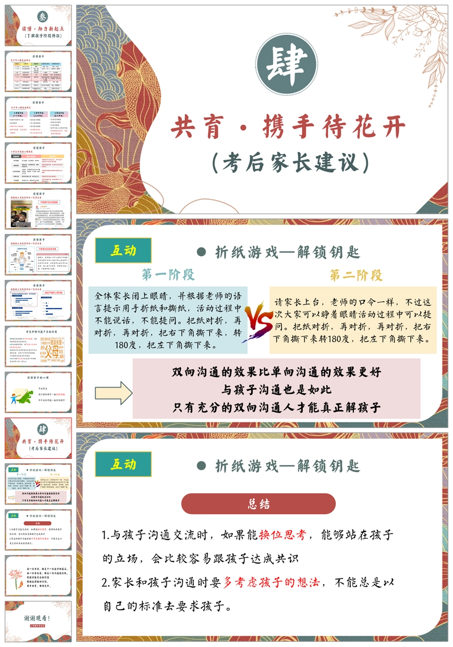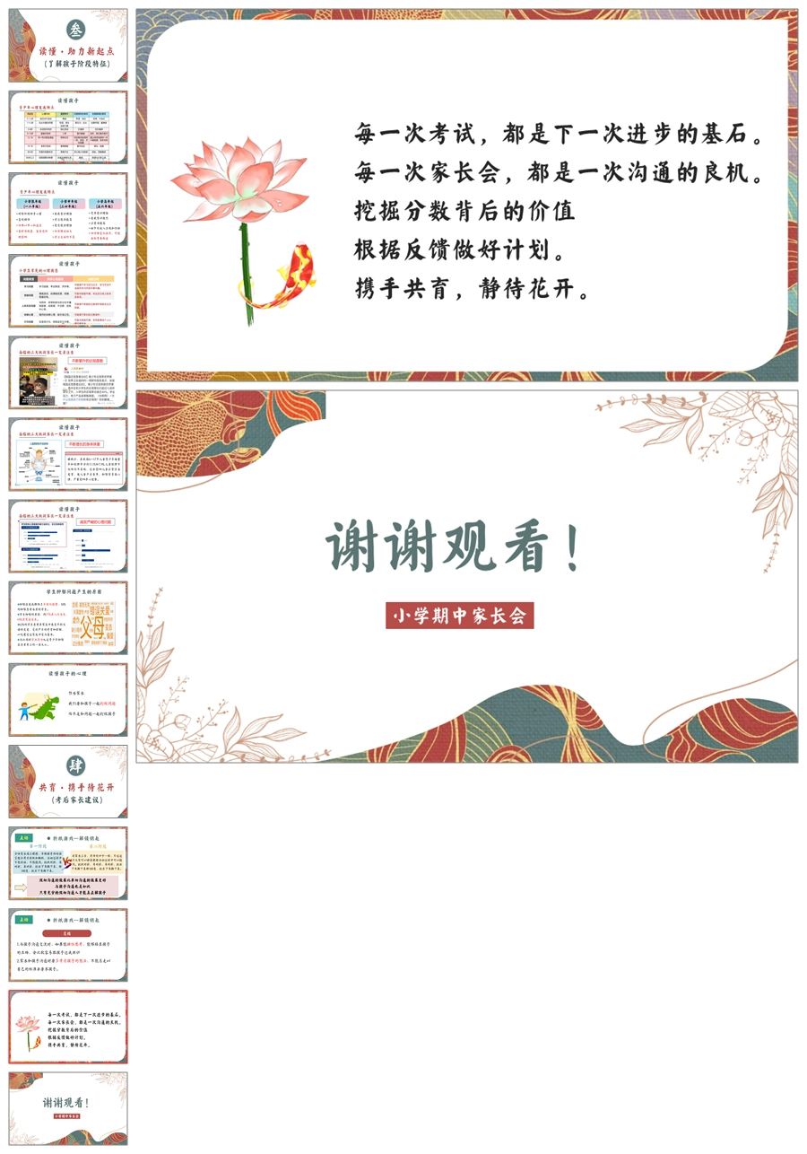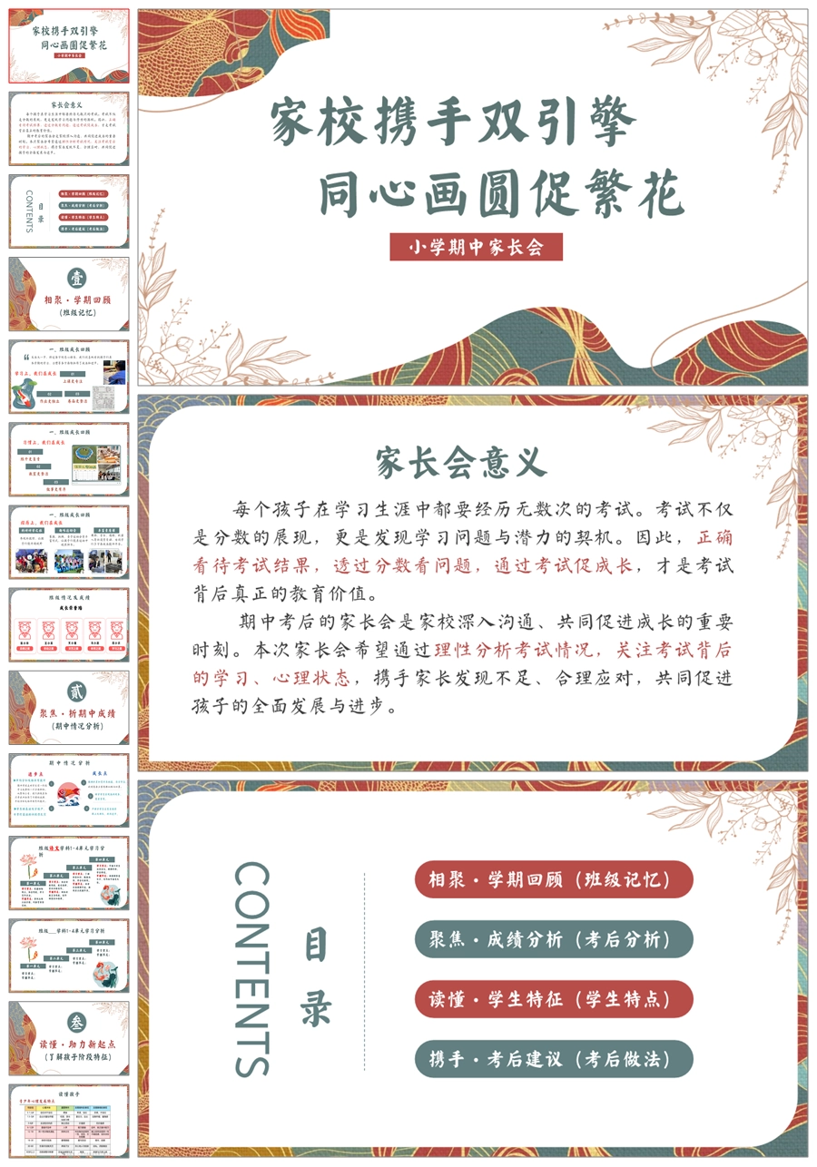 【5913】《家校携手双引擎》小学五年级期中家长会PPT课件+发言稿