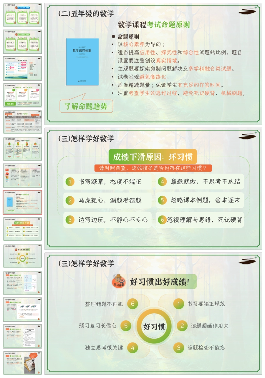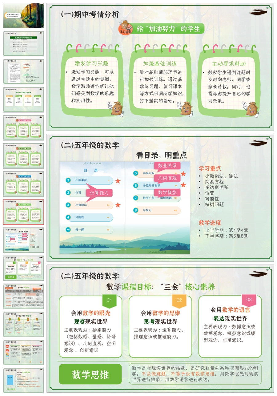 【5915】《心中有“数”,脚下有路》五年级上学期数学期中家长会PPT课件+发言稿