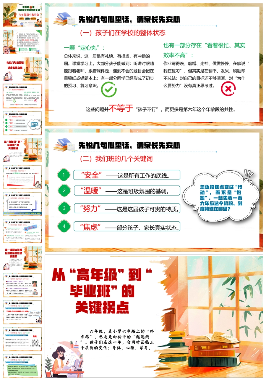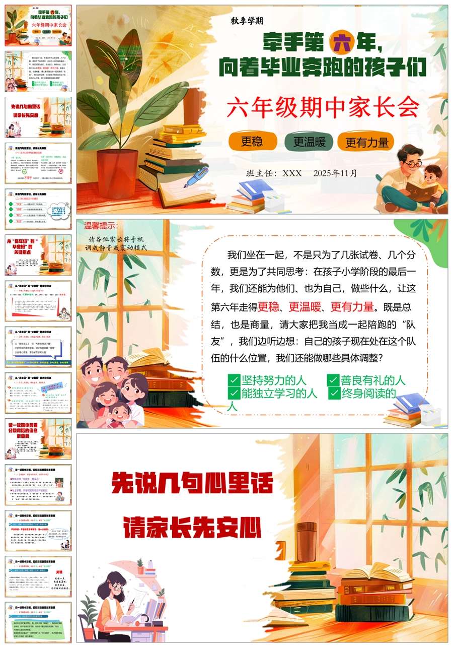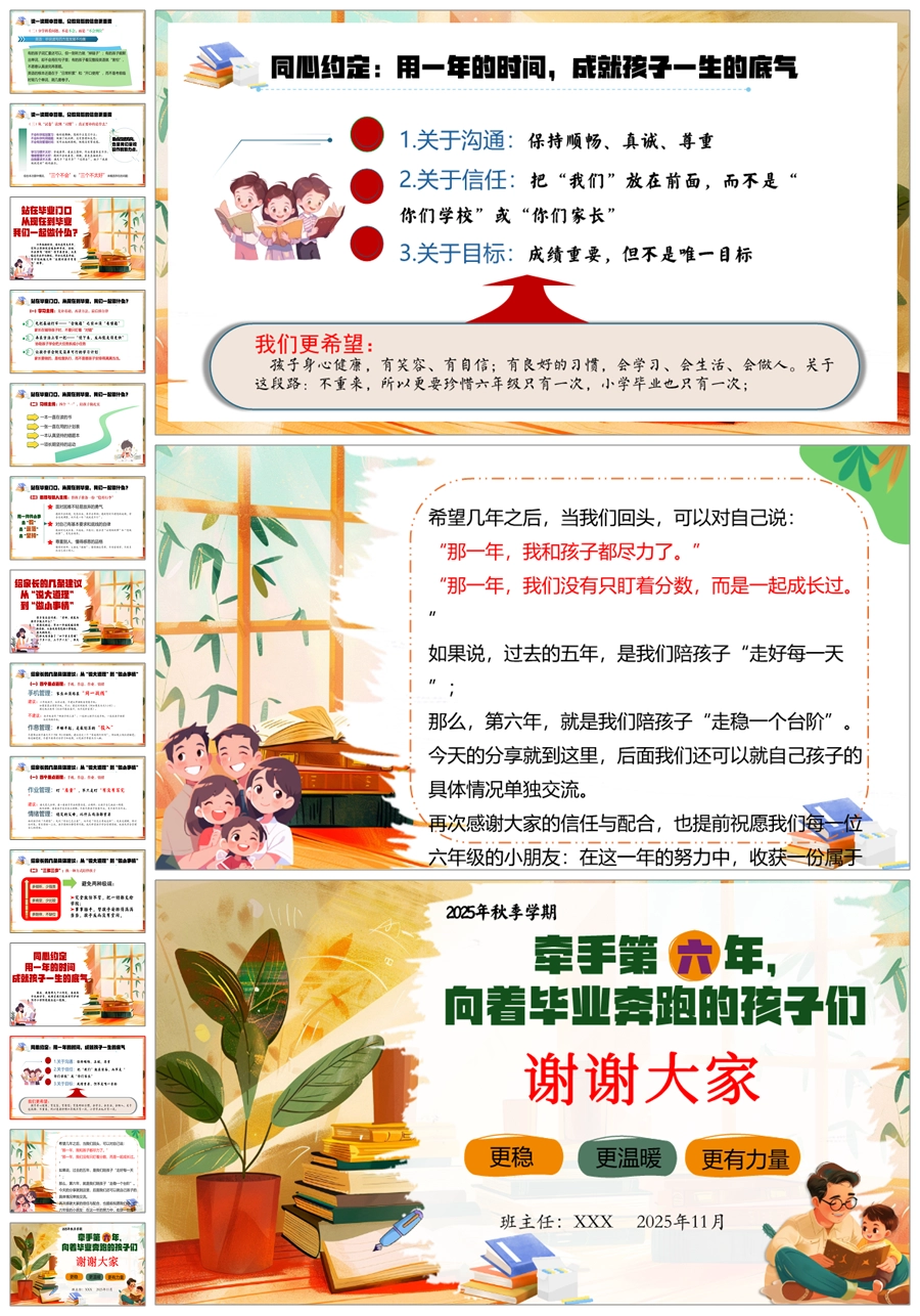 【5921】【六年级】【秋季上】【期中】家长会《牵手第六年,向着毕业奔跑的孩子们》PPT课件+发言稿