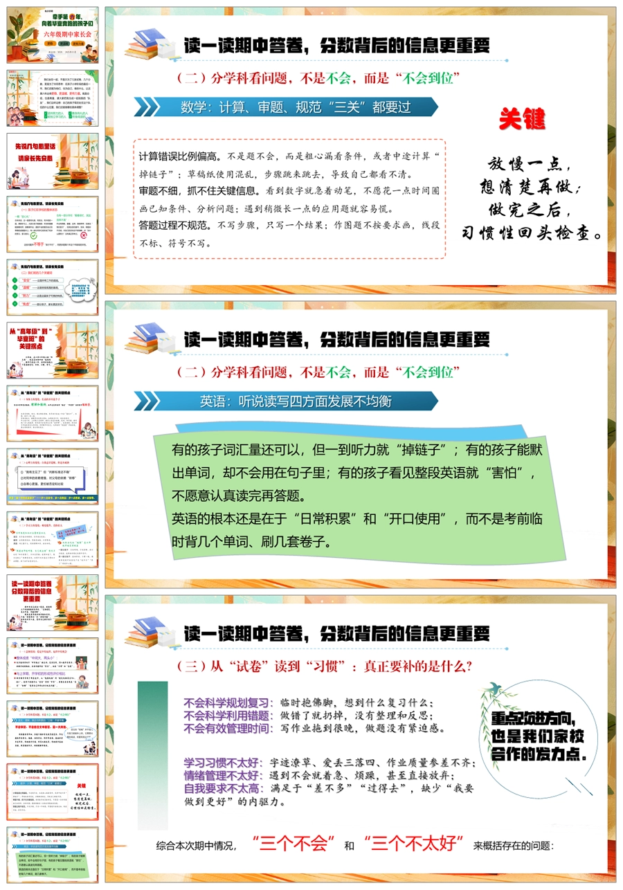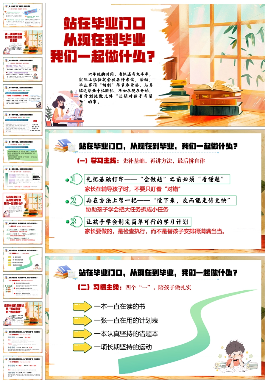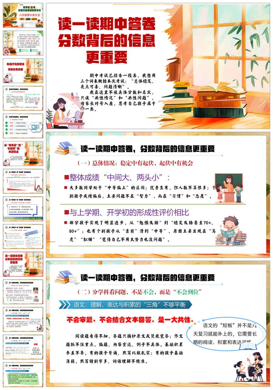 【5921】【六年级】【秋季上】【期中】家长会《牵手第六年,向着毕业奔跑的孩子们》PPT课件+发言稿