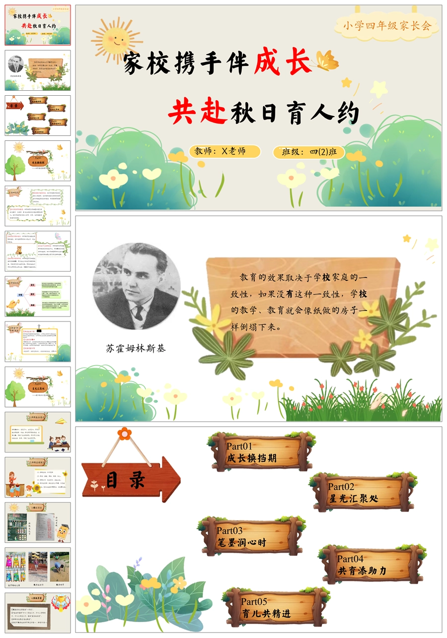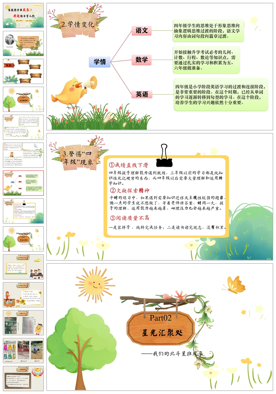 【5928】【四年级】【秋季上】【期中】家长会《家校携手伴成长,共赴秋日育人约》PPT课件+发言稿