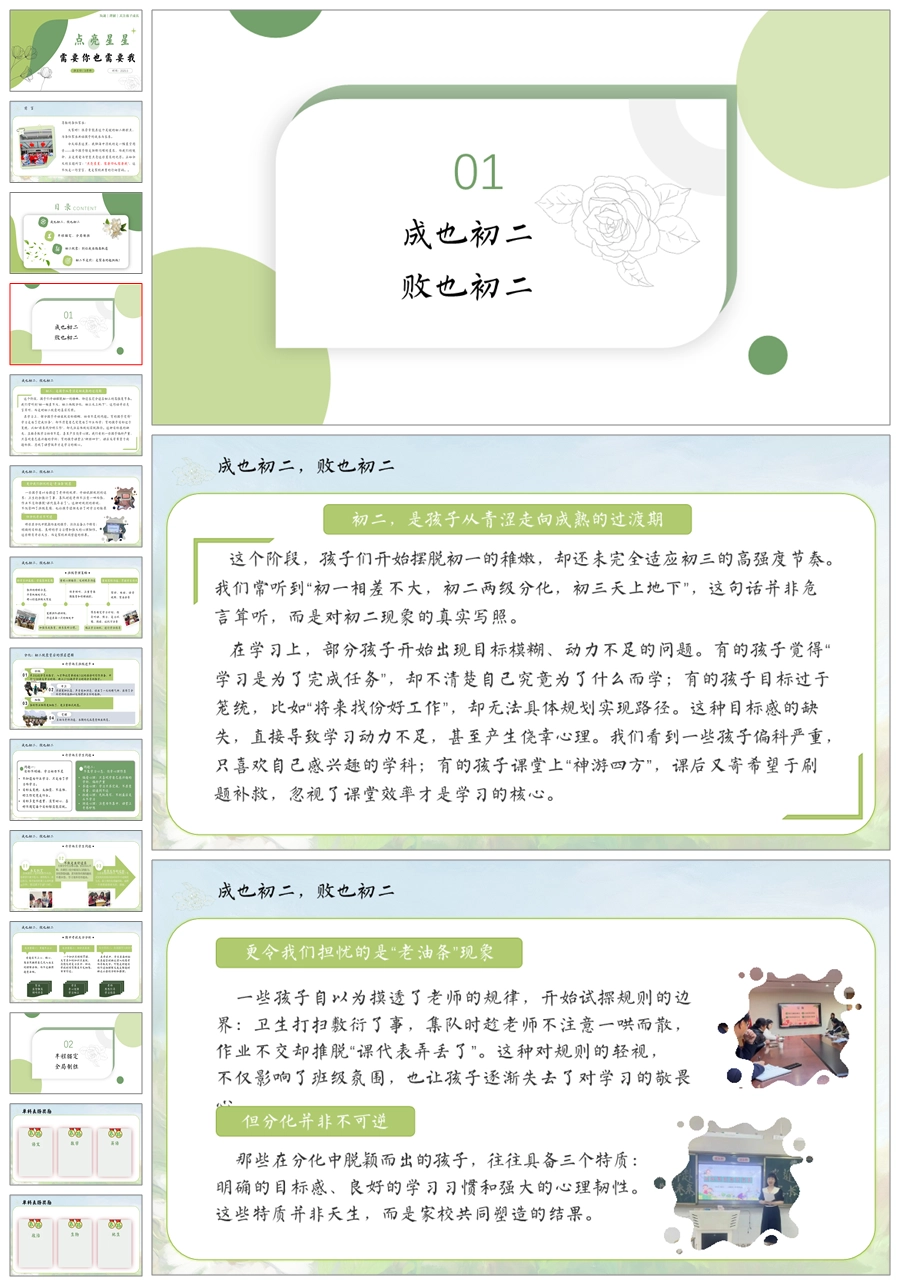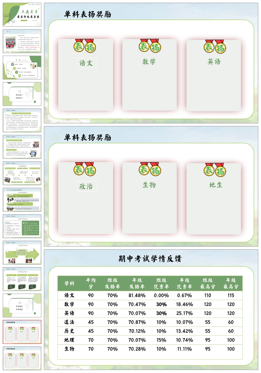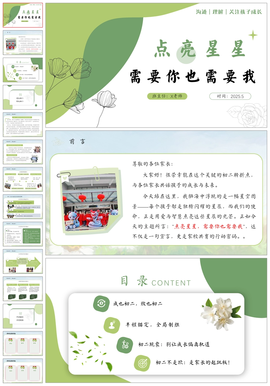 【5935】初二八年级期中家长会《点亮星星》PPT课件+发言稿