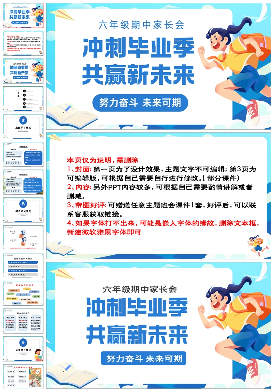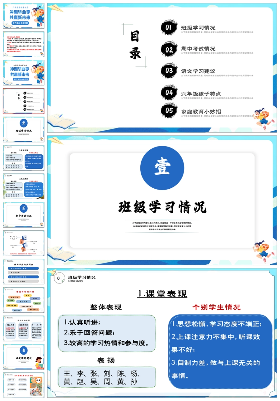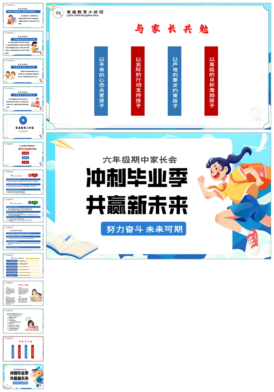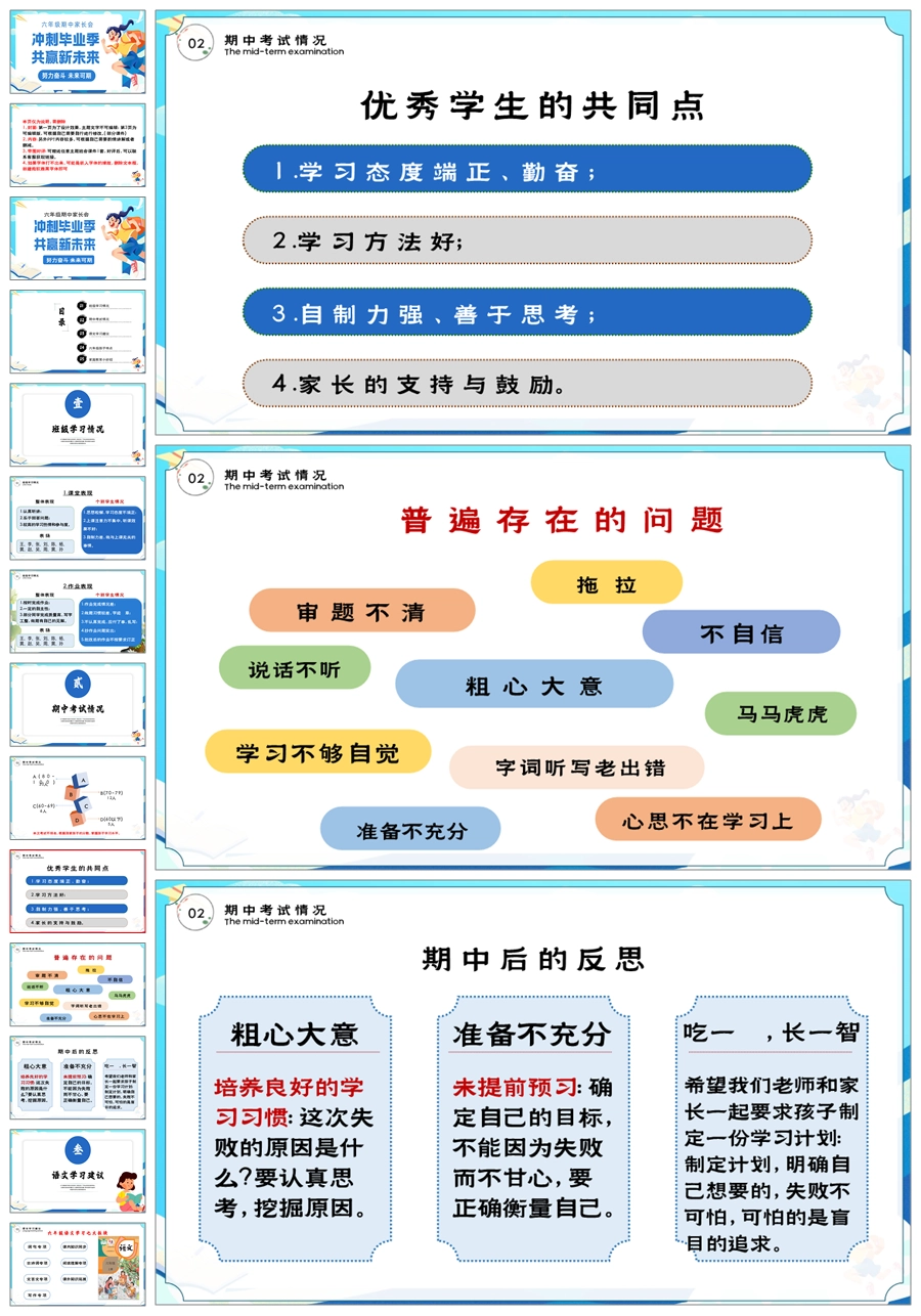 【5897】六上期中家长会《冲刺毕业季 共赢新未来》六年级上学期期中家长会PPT课件+发言稿