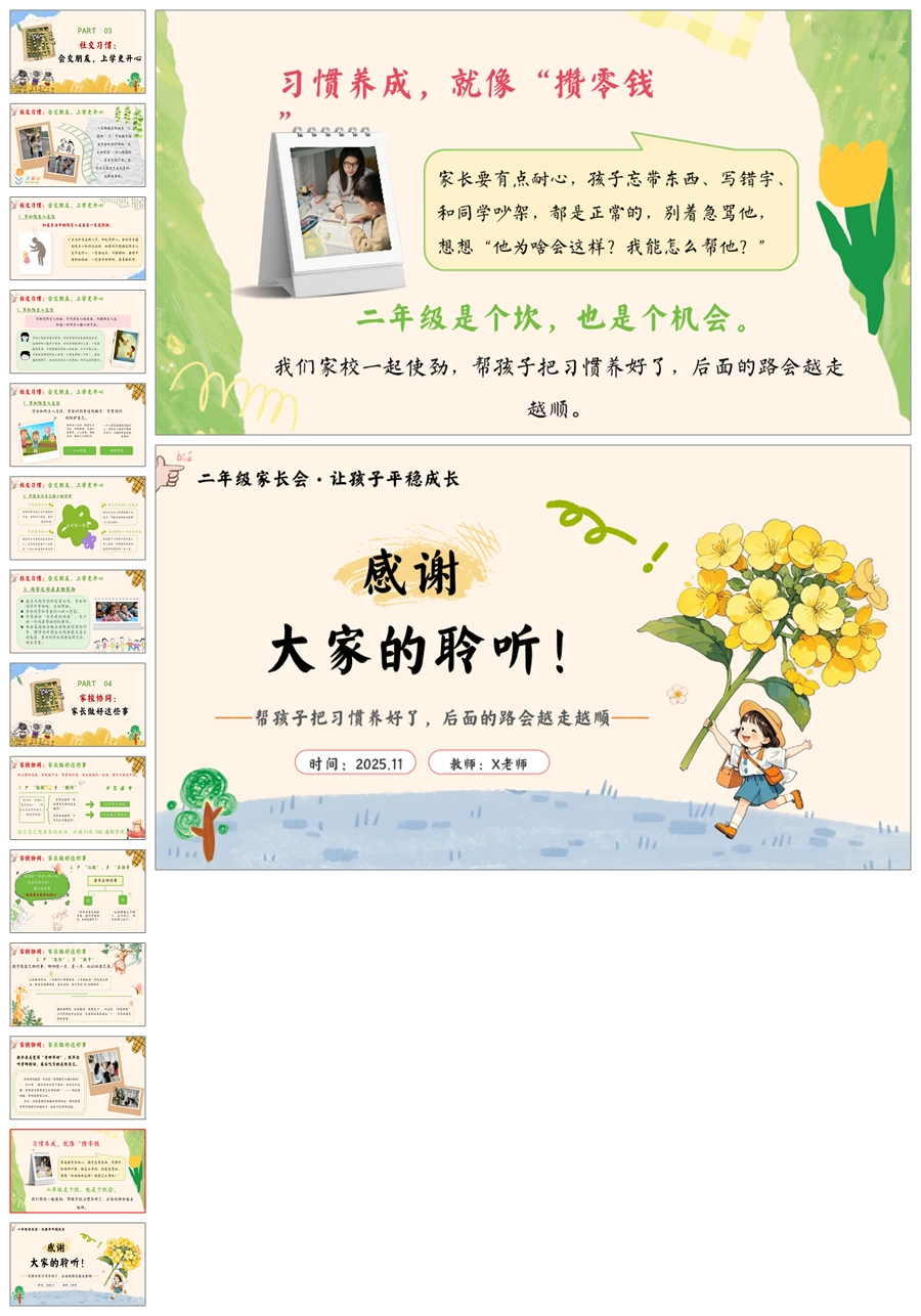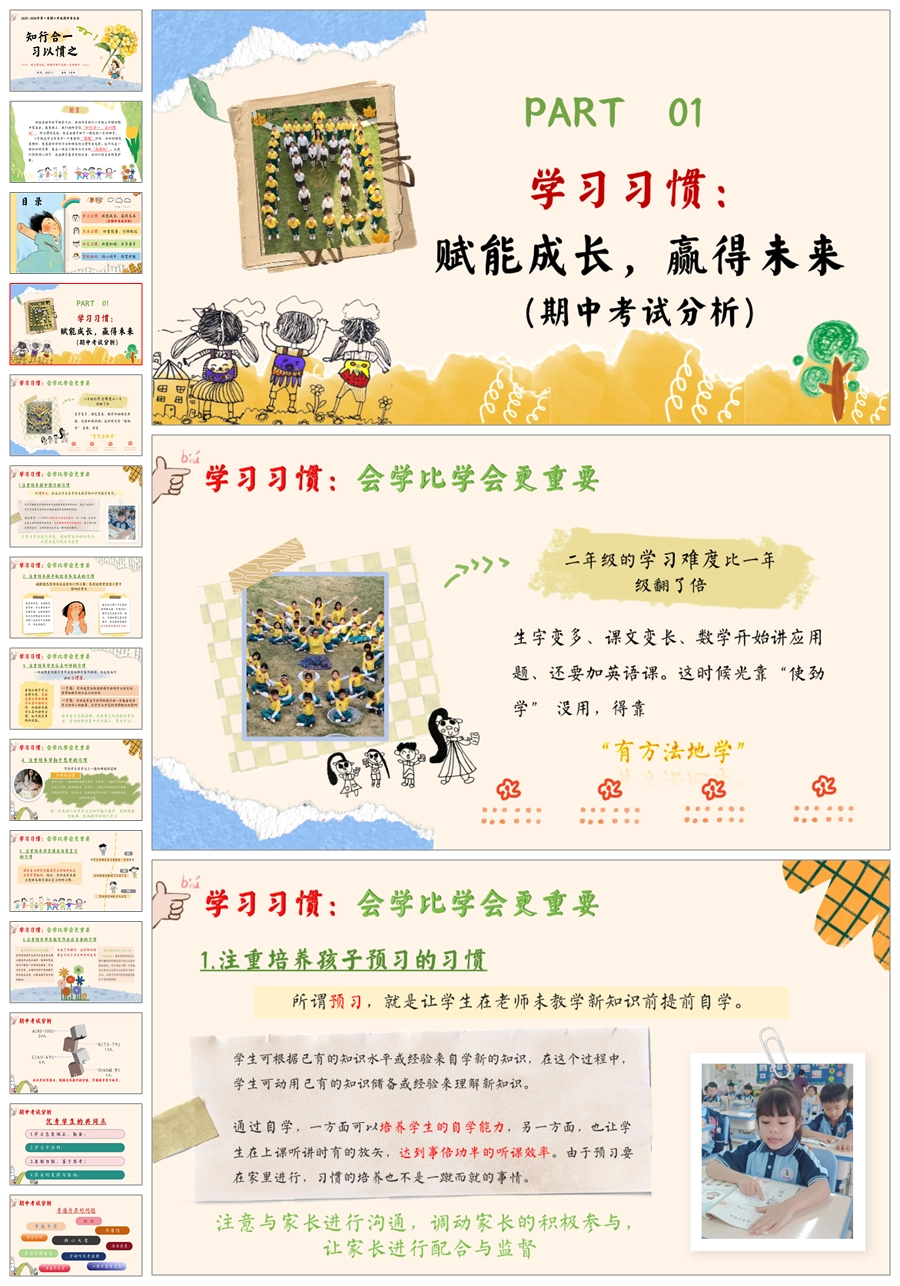 【5919】【二年级】【秋季上】【期中】家长会《知行合一,习以惯之》PPT课件+发言稿