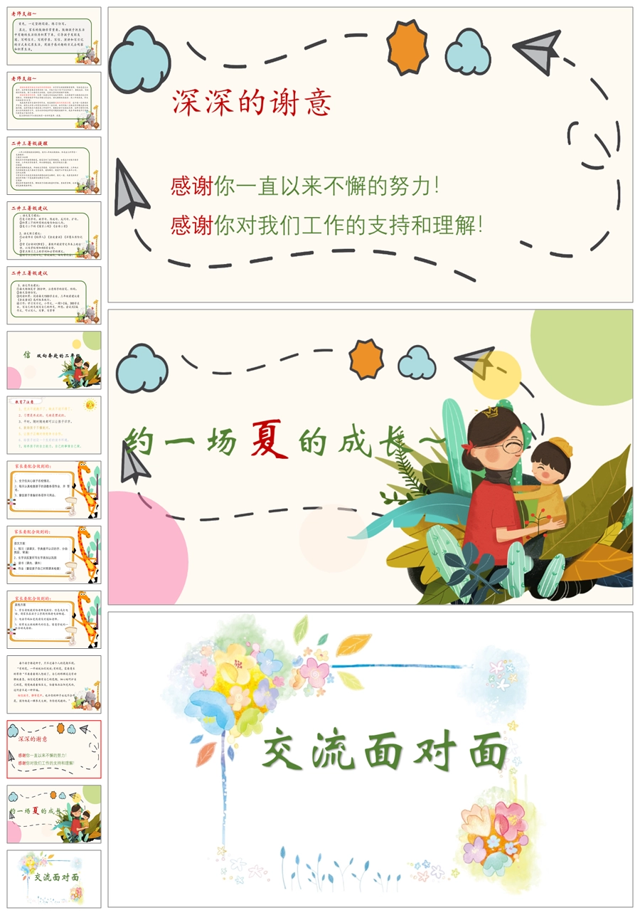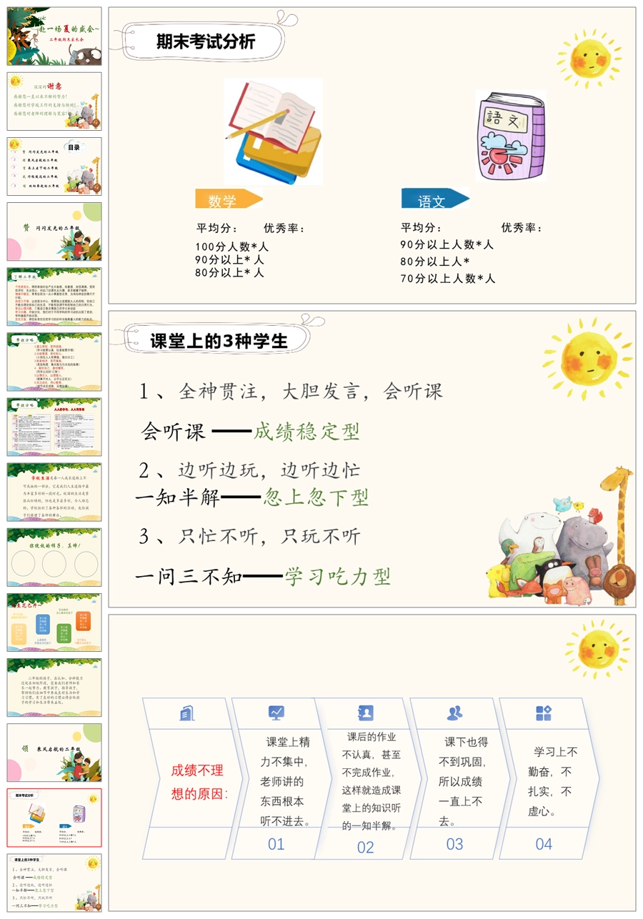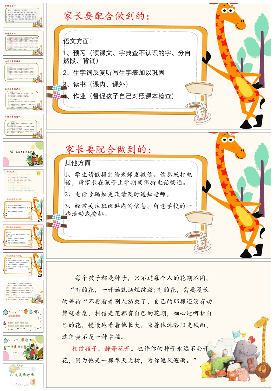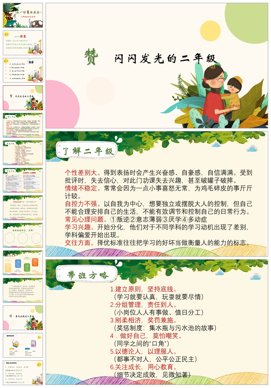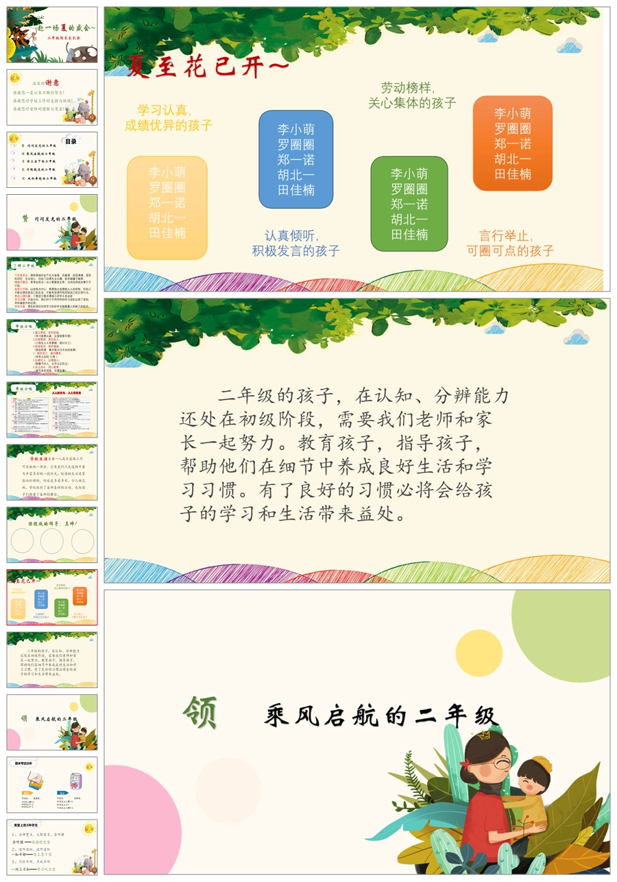 【5938】二年级下学期《赴一场夏的成长》期末家长会PPT课件+发言稿