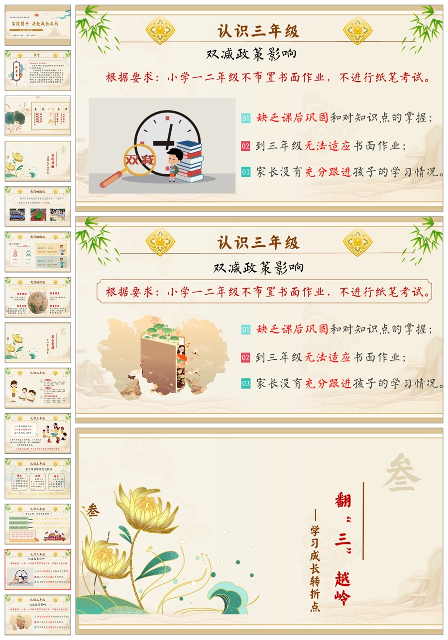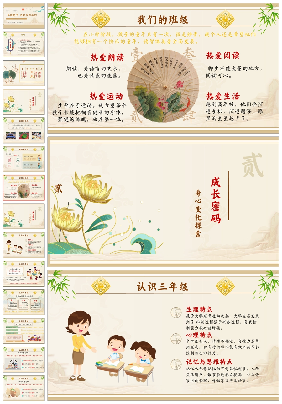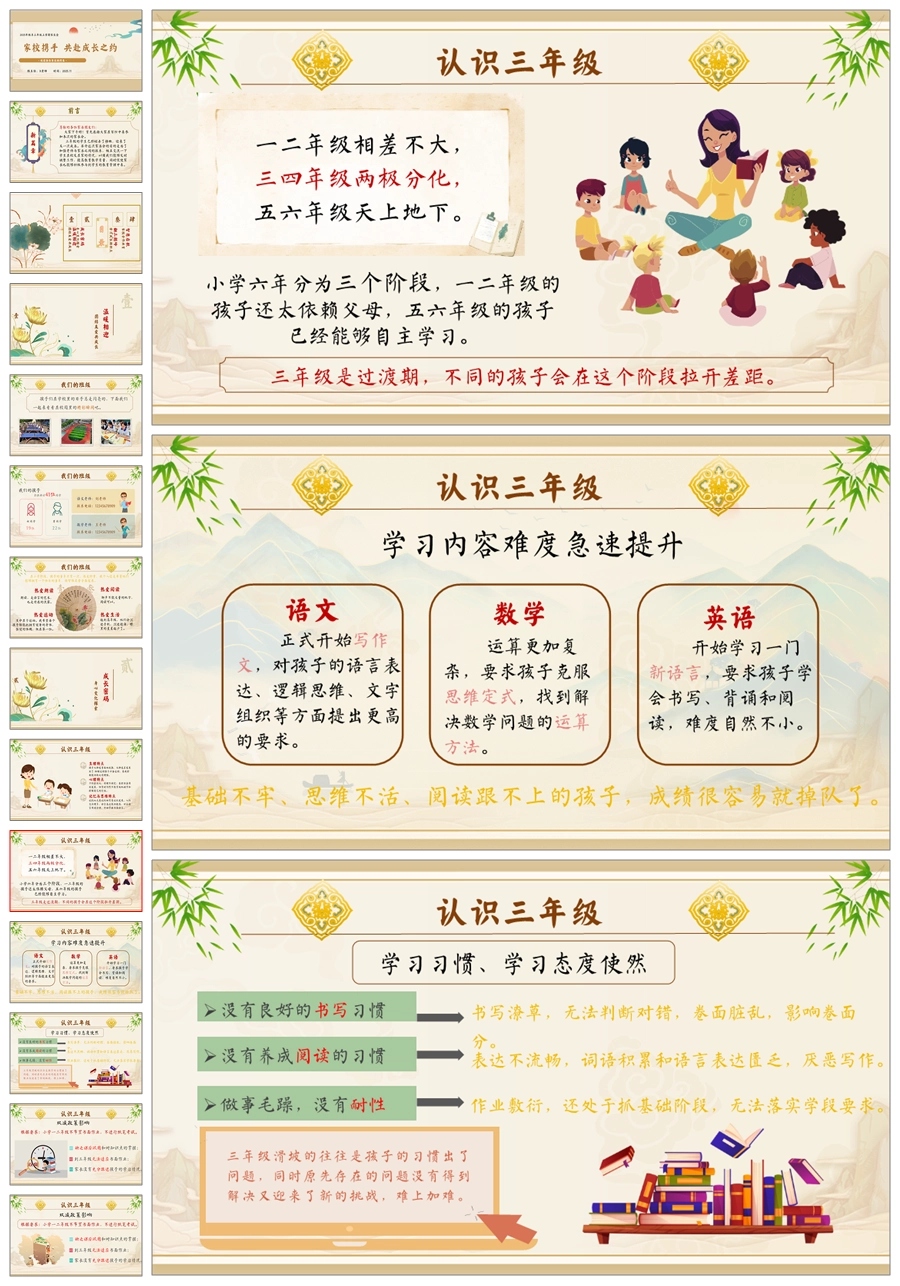 【5943】三年级上学期家长会《共赴成长之约》三上期中家长会PPT课件+发言稿