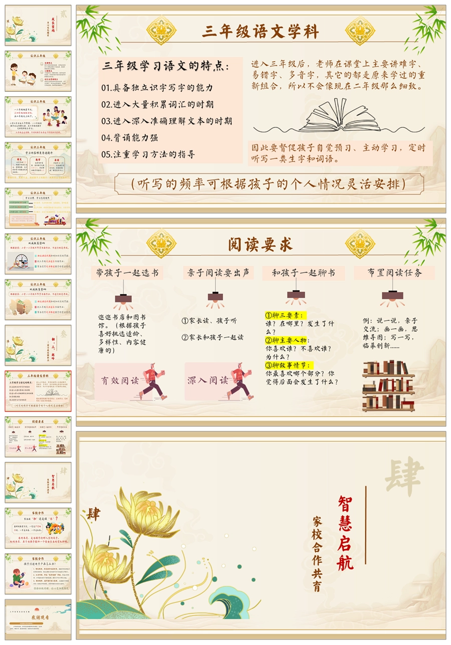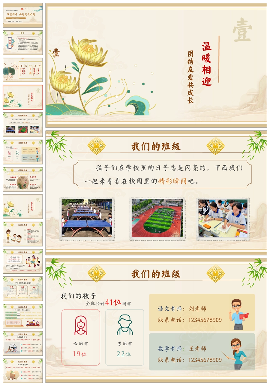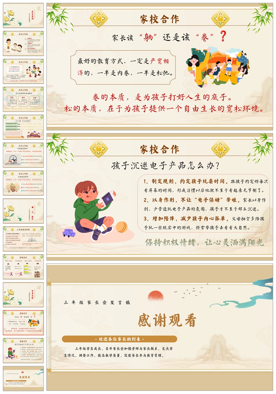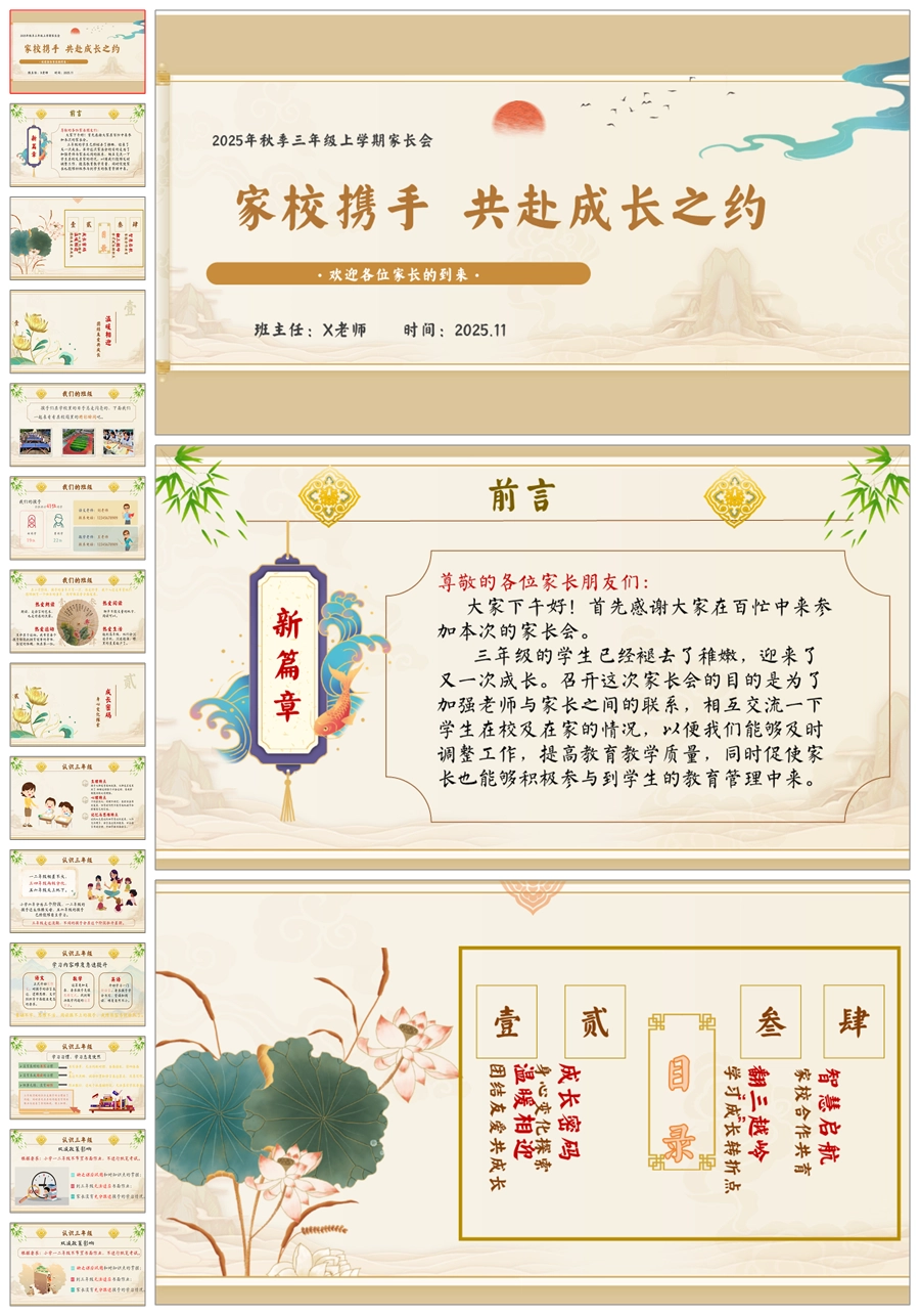 【5943】三年级上学期家长会《共赴成长之约》三上期中家长会PPT课件+发言稿