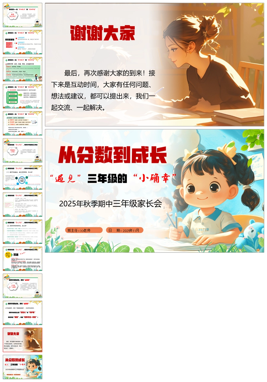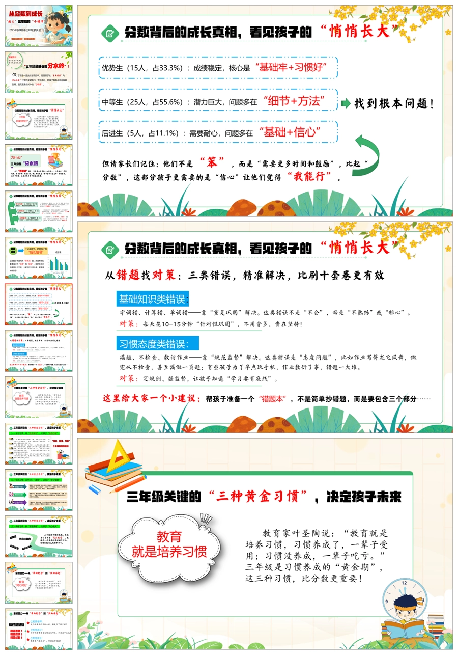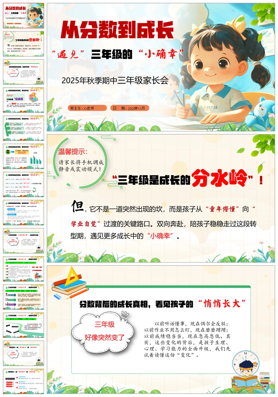 【5924】【三年级】【秋季上】【期中】家长会《从分数到成长,“遇见”三年级的“小确幸”》PPT课件+发言稿