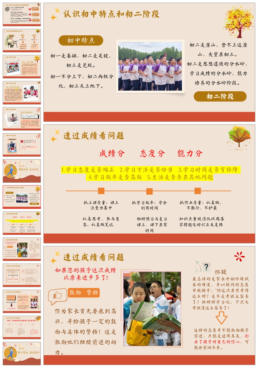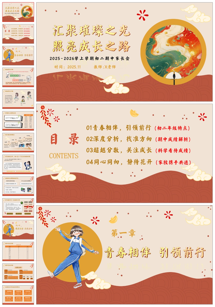 【5917】【初二】【秋季上】【期中】家长会《汇聚璀璨之光,照亮成长之路》PPT课件+发言稿