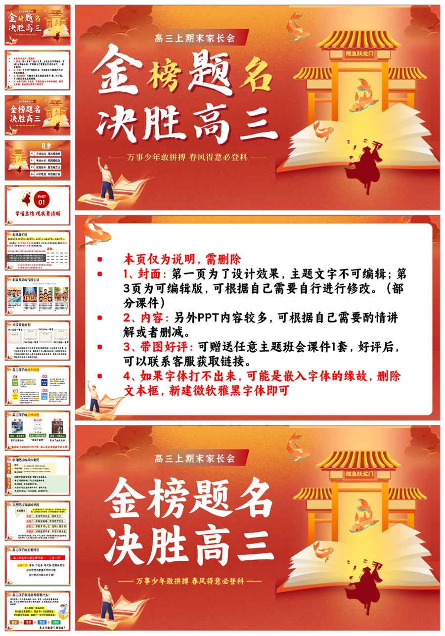 【5943】【高三上期末家长会】《金榜题名 决胜高三》PPT课件+发言稿