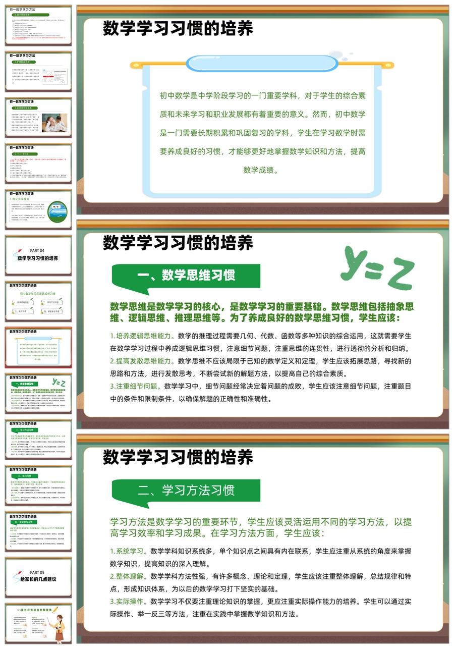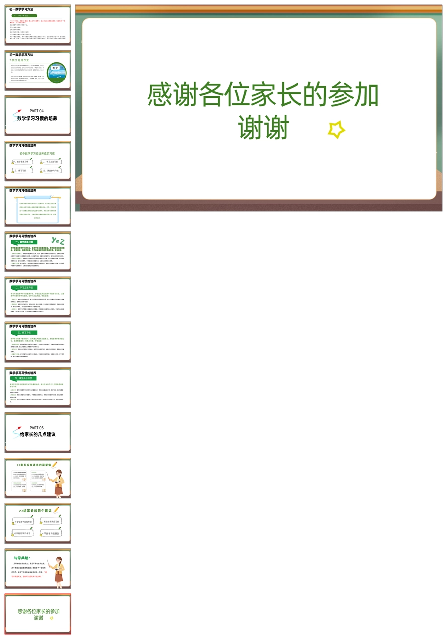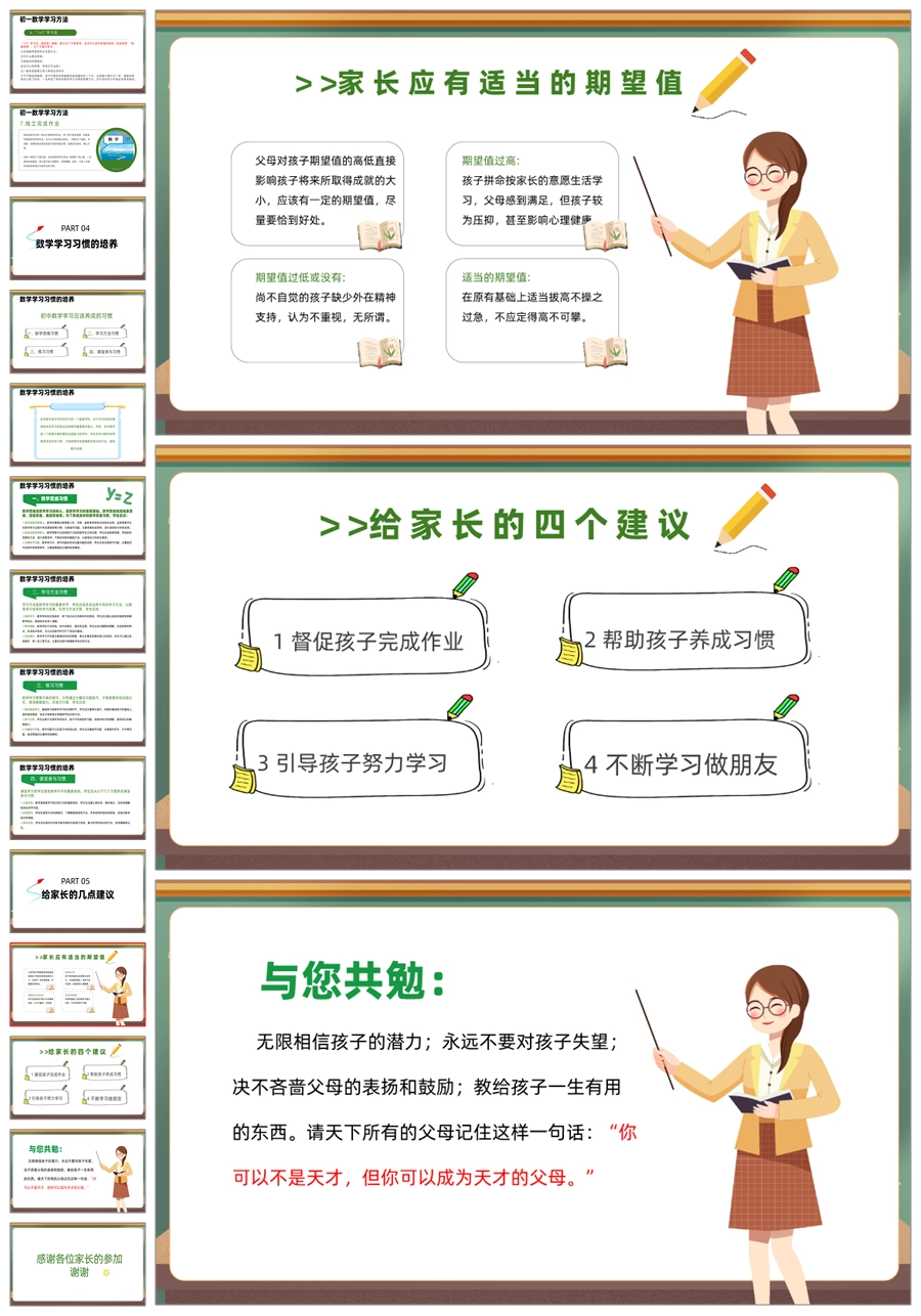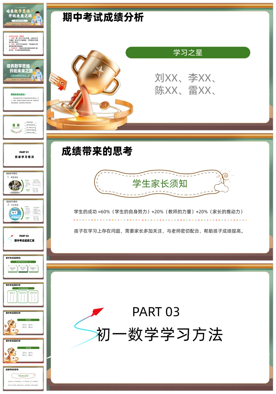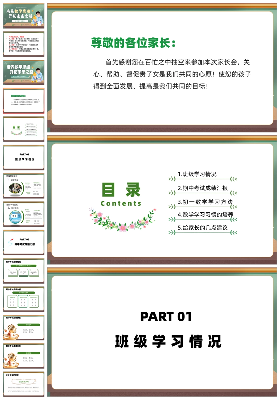 【5943】初二七年级数学期中家长会《培养数学思维,开拓未来之路》PPT课件+发言稿
