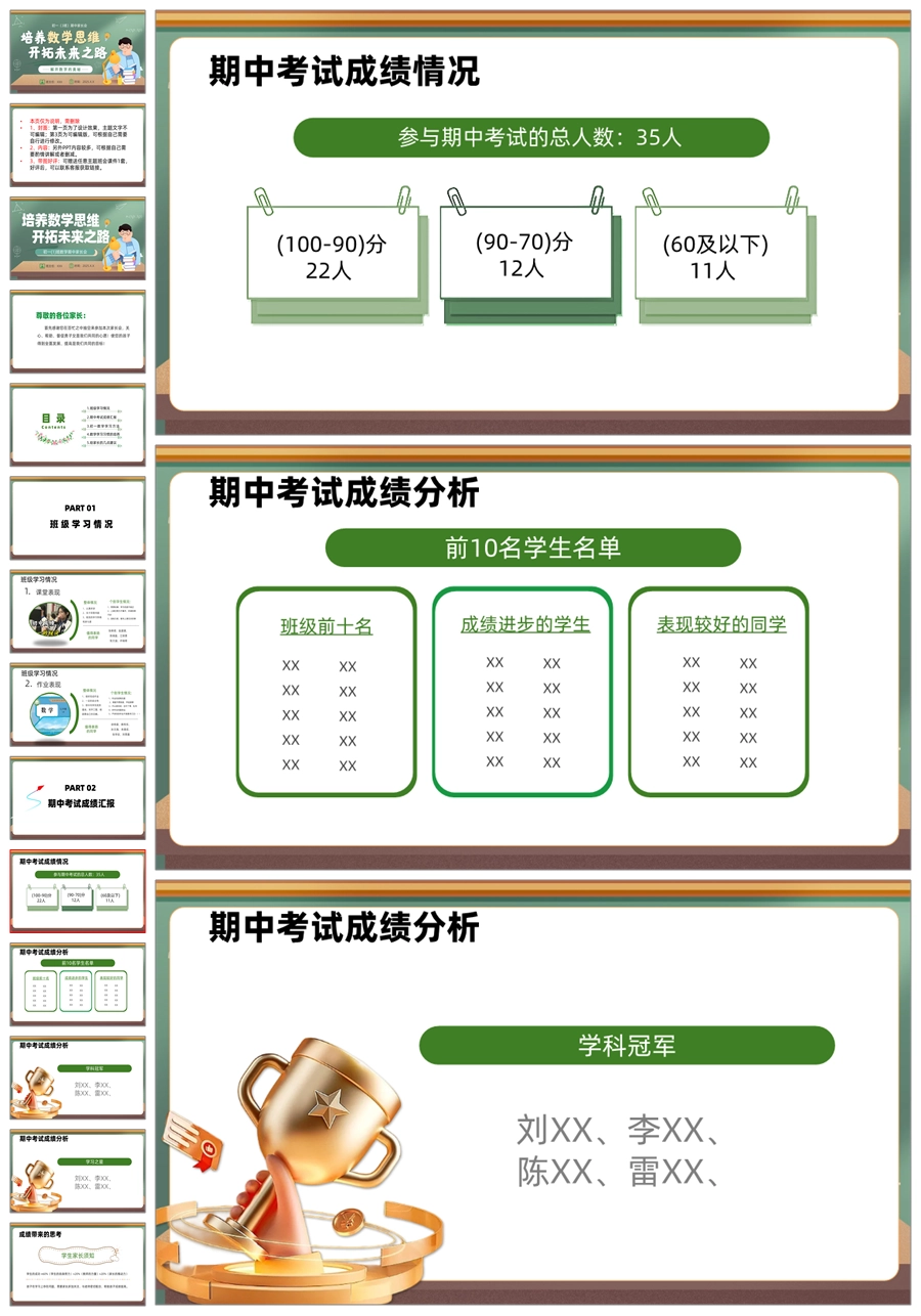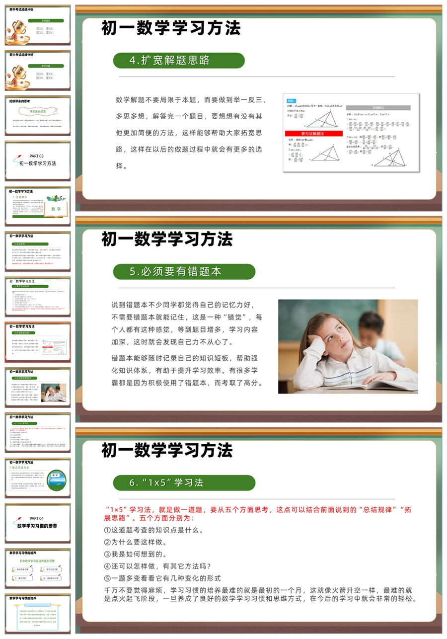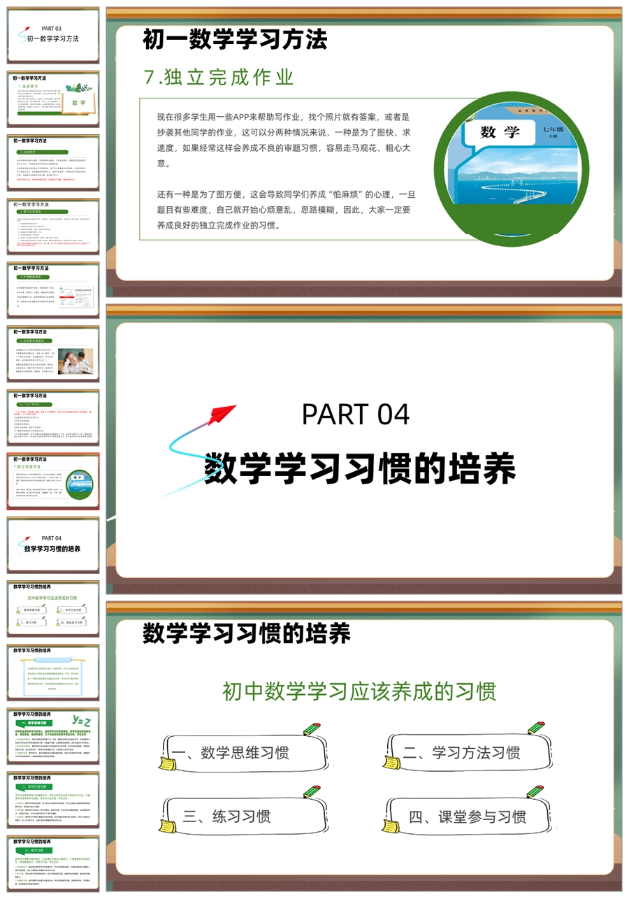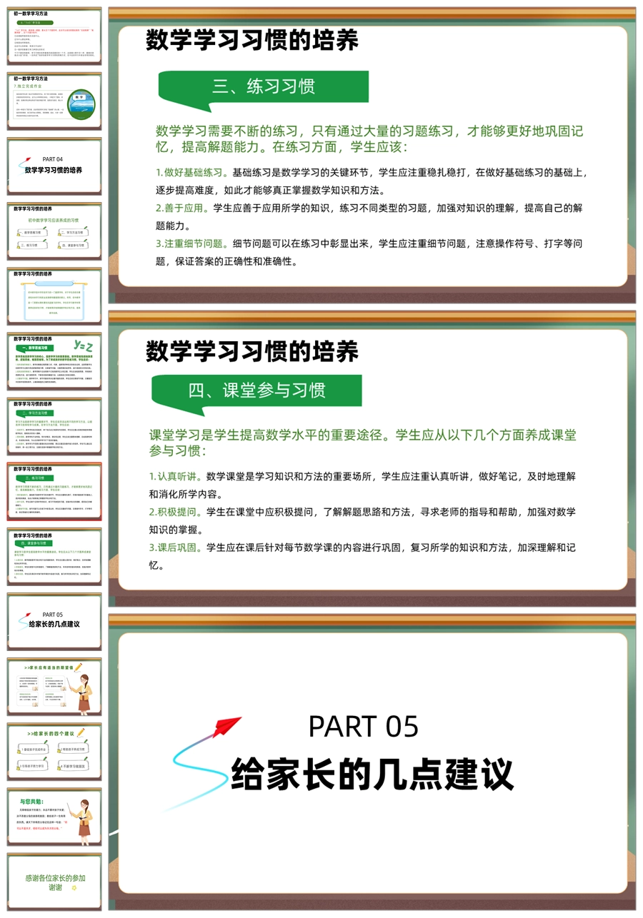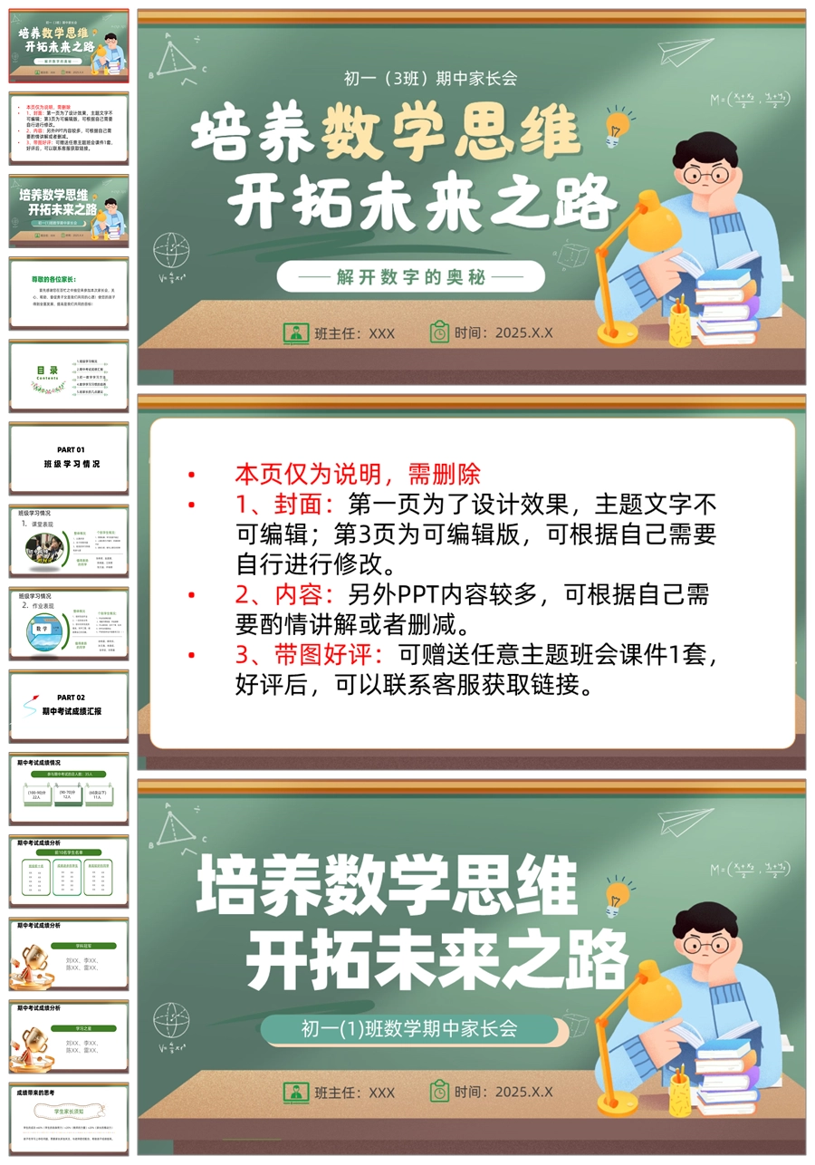 【5943】初二七年级数学期中家长会《培养数学思维,开拓未来之路》PPT课件+发言稿
