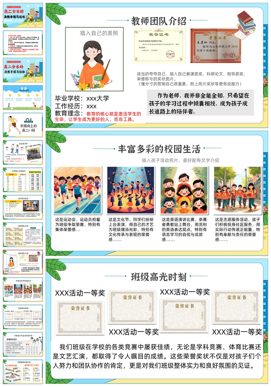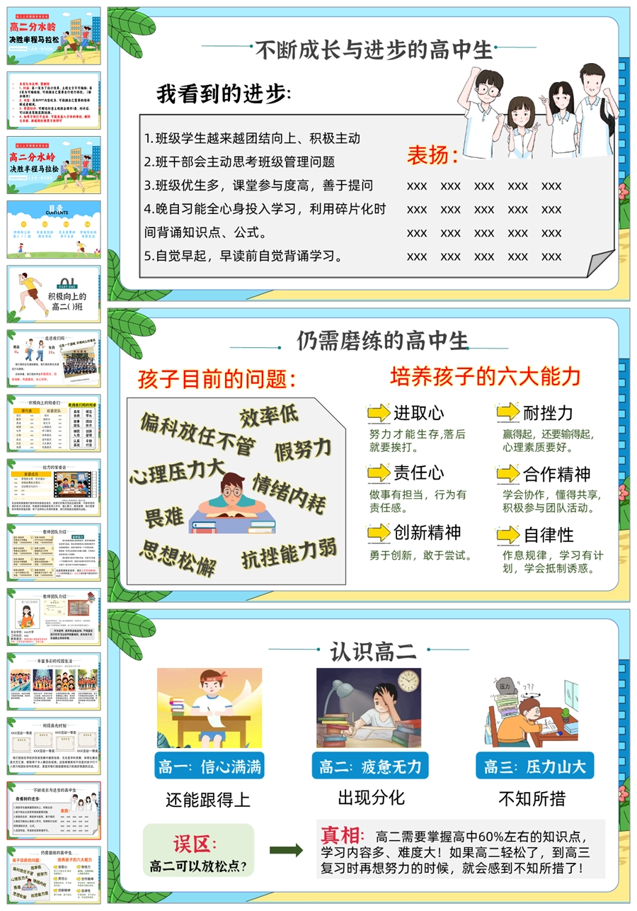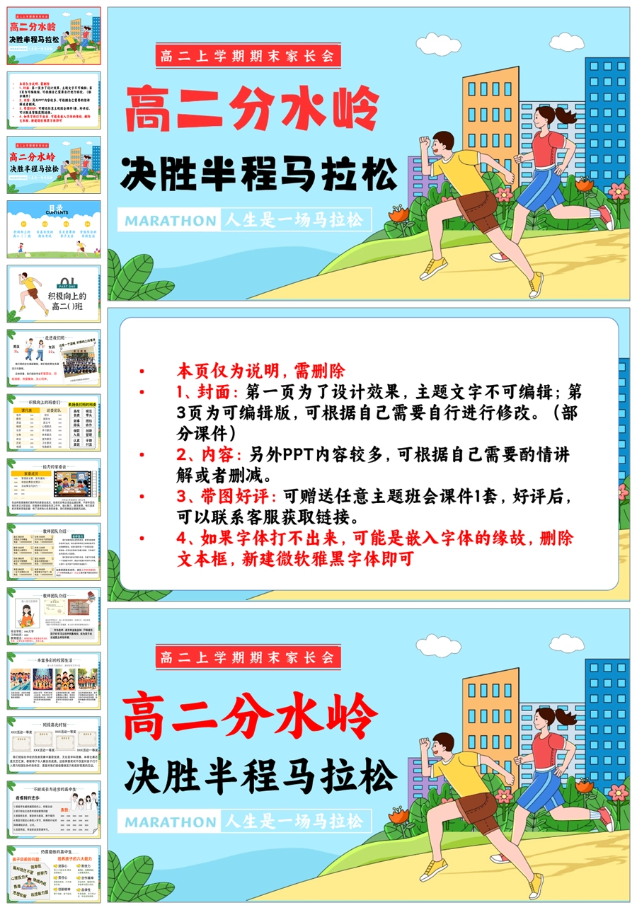 【5945】【高二上期中家长会】《高二分水岭 决胜半程马拉松》PPT课件+发言稿
