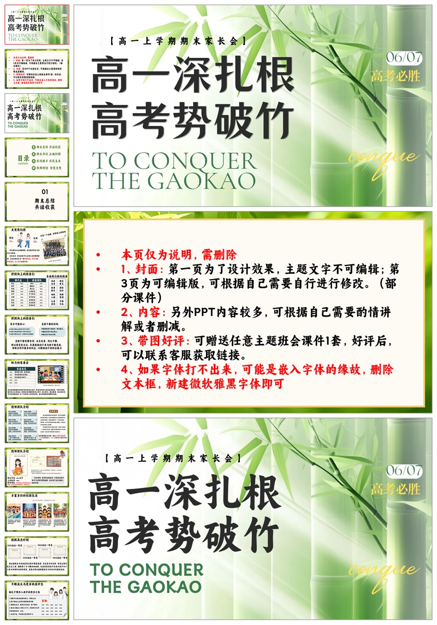 【5947】【高一上期末家长会】《高一深扎根 高考势破竹》PPT课件+发言稿