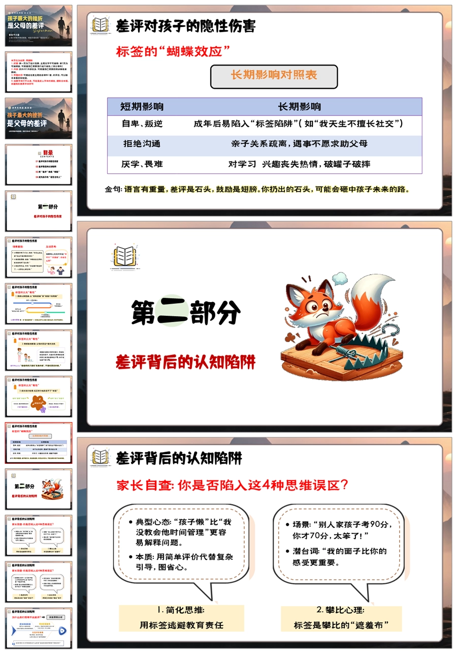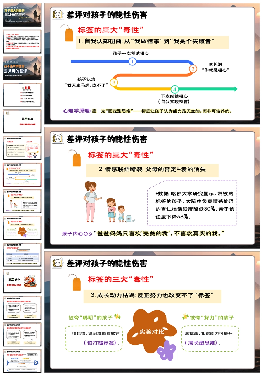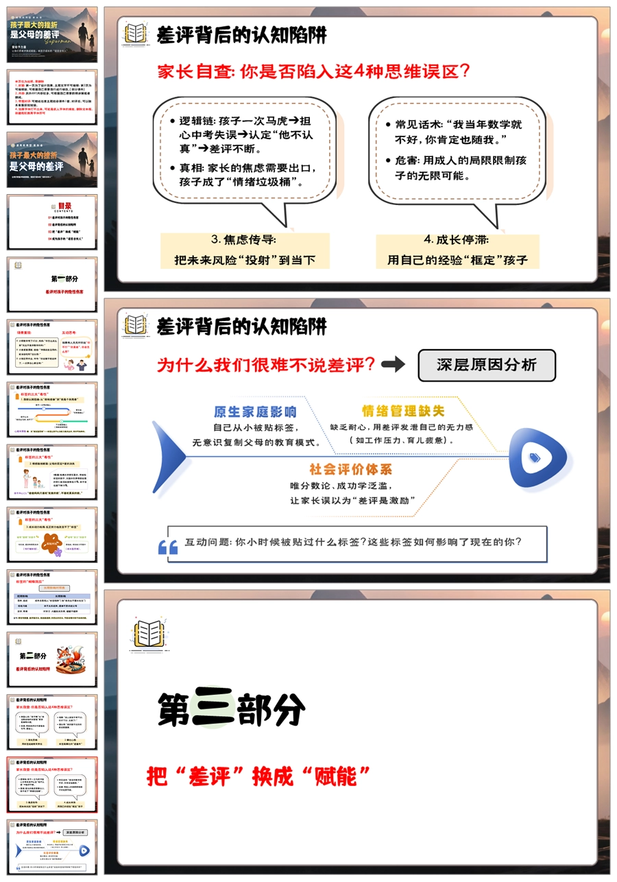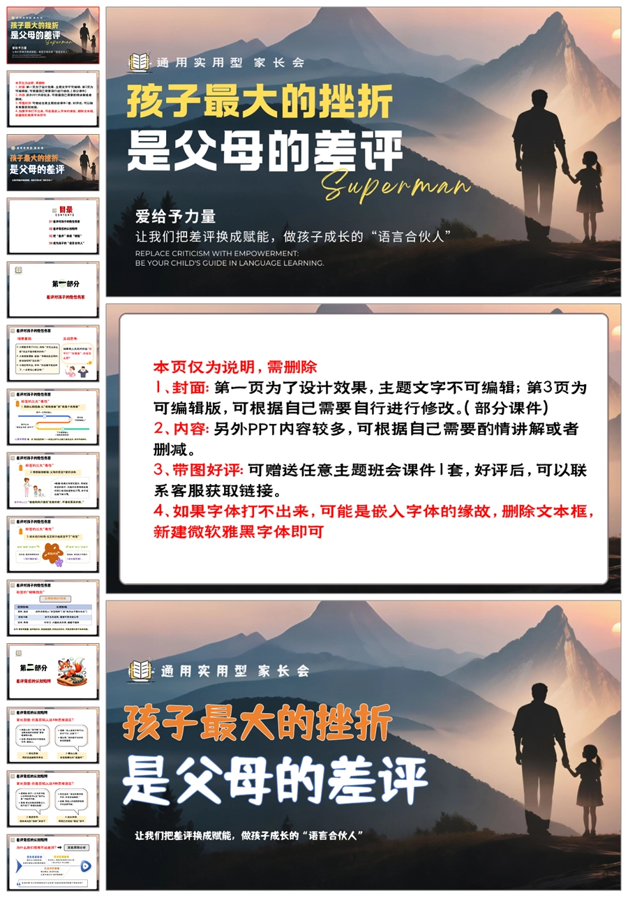 【5947】中学通用家长会期中家长会《孩子最大的挫折,是父母的差评》PPT课件+发言稿