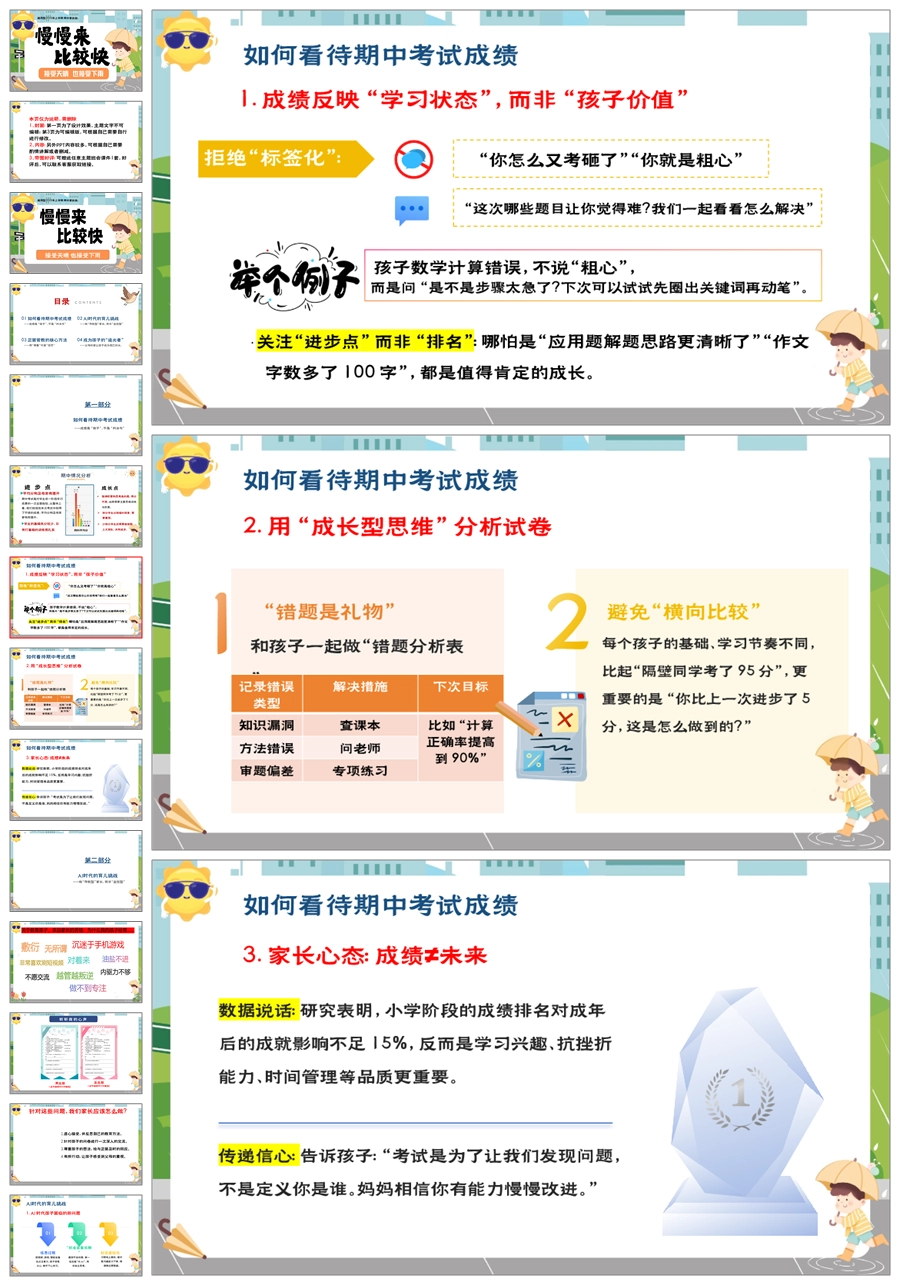 【5948】中学通用家长会期中家长会《慢慢来比较快》PPT课件+发言稿
