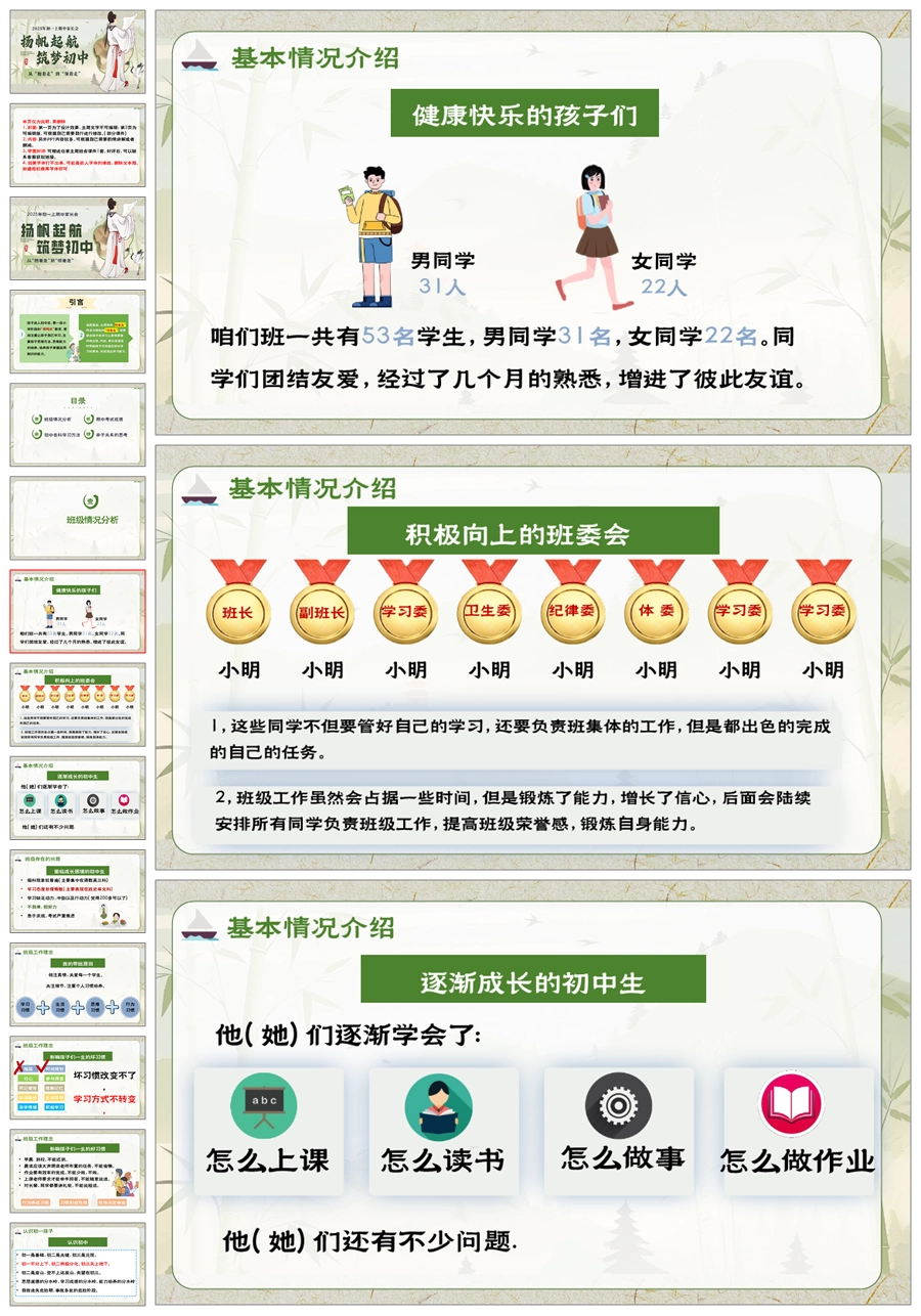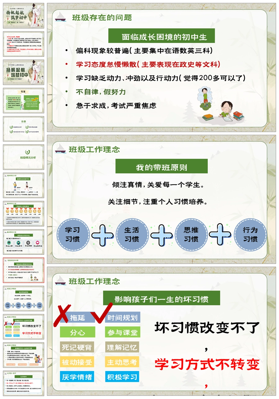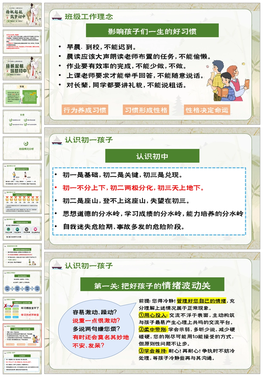 【5948】初一七年级上期中家长会《扬帆起航,筑梦初中》PPT课件+发言稿