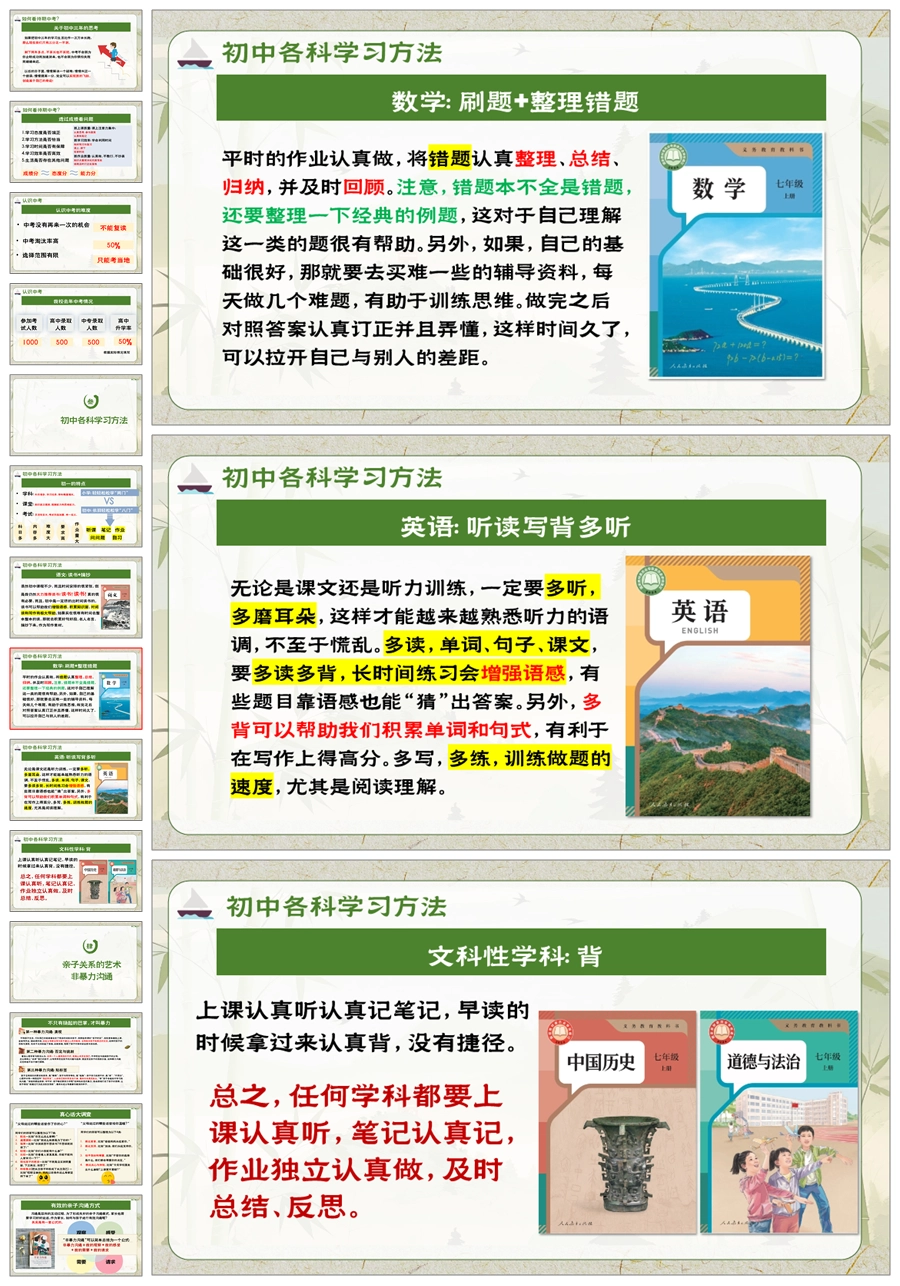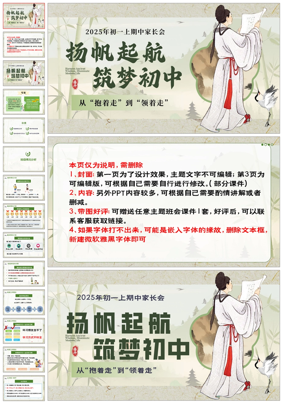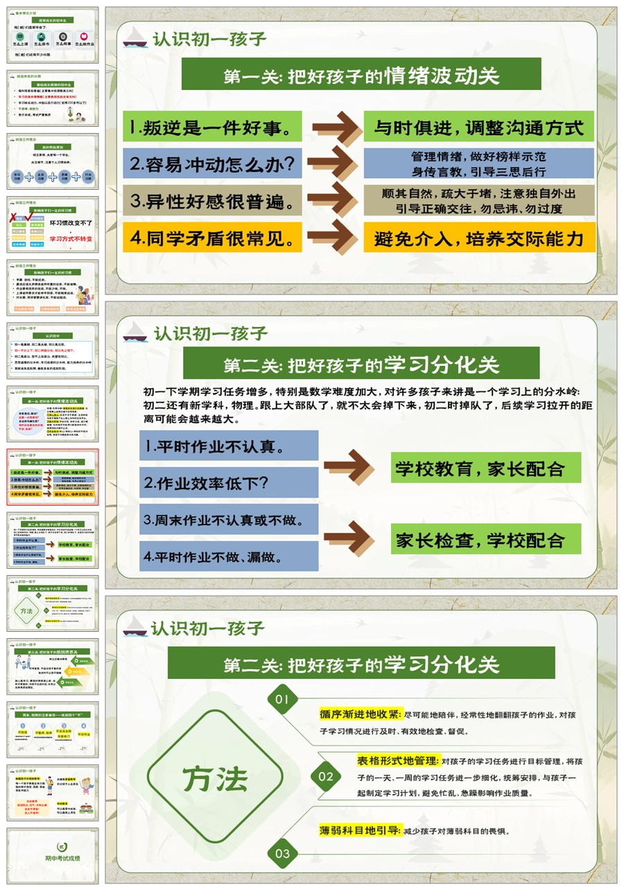 【5948】初一七年级上期中家长会《扬帆起航,筑梦初中》PPT课件+发言稿