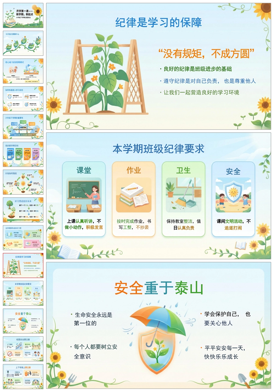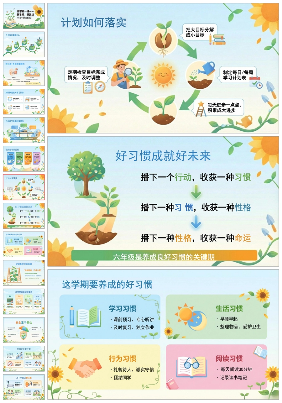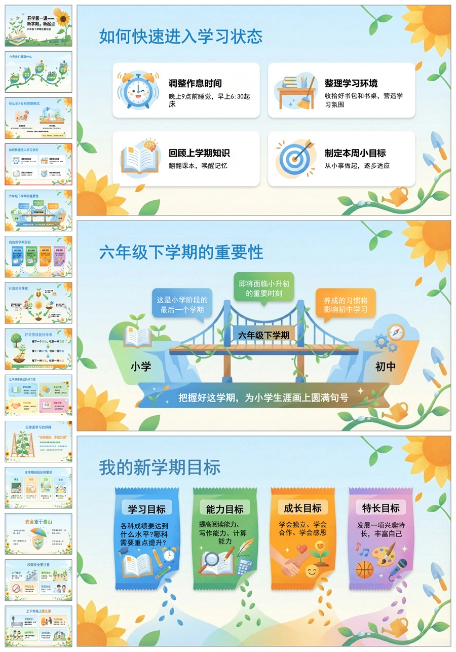 【5901】六年级下开学第一课《新学期新起点》ppt课件+发言稿