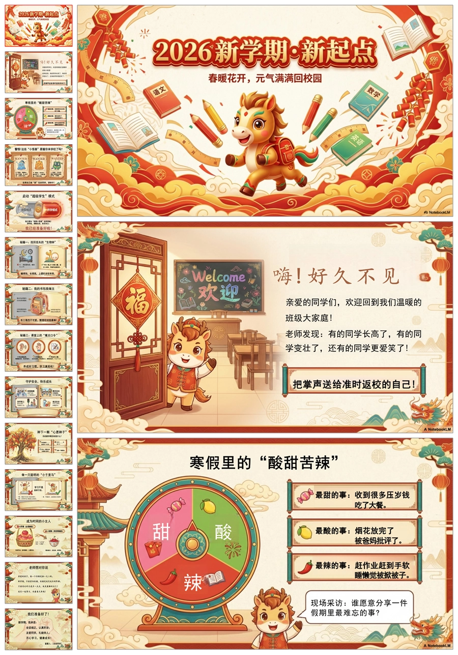 【5915】《2026春暖花开,快乐归来》开学第一课小学开学第一课PPT+教案