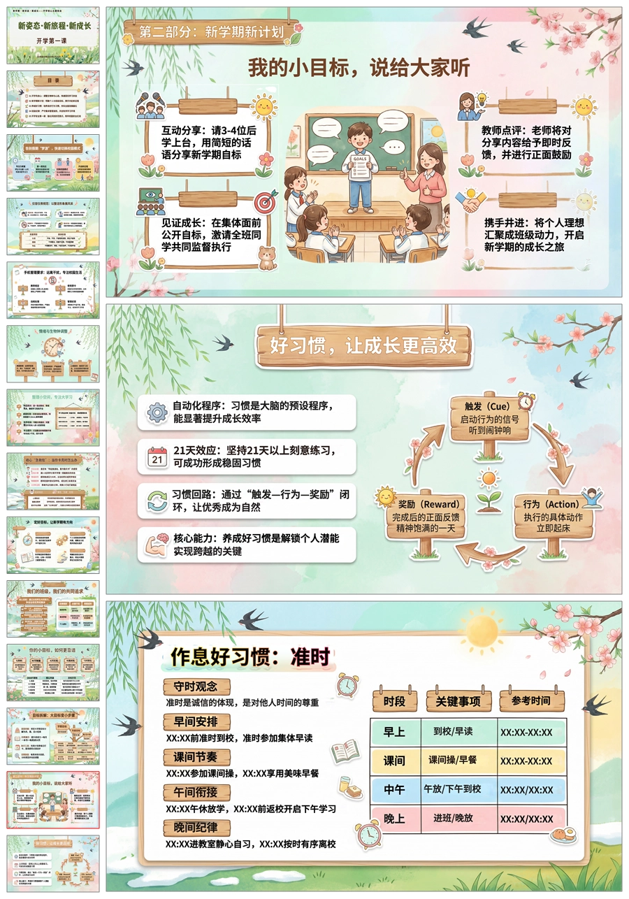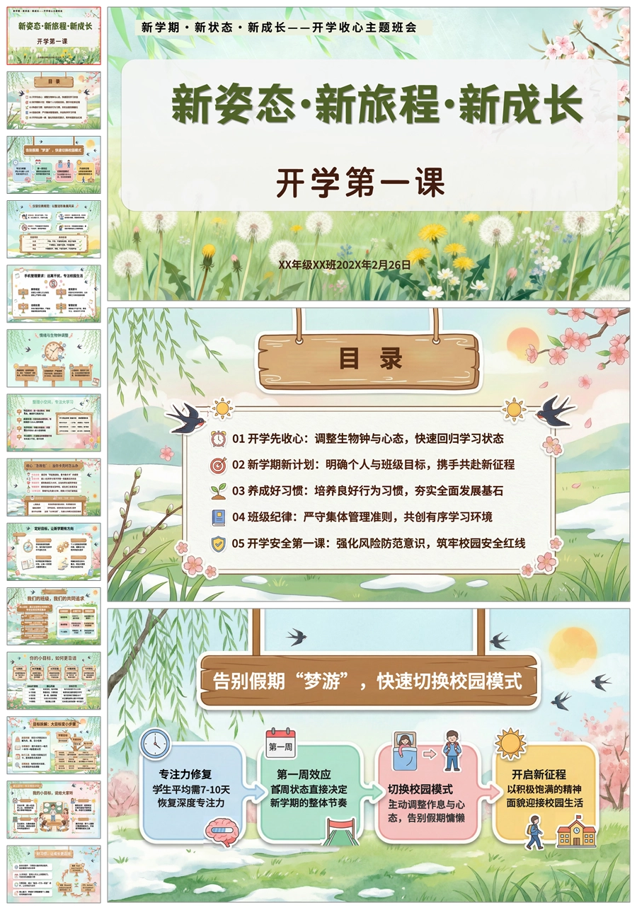 【8650】2026中小学开学第一周德育教育《新学期·新状态·新成长》收心主题班会ppt课件+发言稿