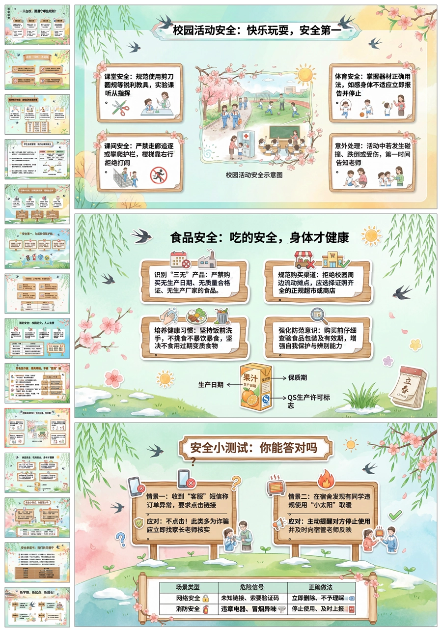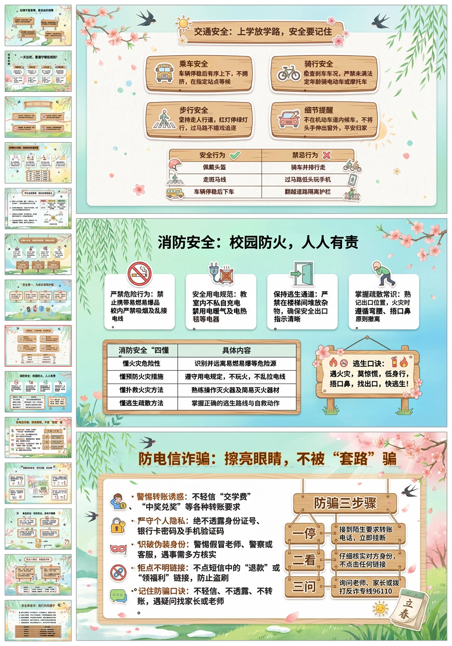 【5889】中学小学寒假安全教育主题班会PPT课件+文字稿