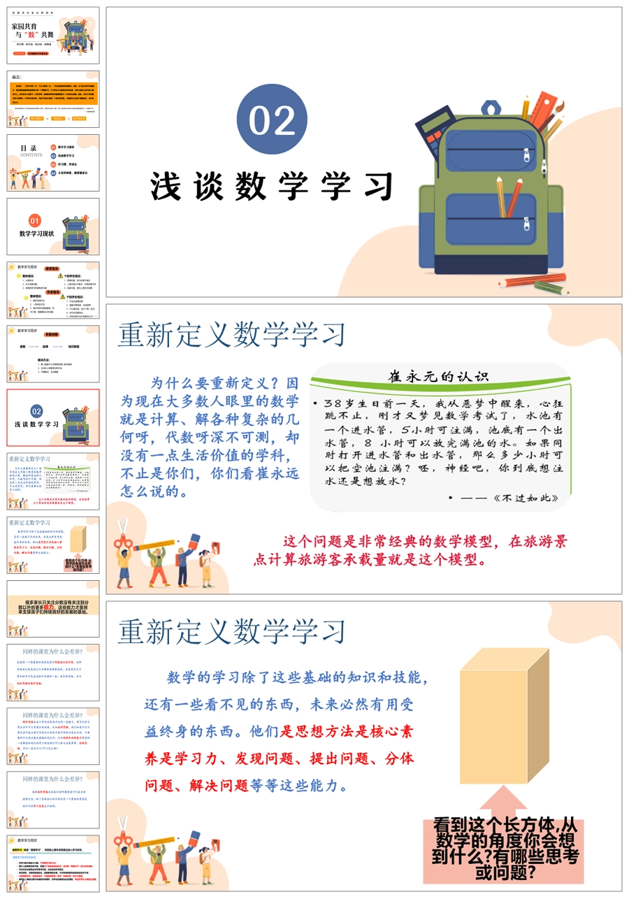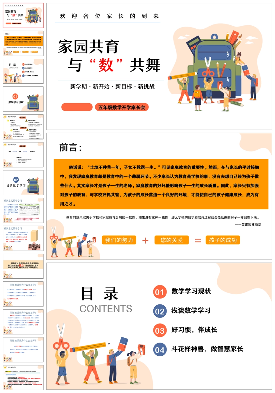 首页 教务资料 【5917】【五年级第二学期】【春季下学期】【数学】开学家长会:家园共育,与“数”共舞ppt课件+发言稿