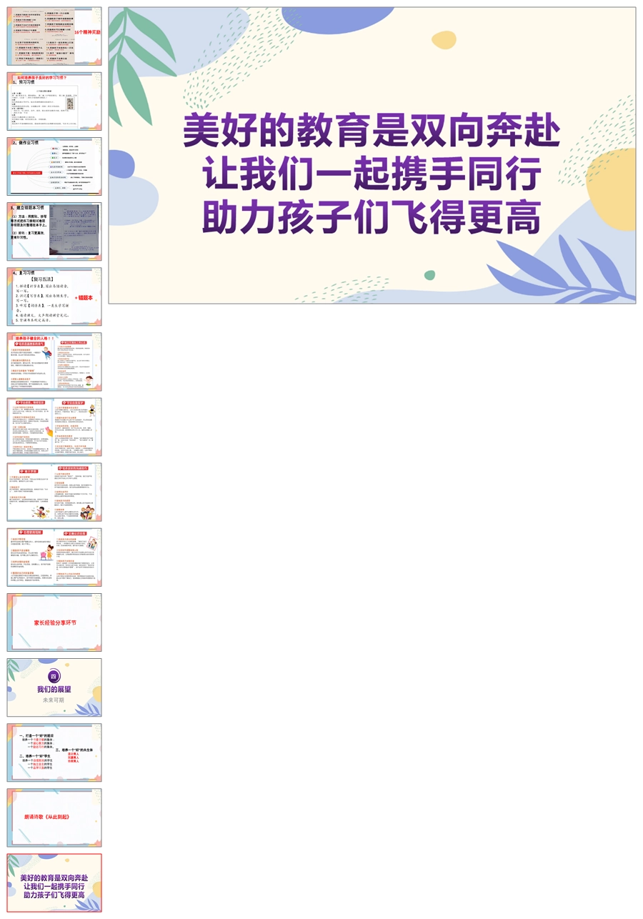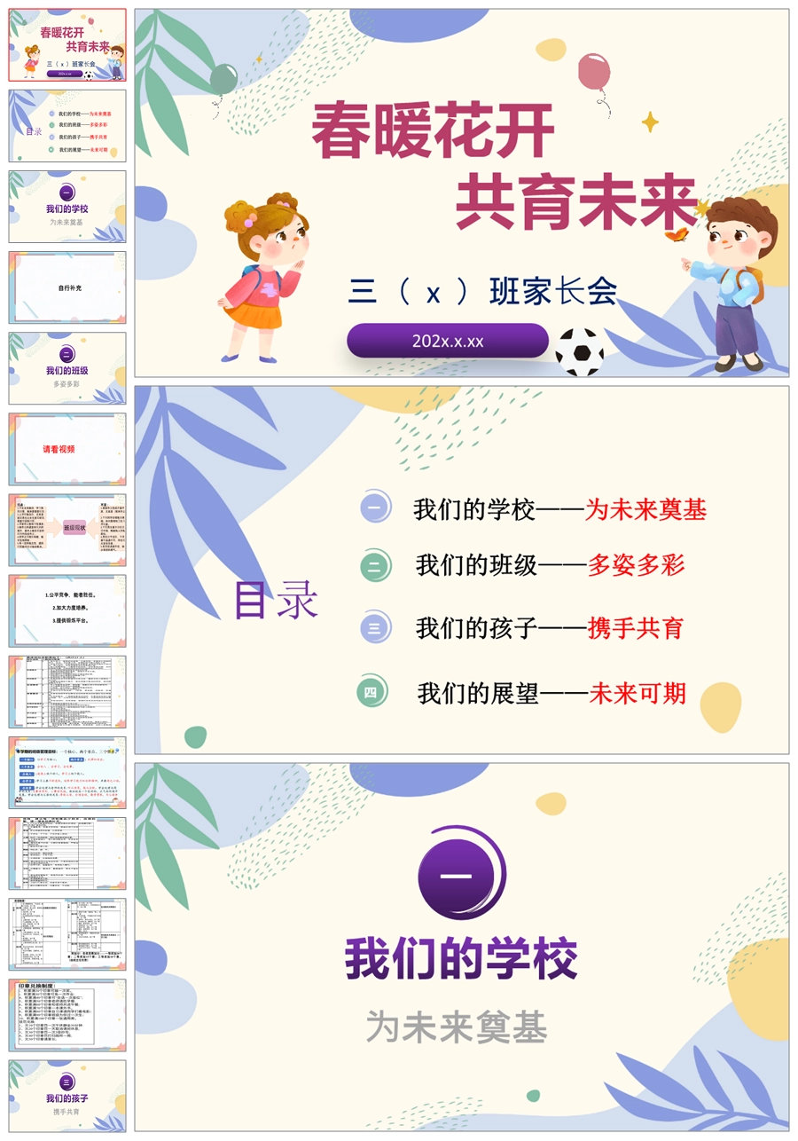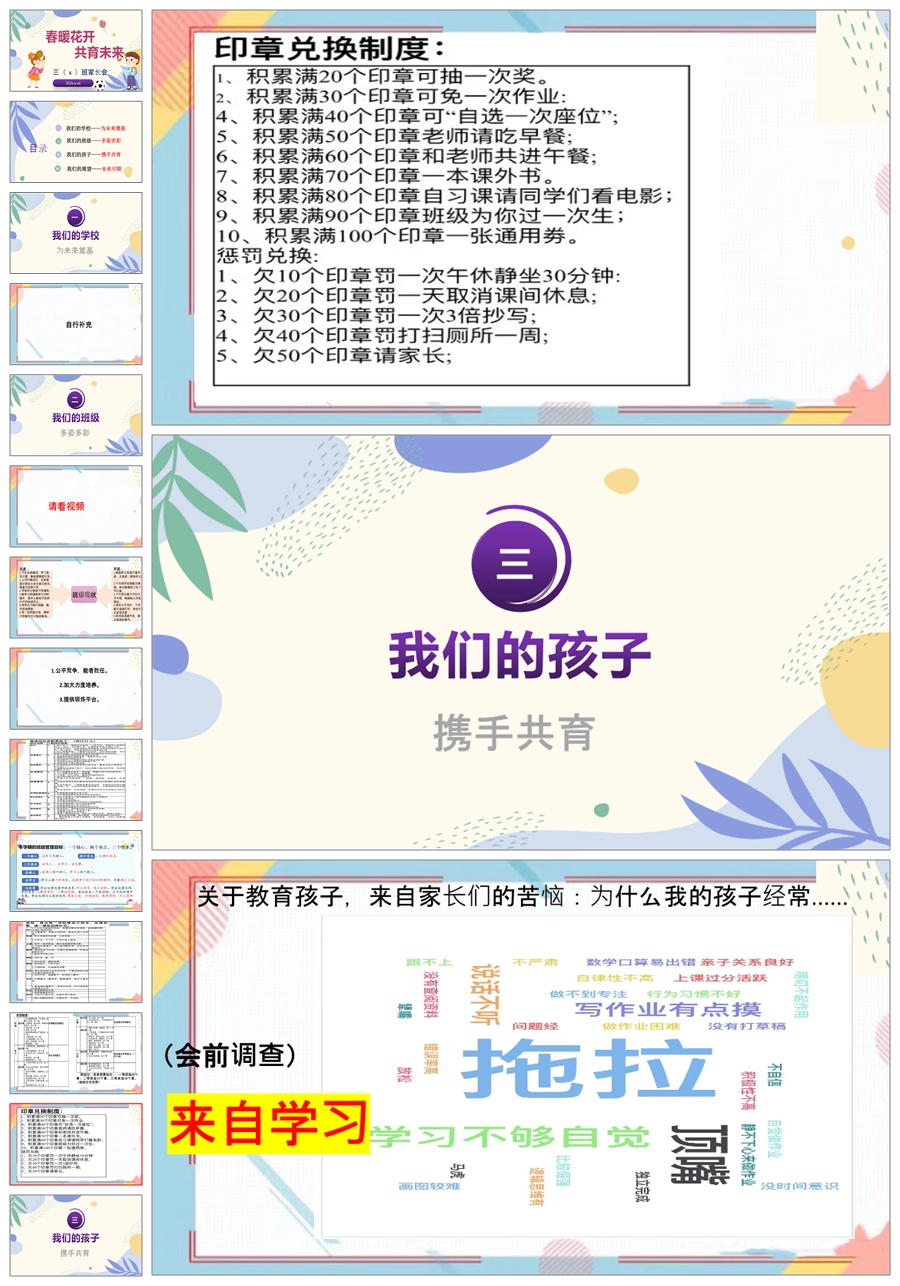 【5918】【三年级第二学期】【春季下学期】开学家长会:春暖花开,共育未来ppt课件+发言稿