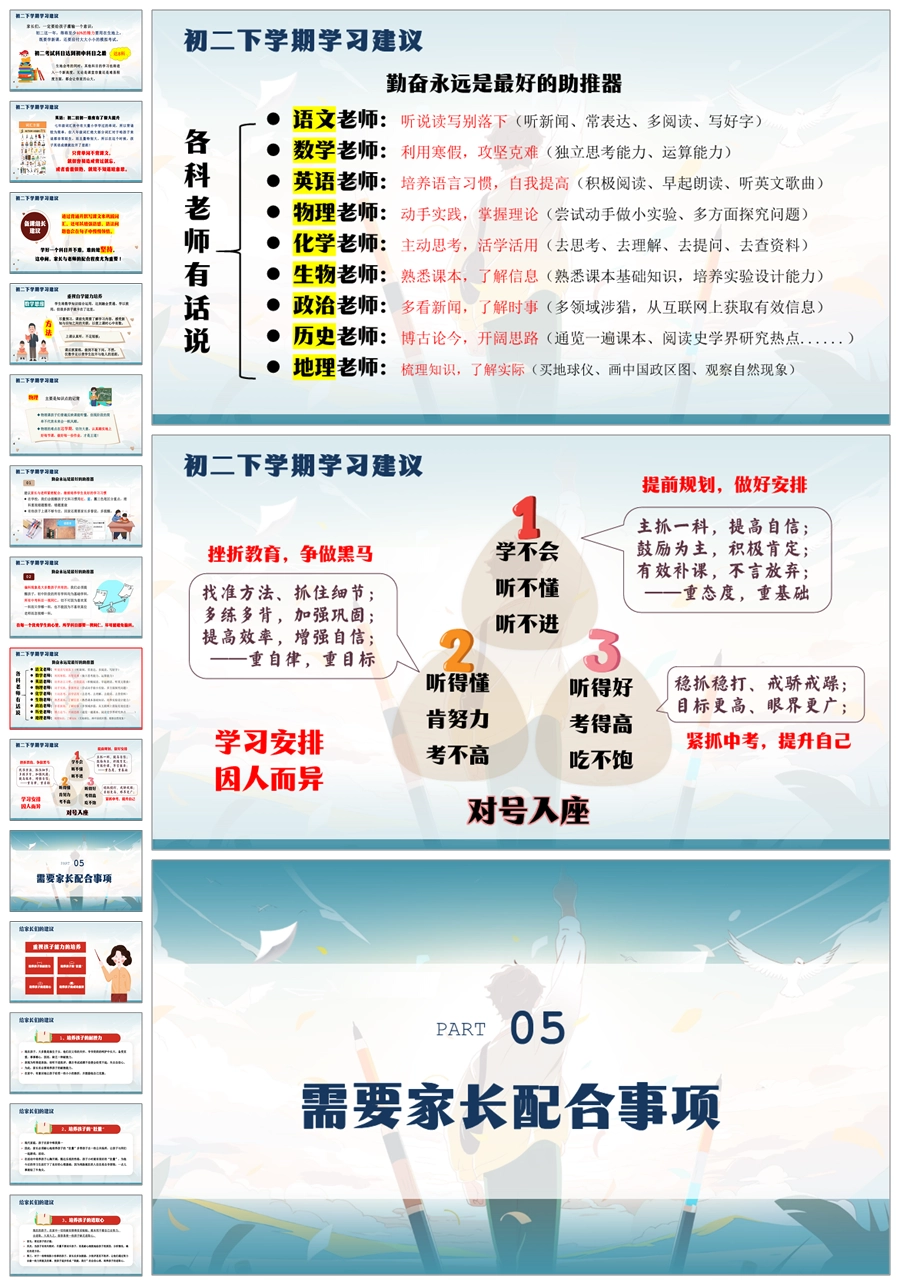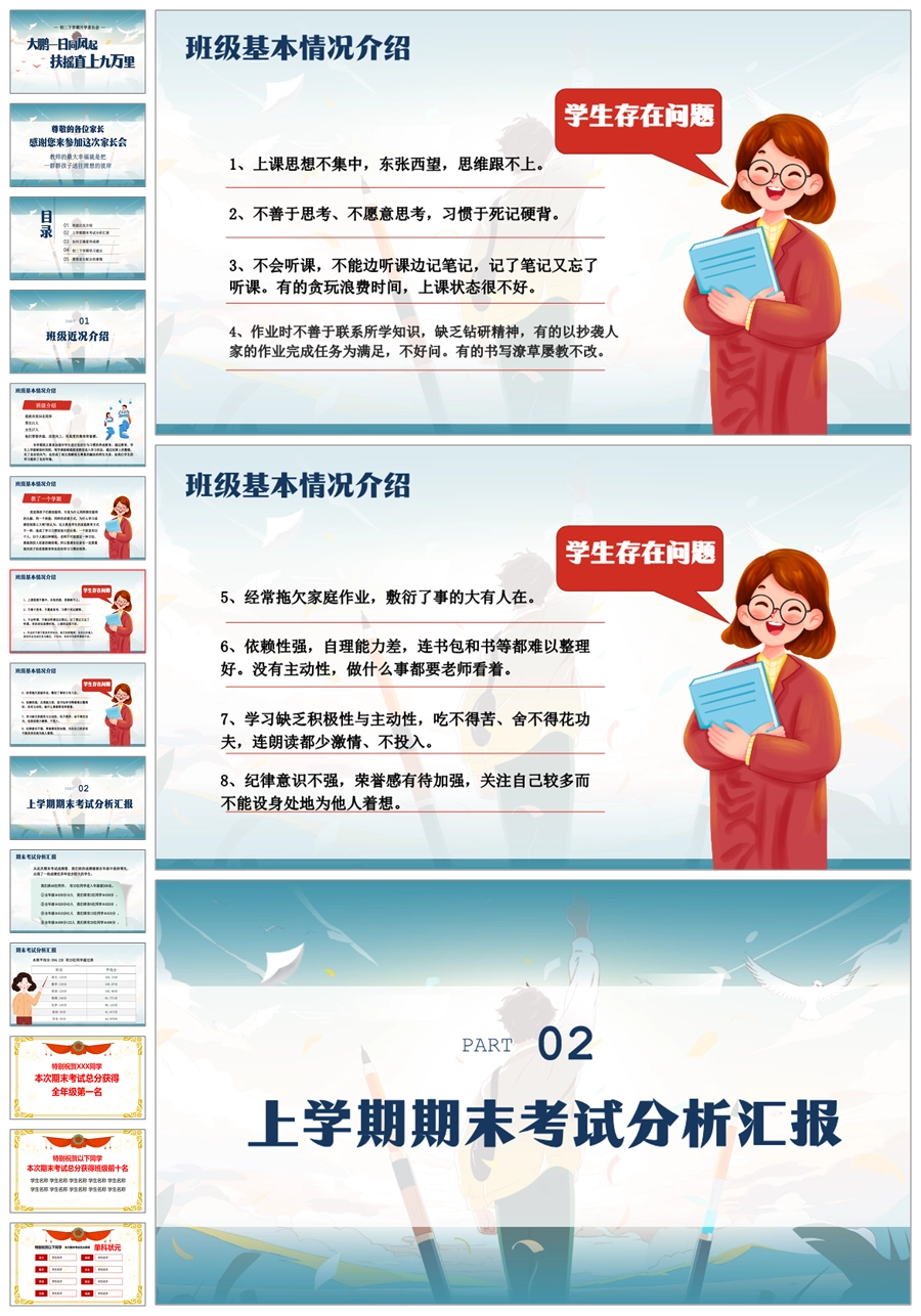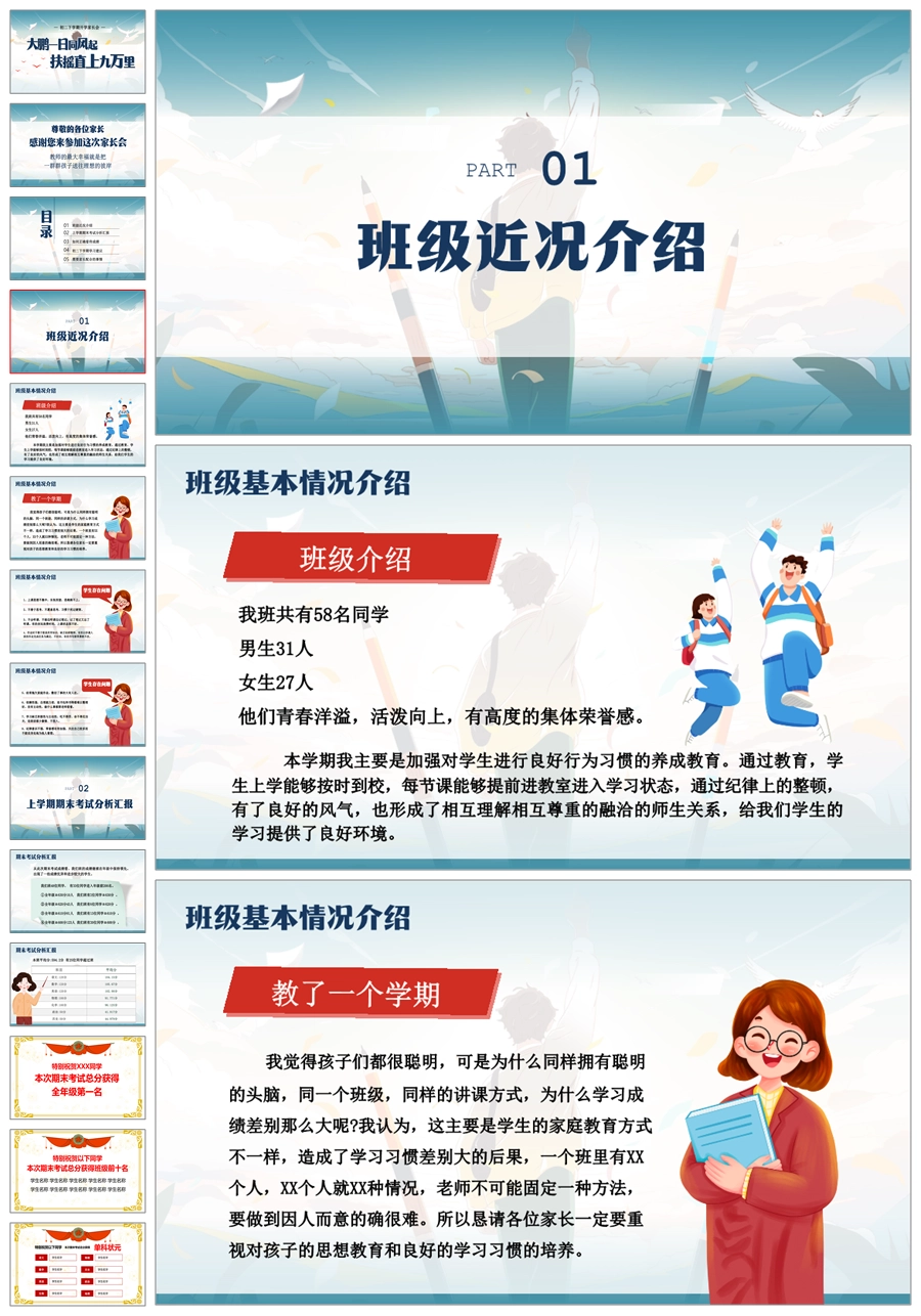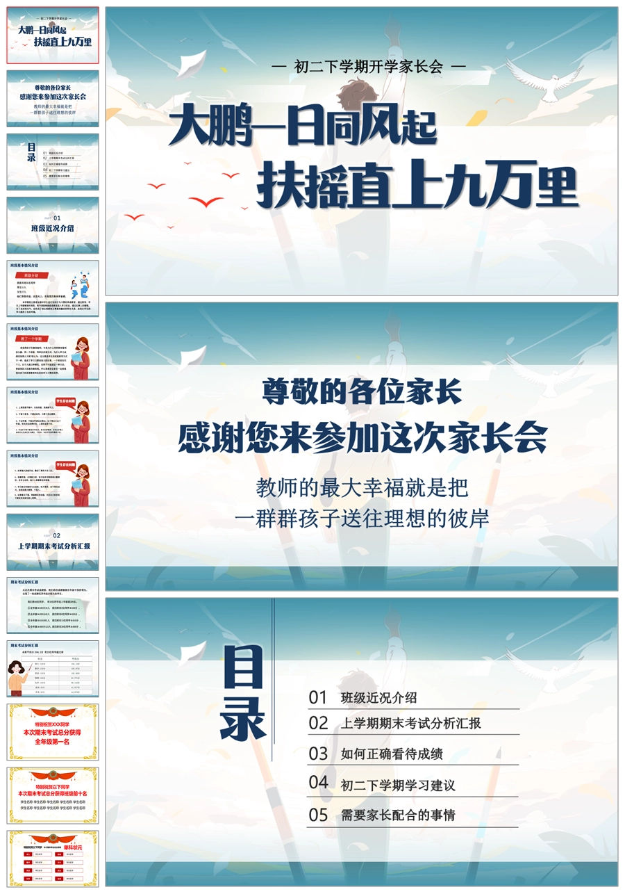 【5926】【初二第二学期】【春季下学期】开学家长会:大鹏一日同风起,扶摇直上九万里ppt课件+发言稿