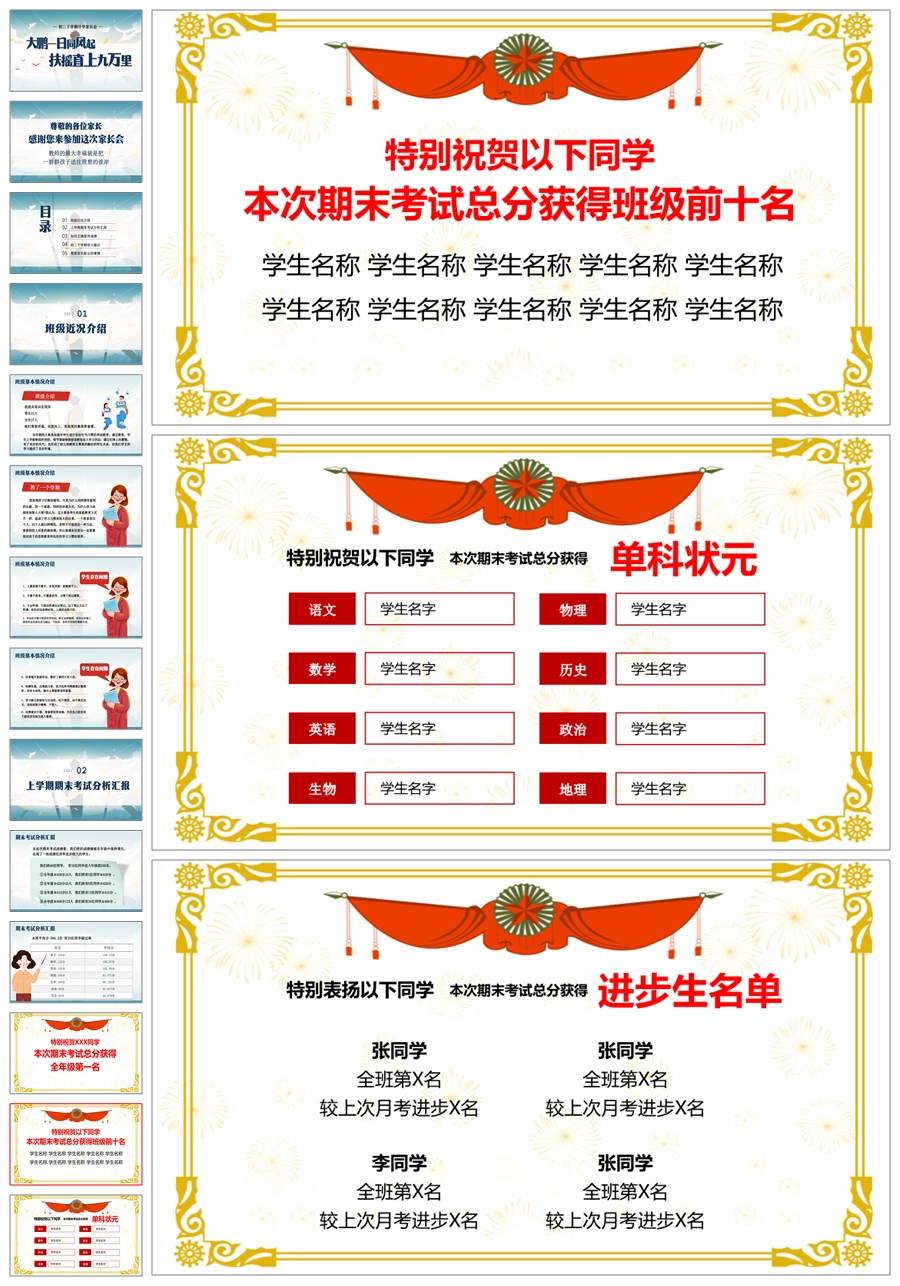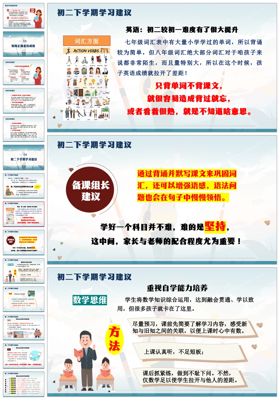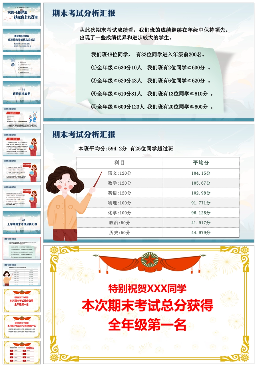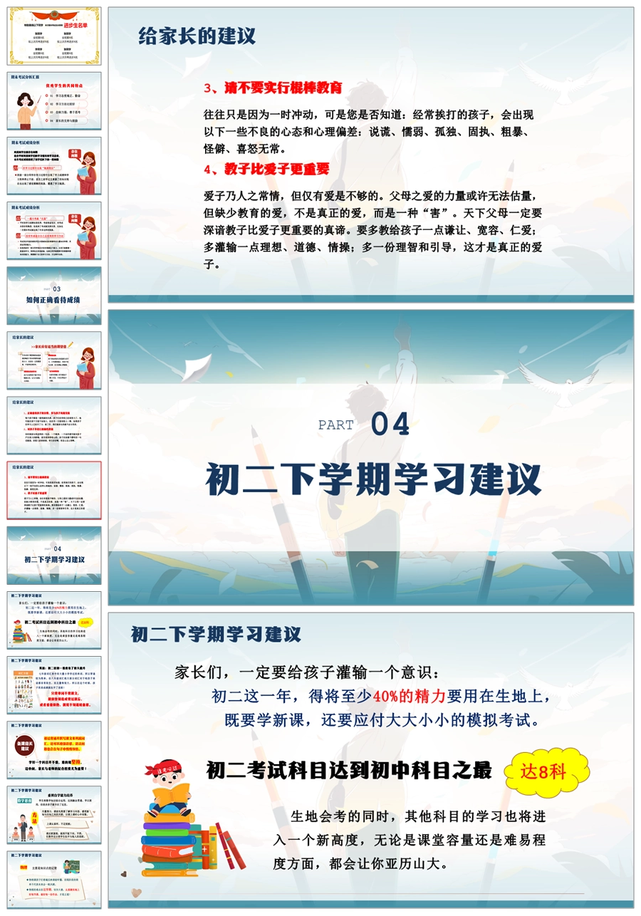 【5926】【初二第二学期】【春季下学期】开学家长会:大鹏一日同风起,扶摇直上九万里ppt课件+发言稿