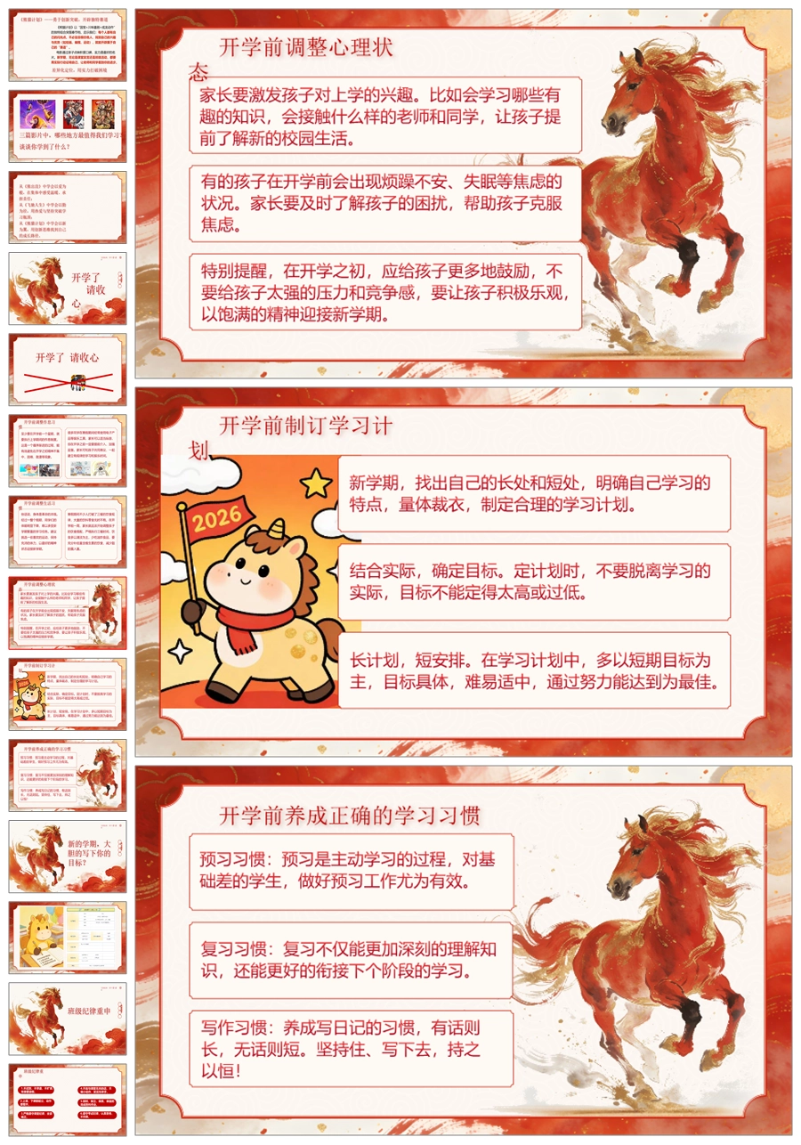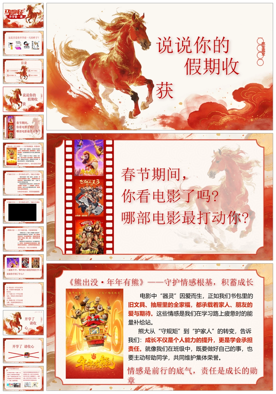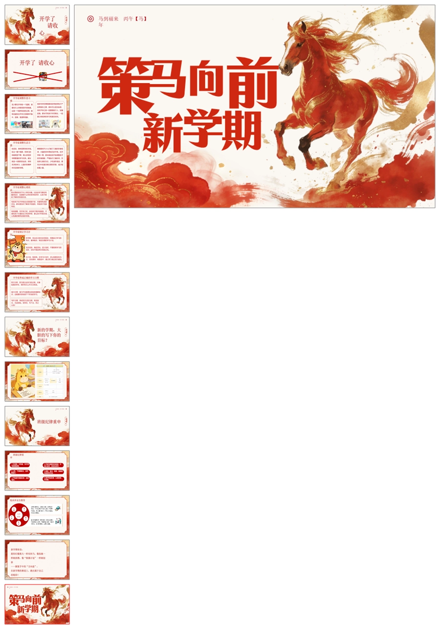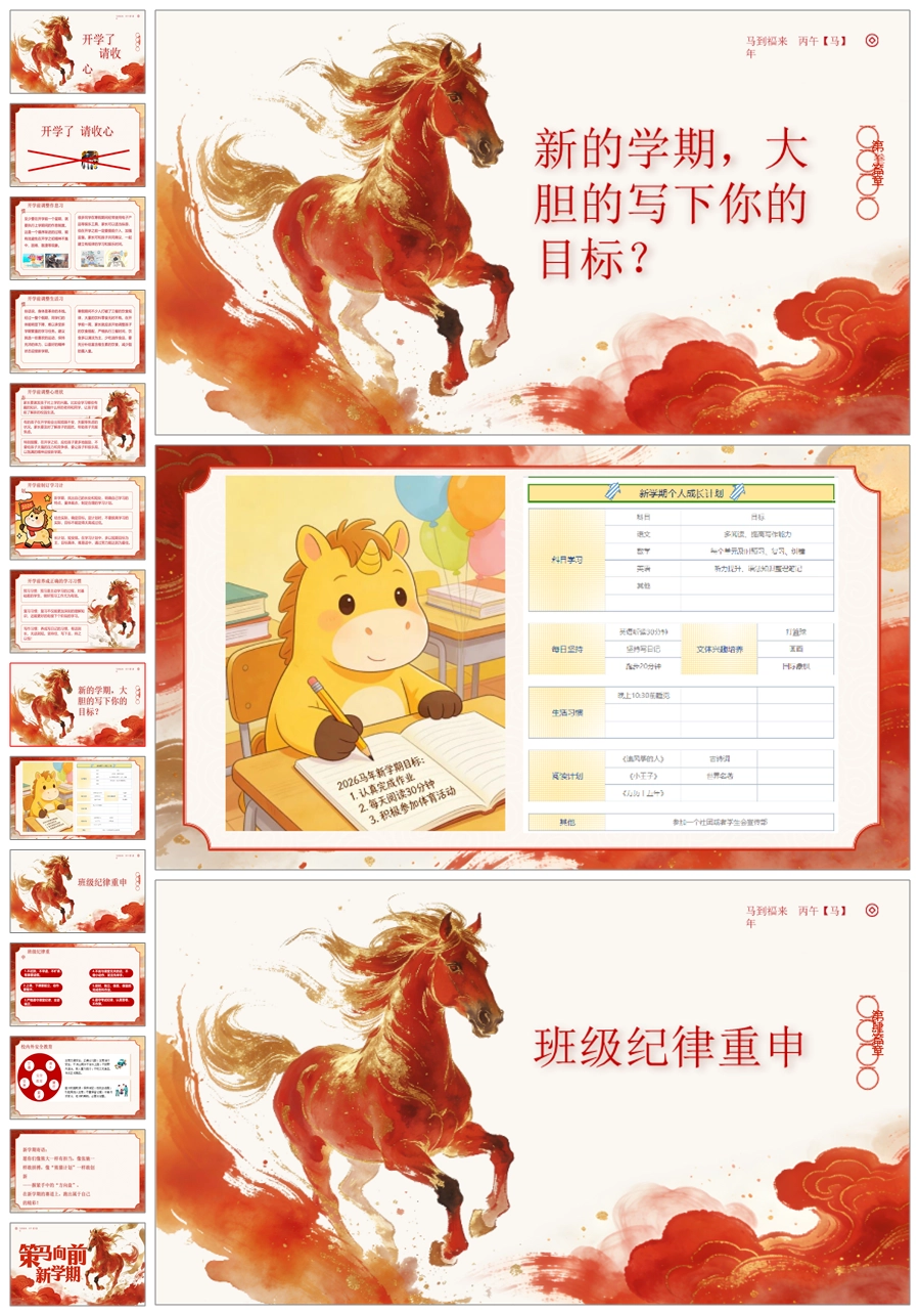 【5935】《马踏新征程》2026马年开学第一课PPT课件+教案+发言稿+计划书