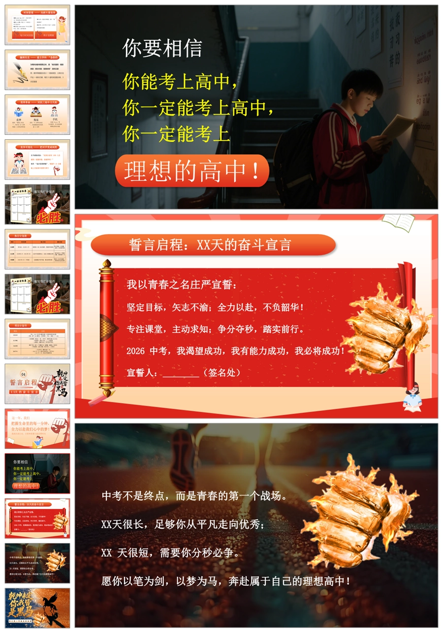 【5834】通用【期末总动员】《全力以赴备战期末》PPT课件+发言稿+挑战书