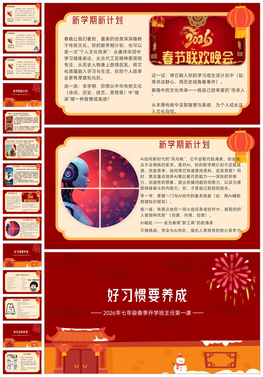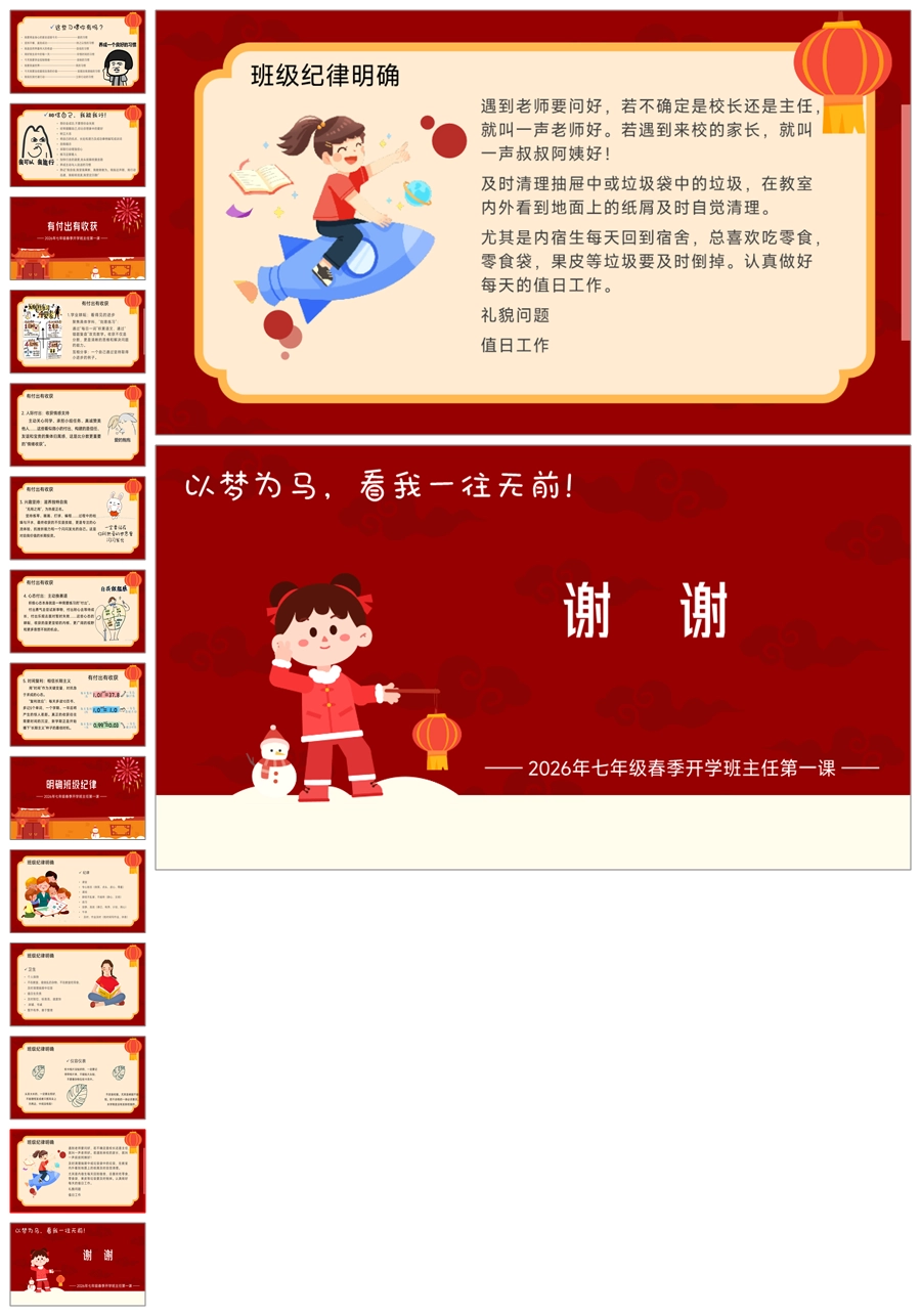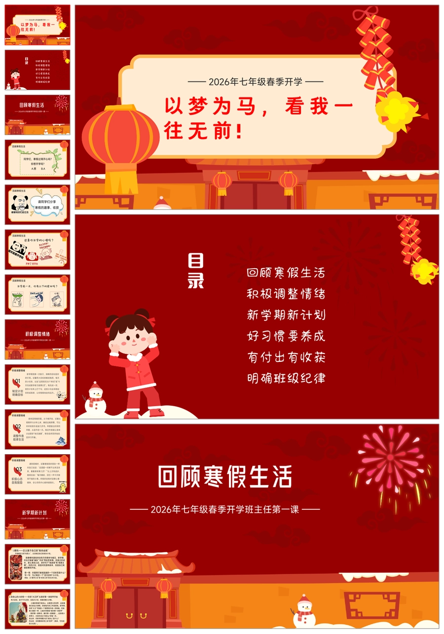 【5943】【初一】【七年级】《以梦为马,看我一往无前!》2026开学开学第一课ppt课件+逐字稿