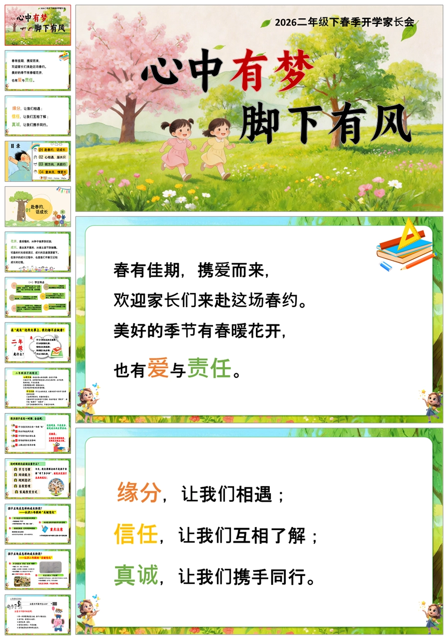【5952】二下开学家长会《心中有梦 脚下有路》二年级下学期开学家长会ppt课件+教案