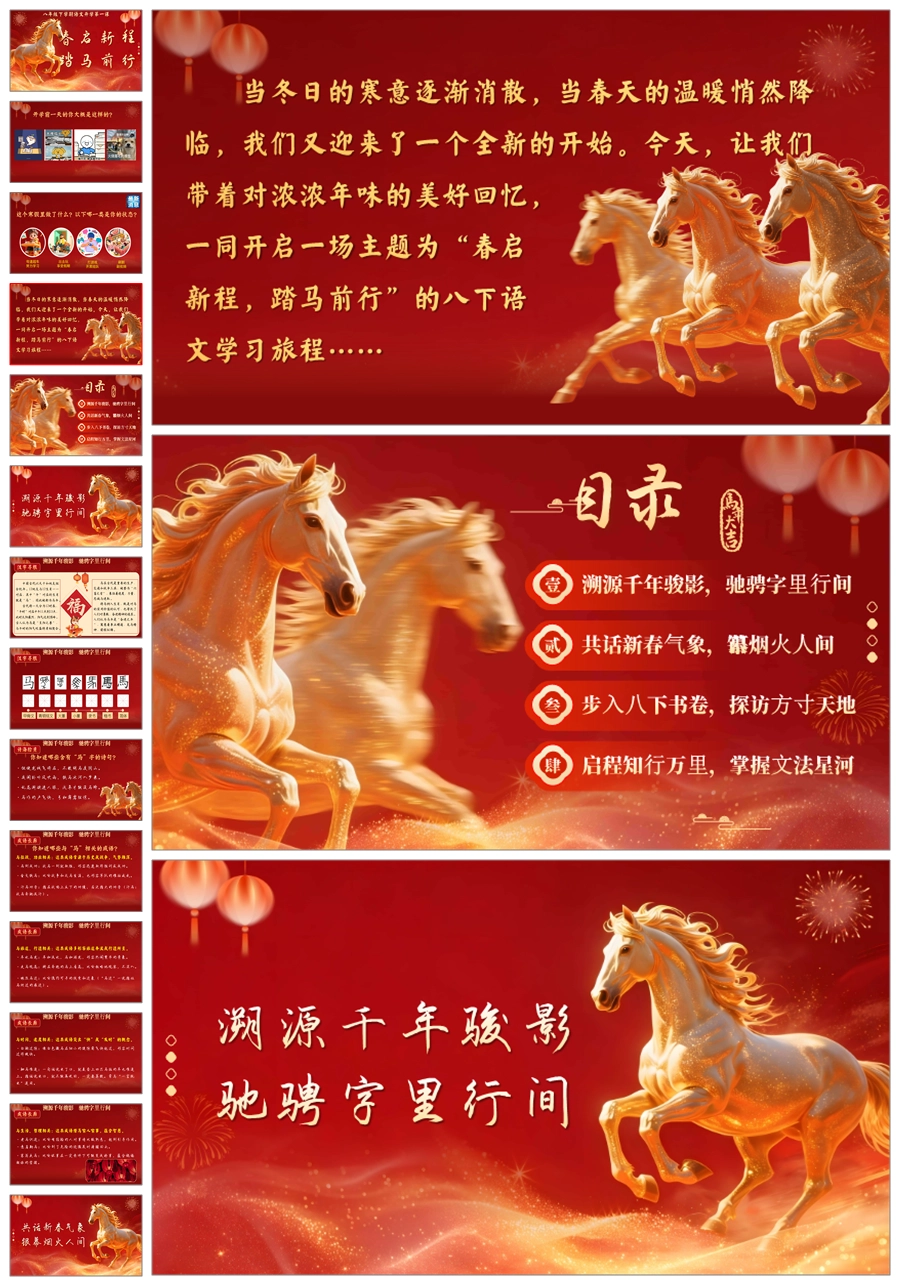 首页 通用班会 【5957】【初二】【八年级】【语文】【春季下】开学第—课《春启新程,踏马前行》
