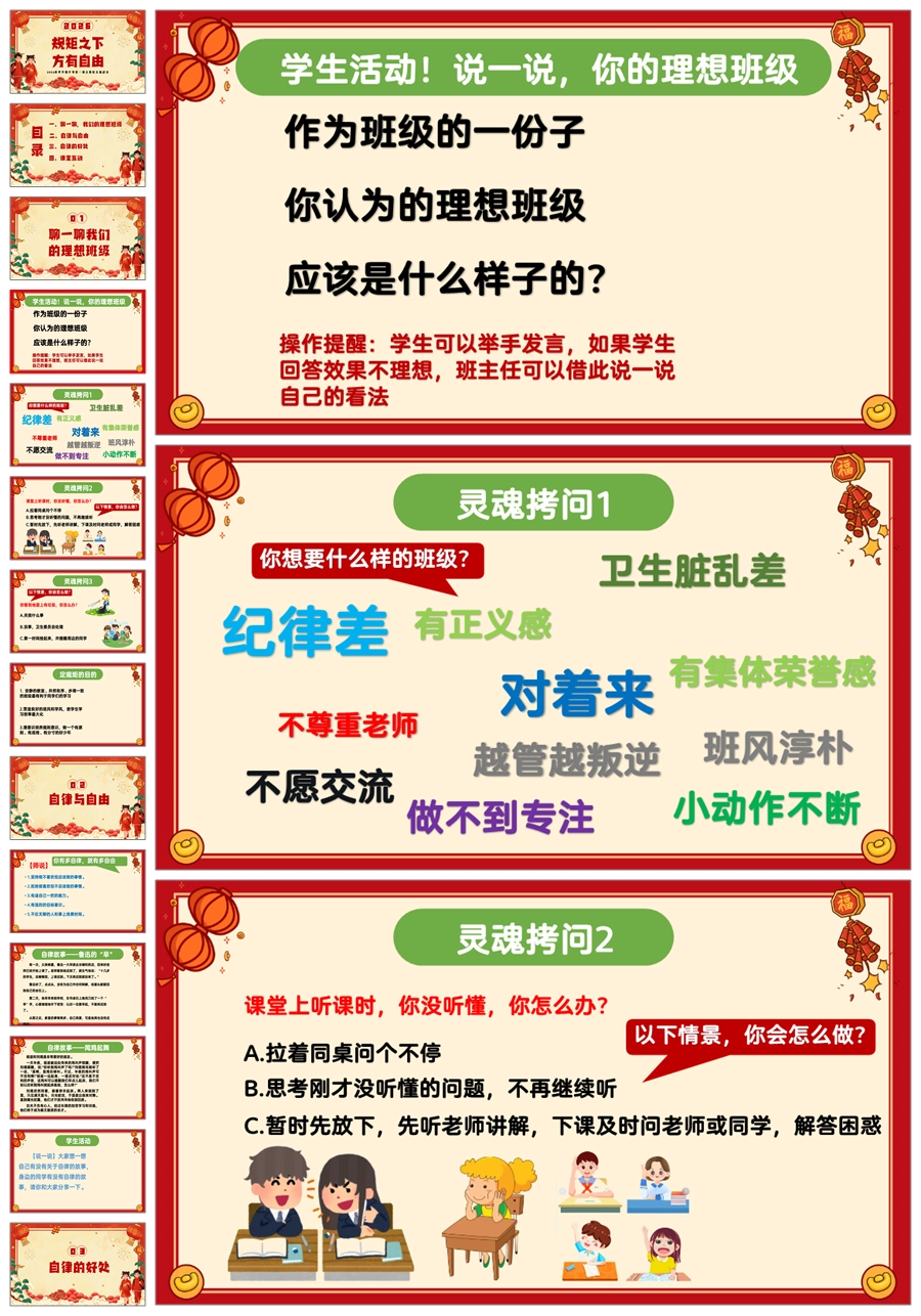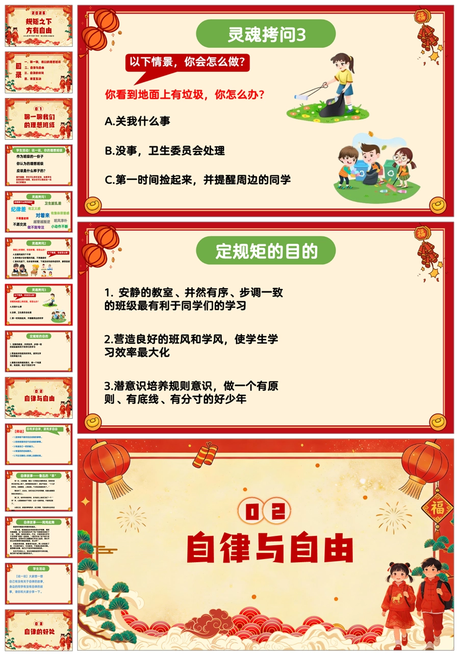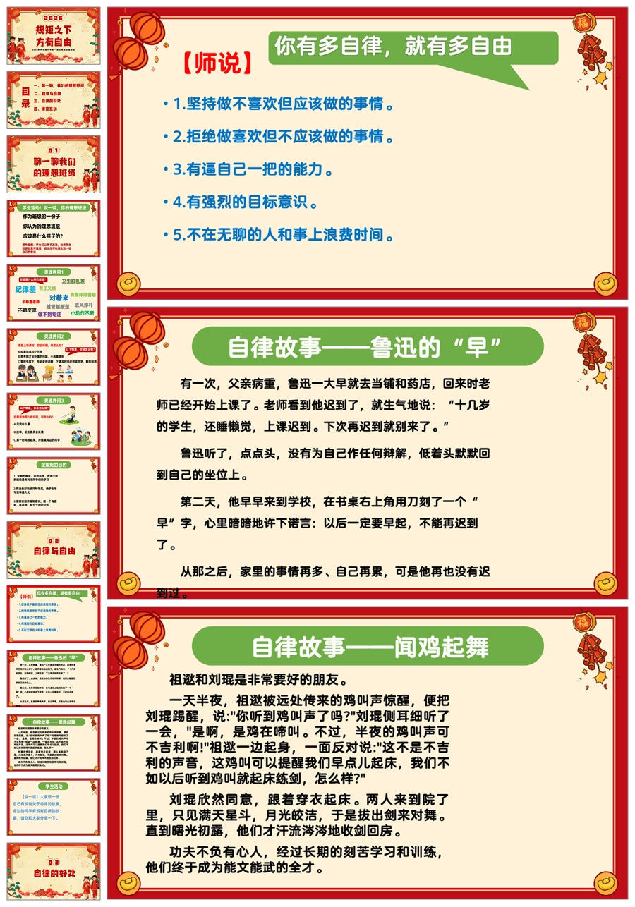 【5974】2026春班主任开学第一课《规矩之下方有自由》ppt课件+教案+发言稿