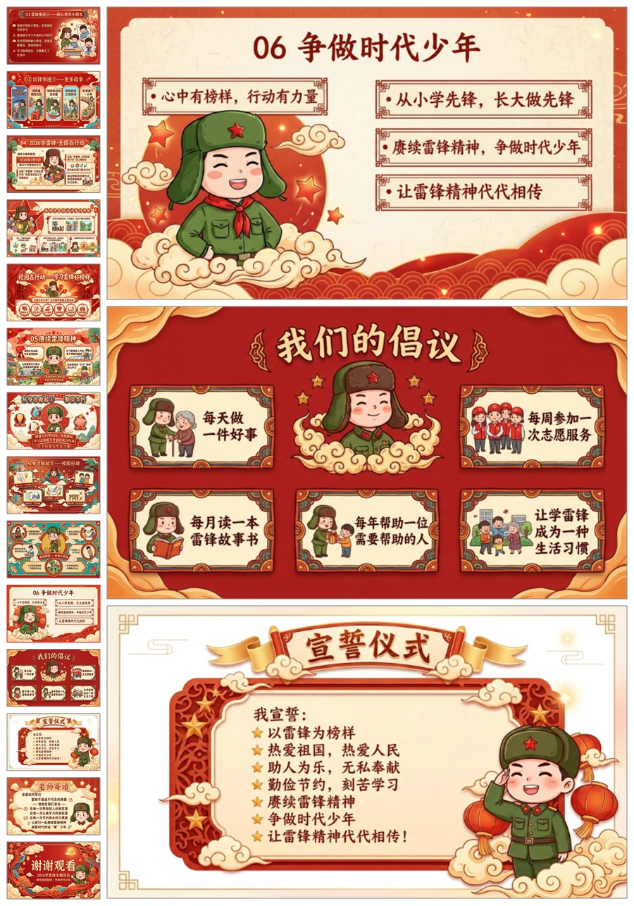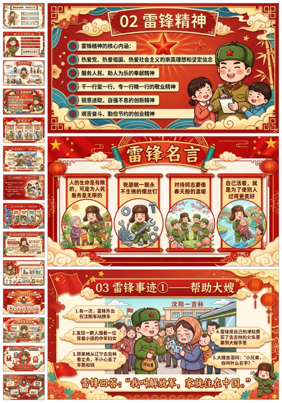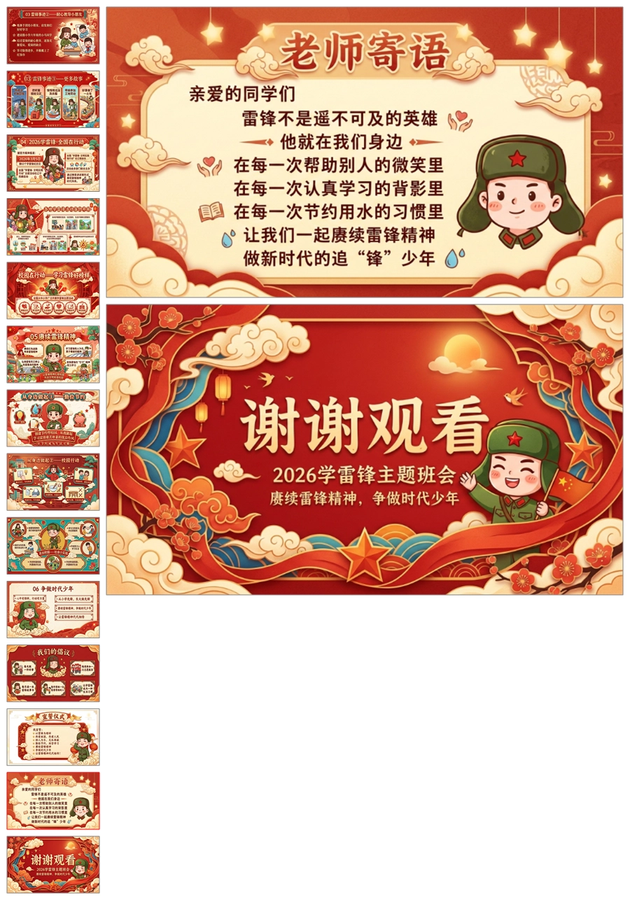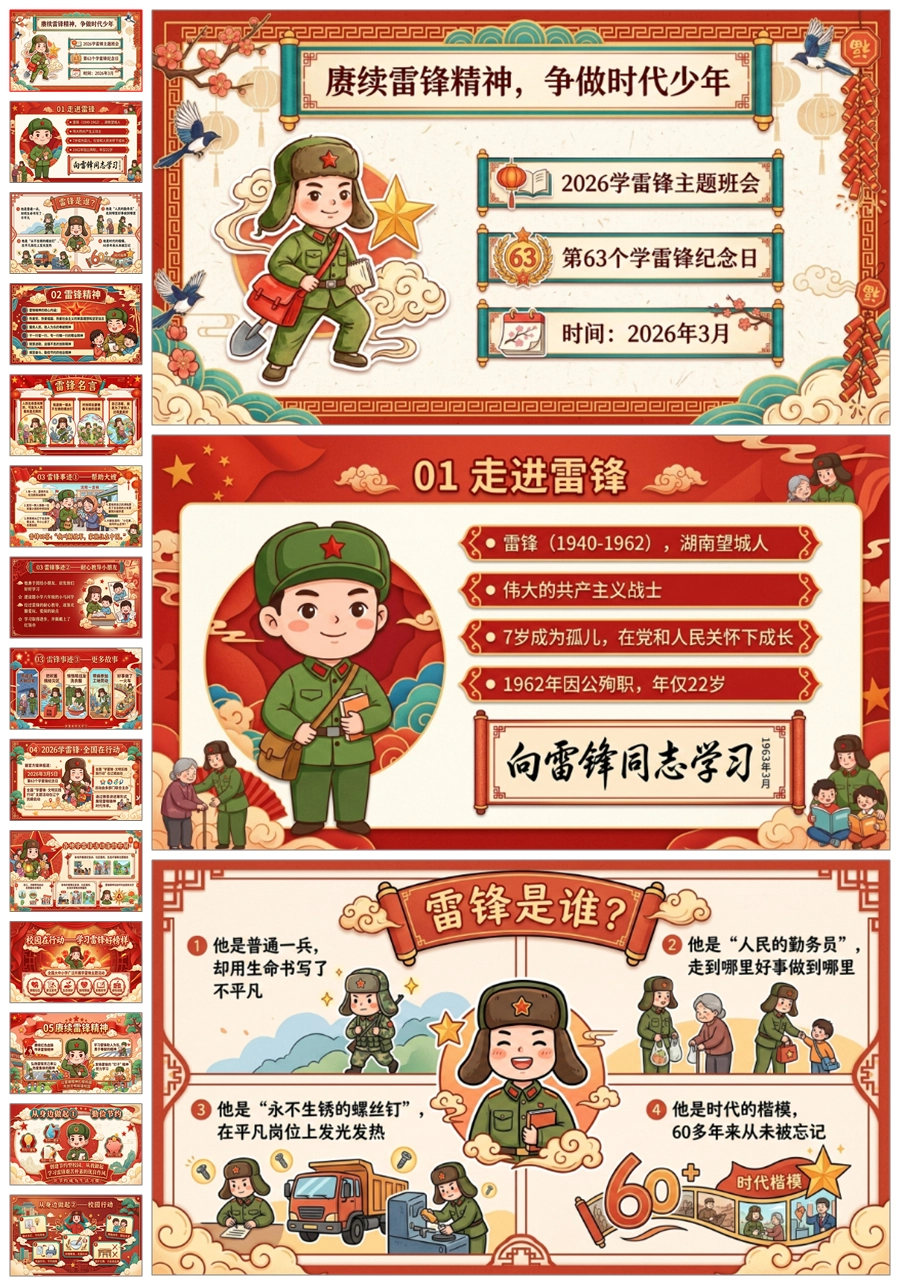 【5989】《赓续雷锋精神争做时代少年》学习雷锋精神主题班会ppt课件+逐字稿+教案+视频