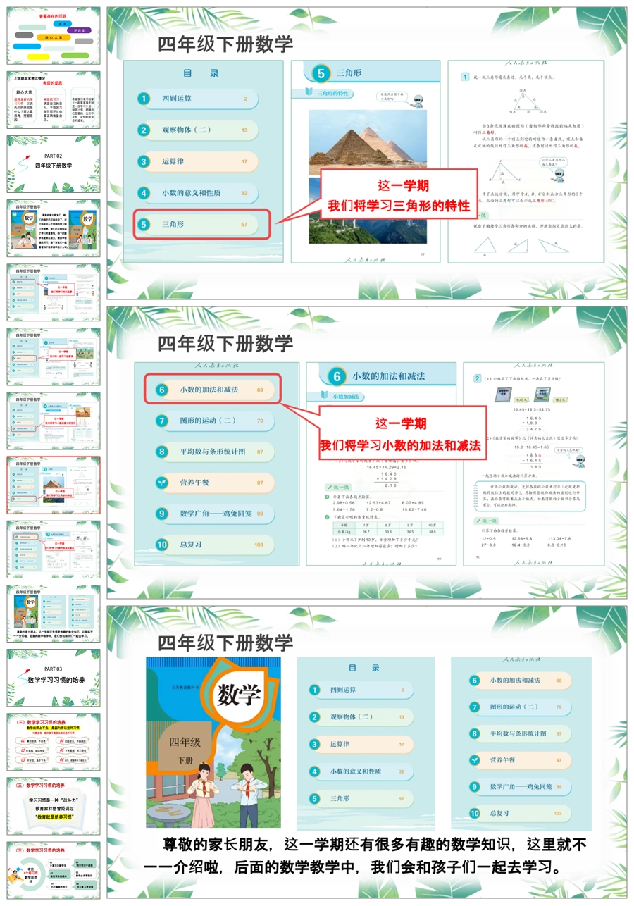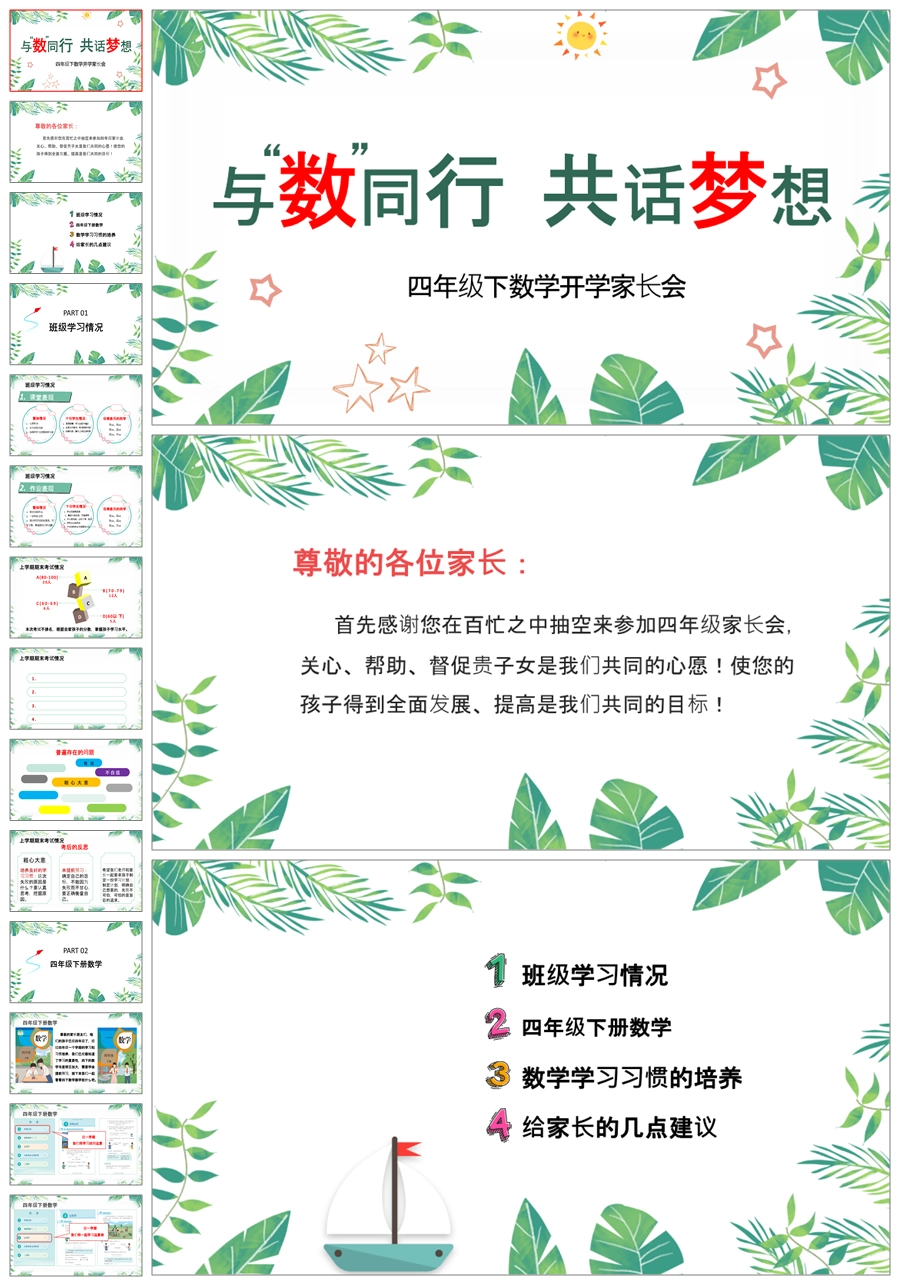 【5997】【四年级】【数学】【春季下】下学期开学家长会《与数同行,共话梦想》ppt课件+发言稿