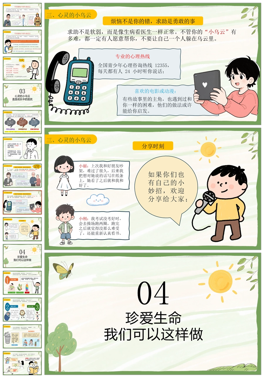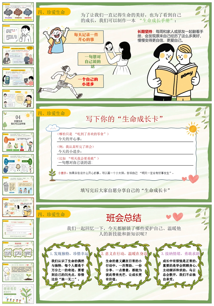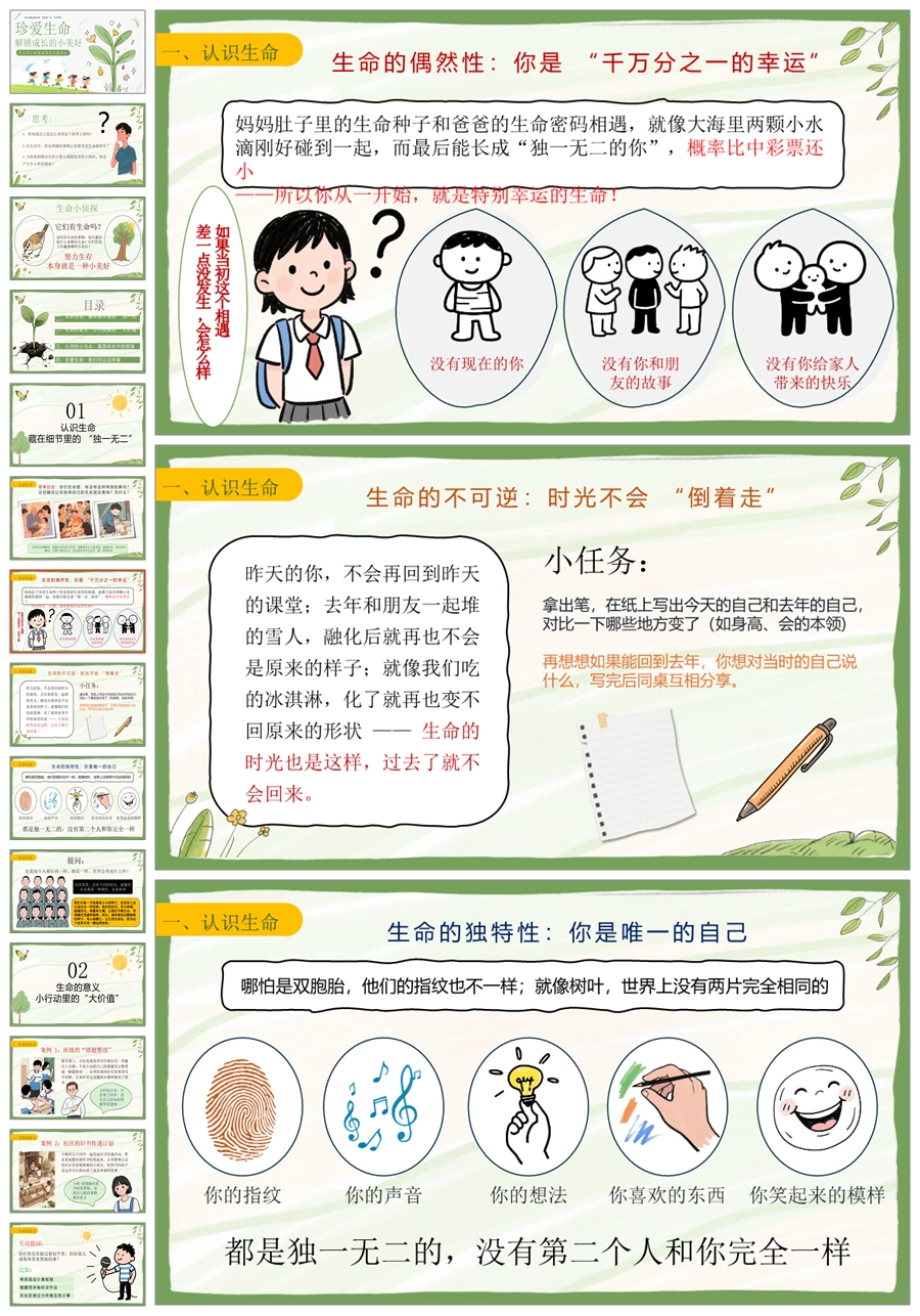 【6002】【通用】【心理健康教育】主题班会《珍爱生命,解锁成长的小美好》ppt课件+教案+逐字稿