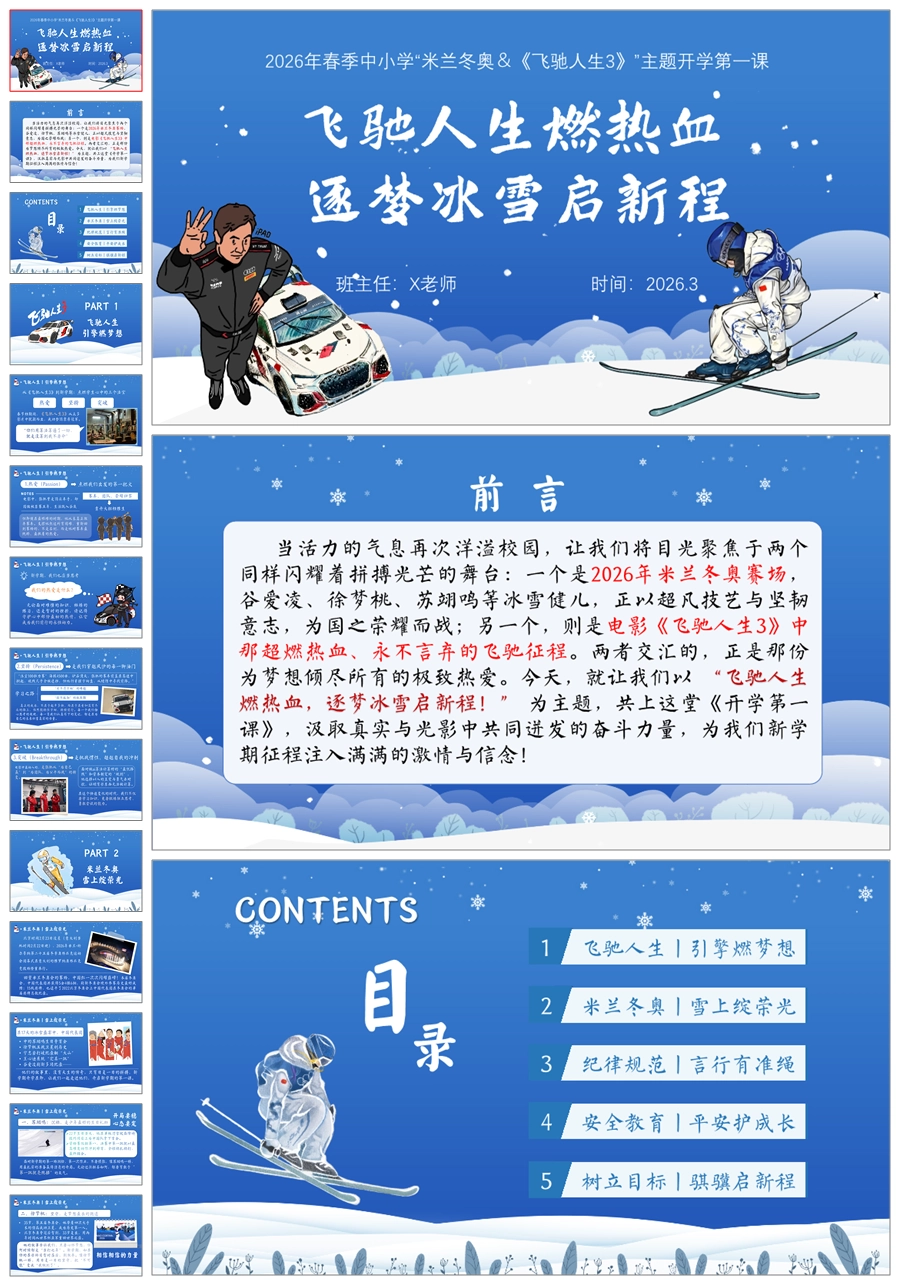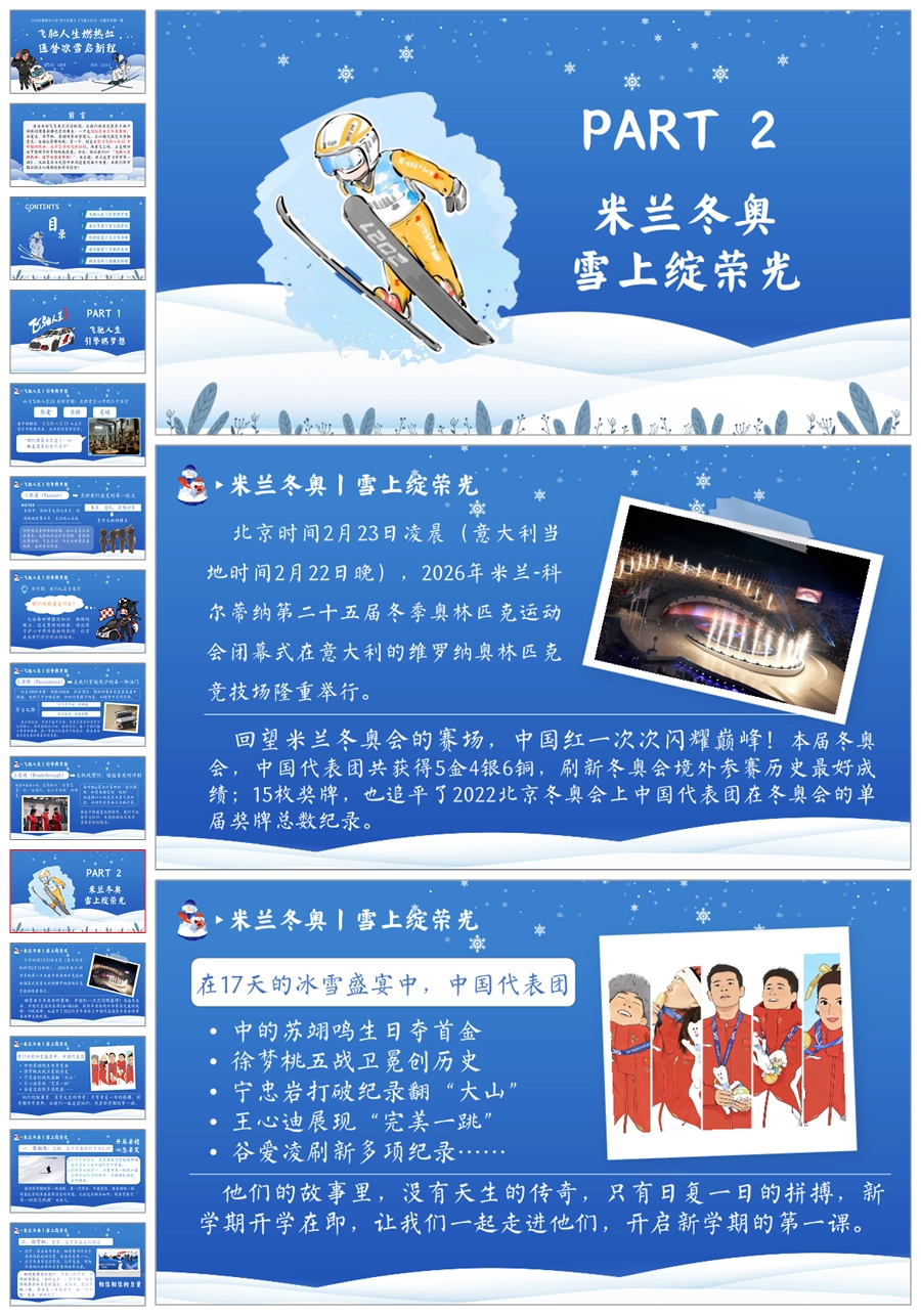 【6003】【通用】2026春季“米兰冬奥”开学第一课PPT《飞驰人生燃热血,逐梦冰雪启新程》ppt课件+发言稿