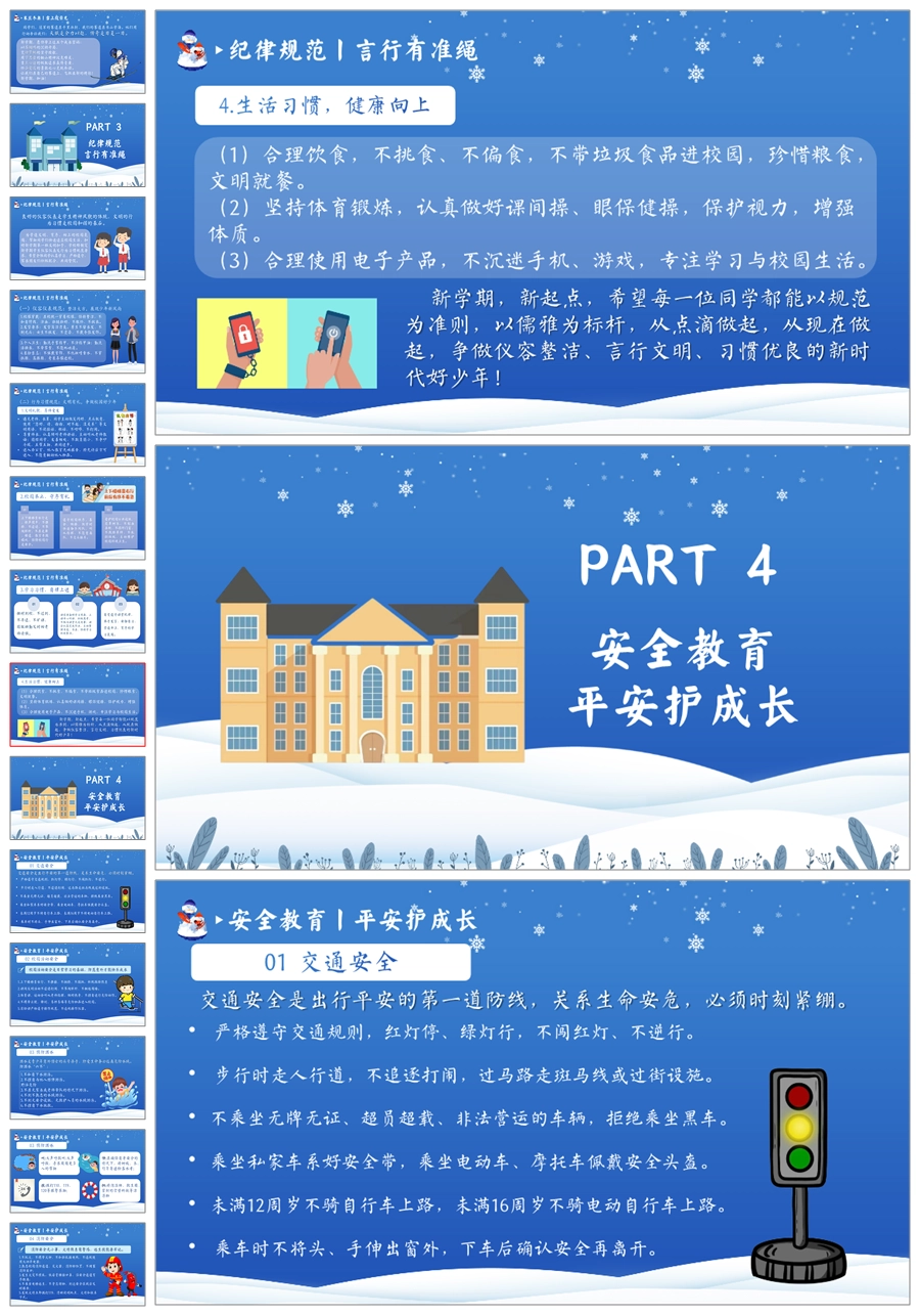 【5889】中学小学寒假安全教育主题班会PPT课件+文字稿