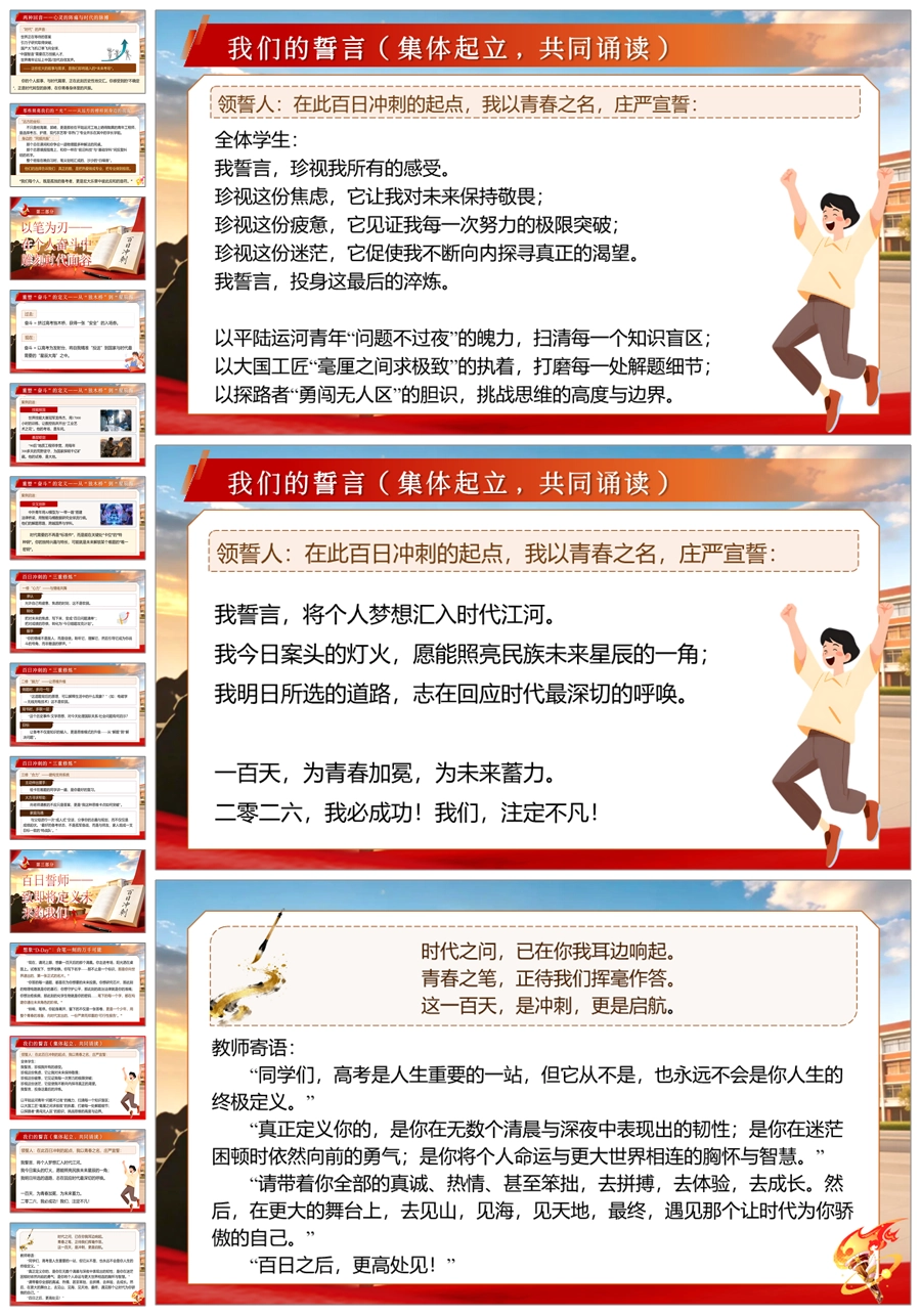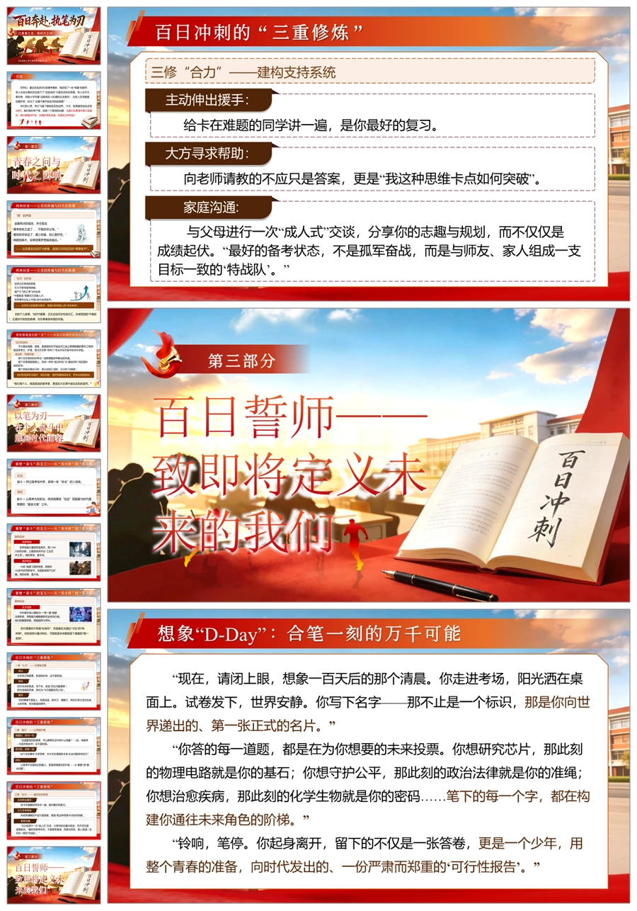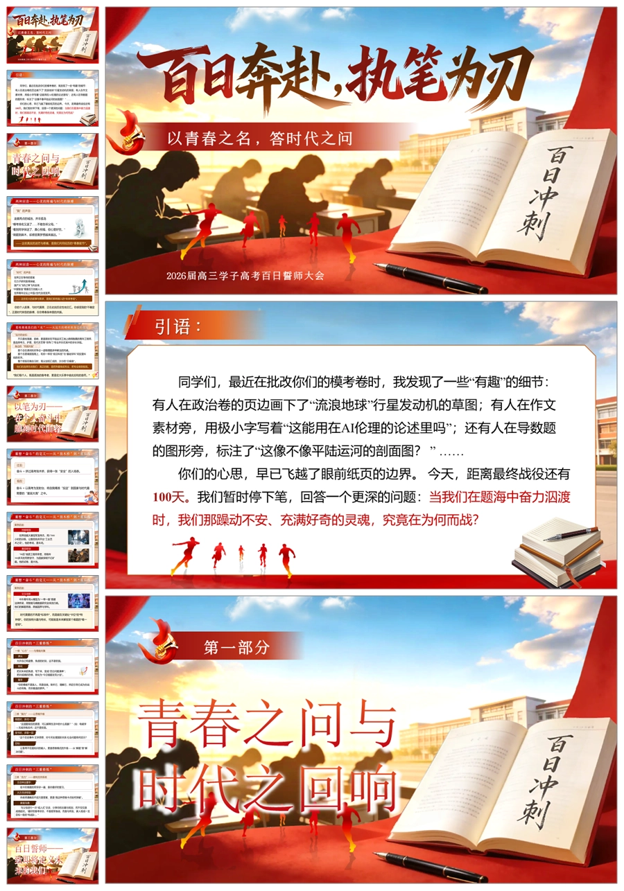 【6006】【高三】高考百日誓师主题班会《百日奔赴,执笔为刃》ppt课件+发言稿