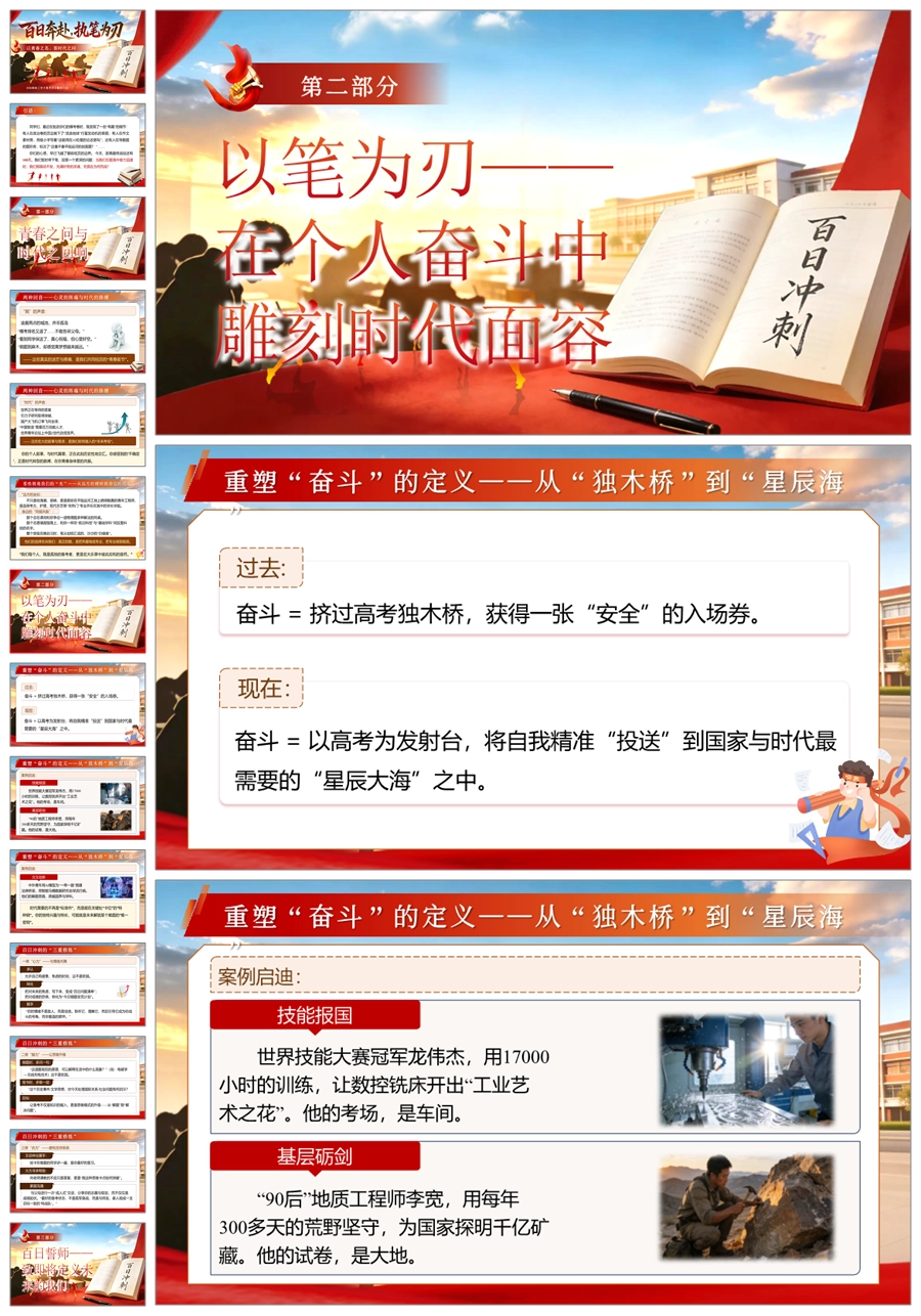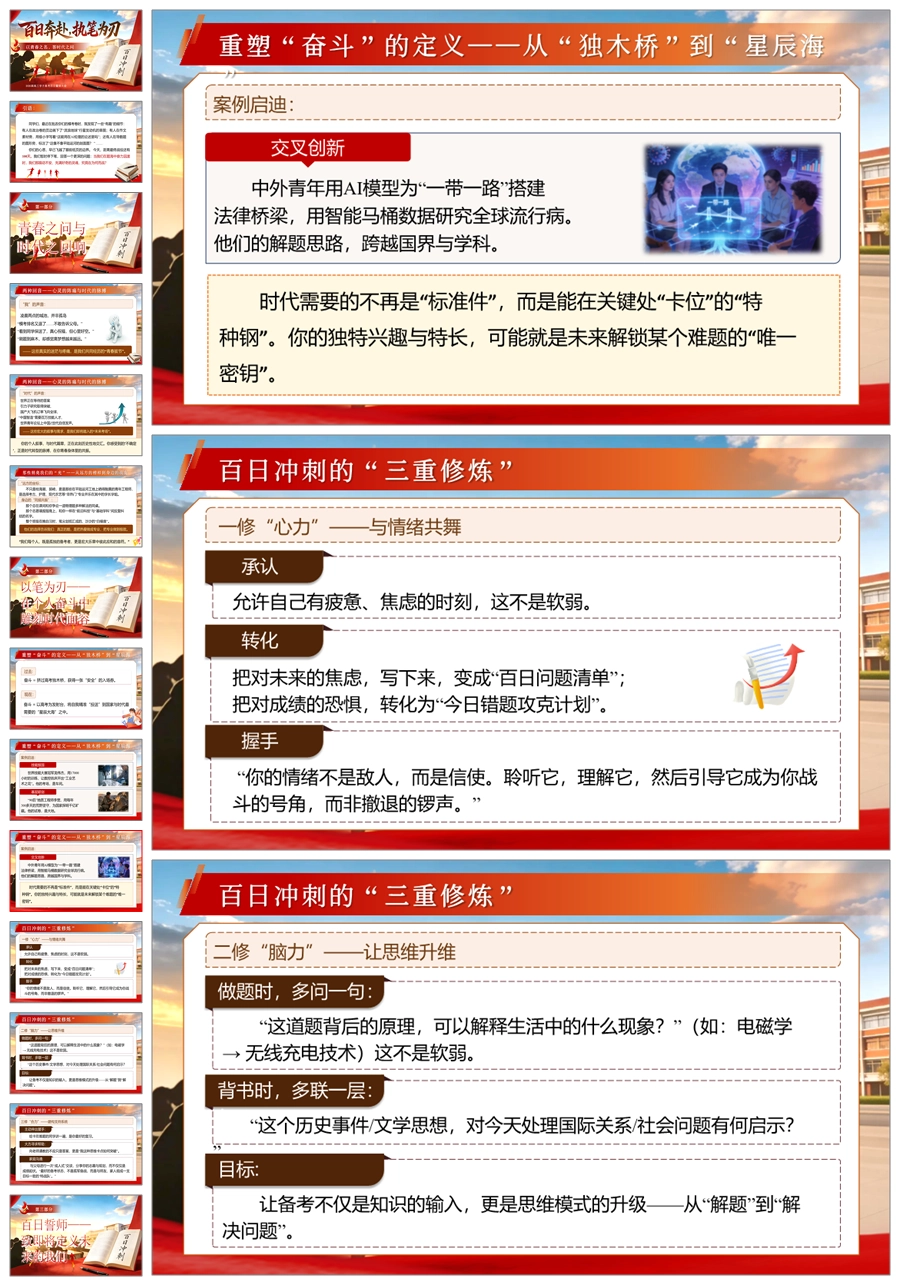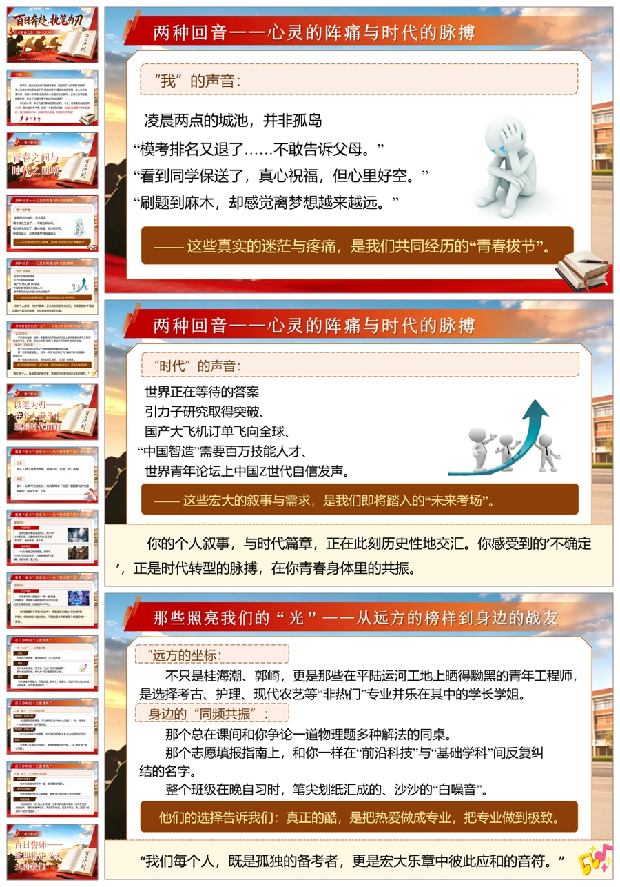 【6006】【高三】高考百日誓师主题班会《百日奔赴,执笔为刃》ppt课件+发言稿