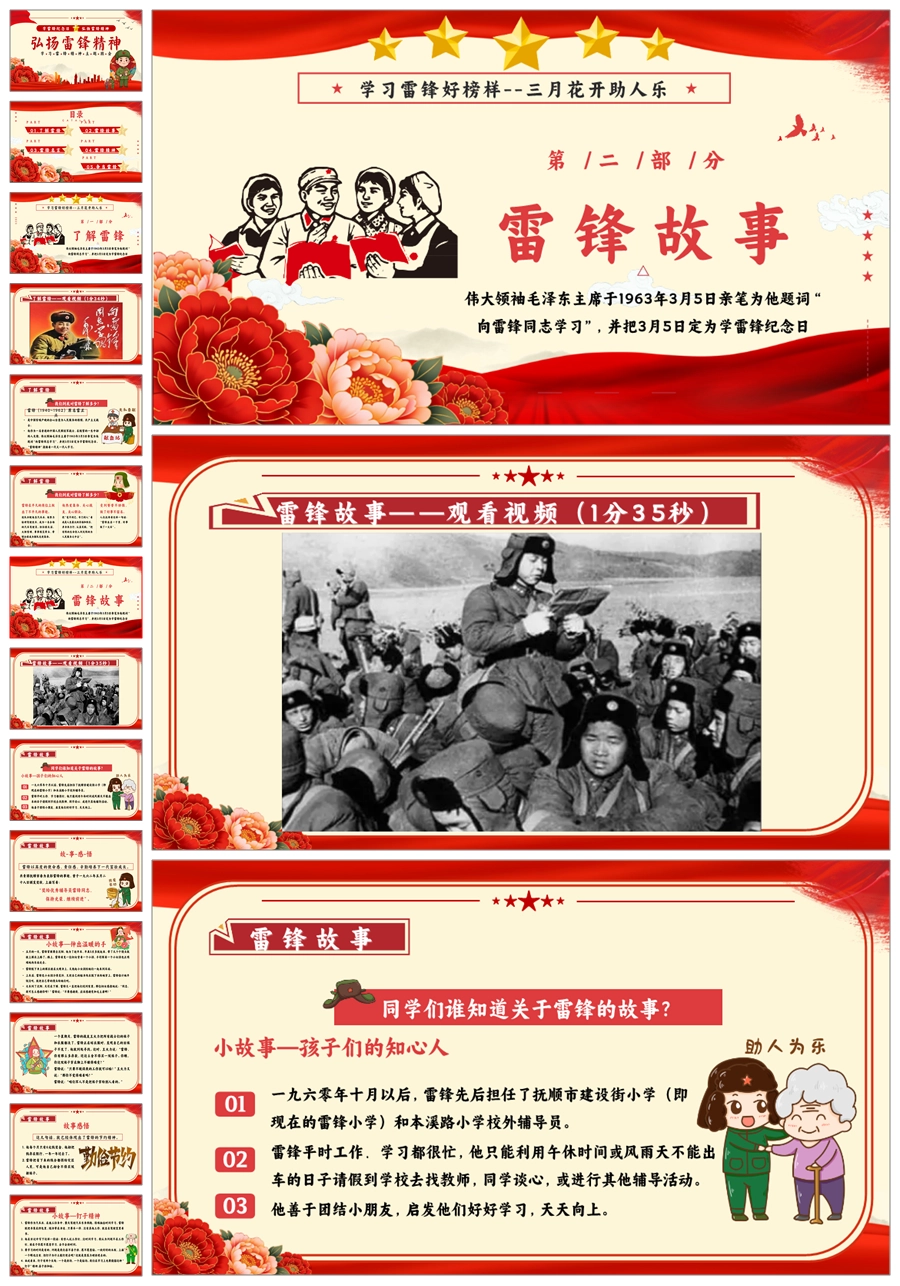 【8664】《学雷锋纪念日》弘扬雷锋精品主题班会PPT+教案+演讲稿+主持稿+6个视频