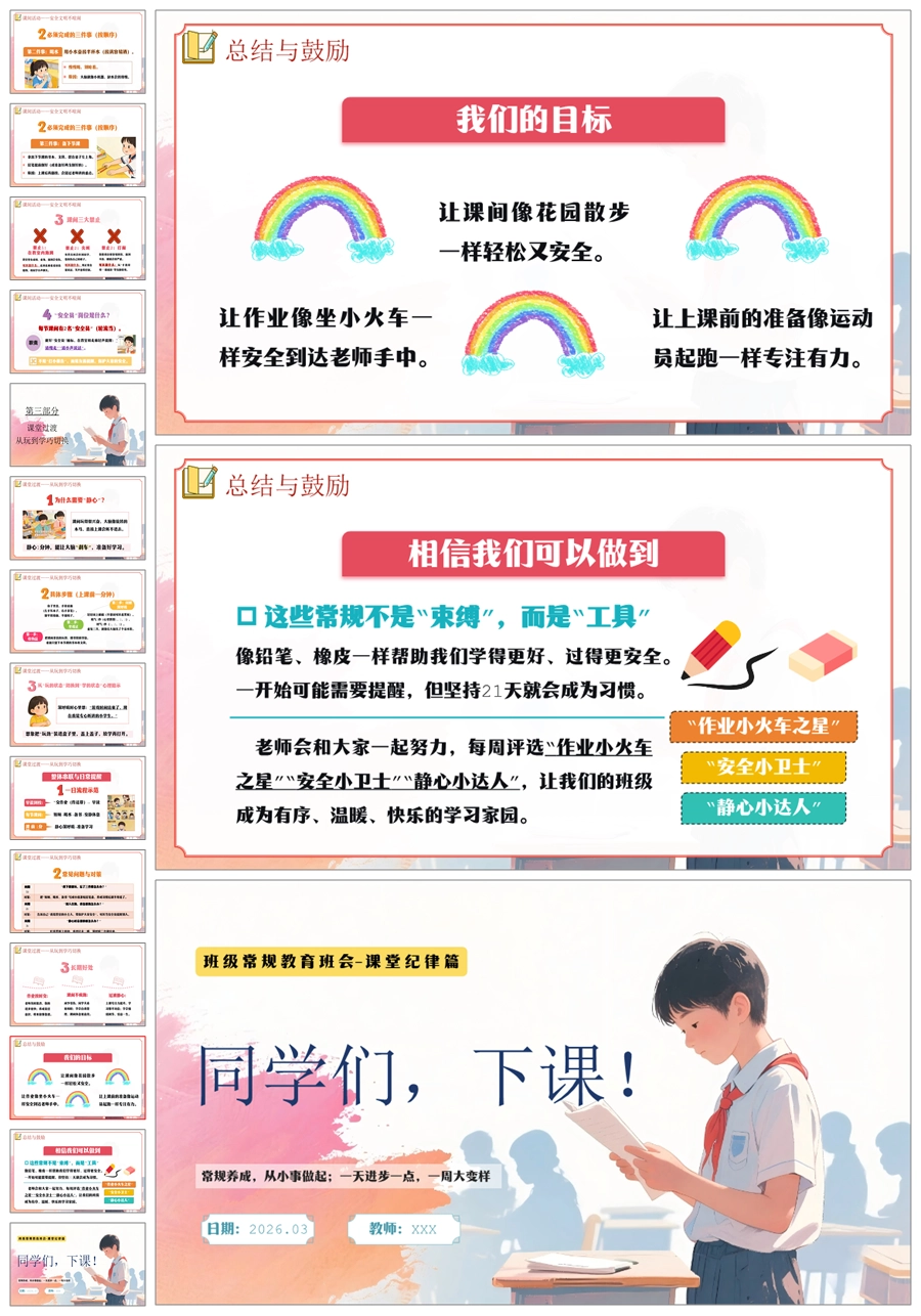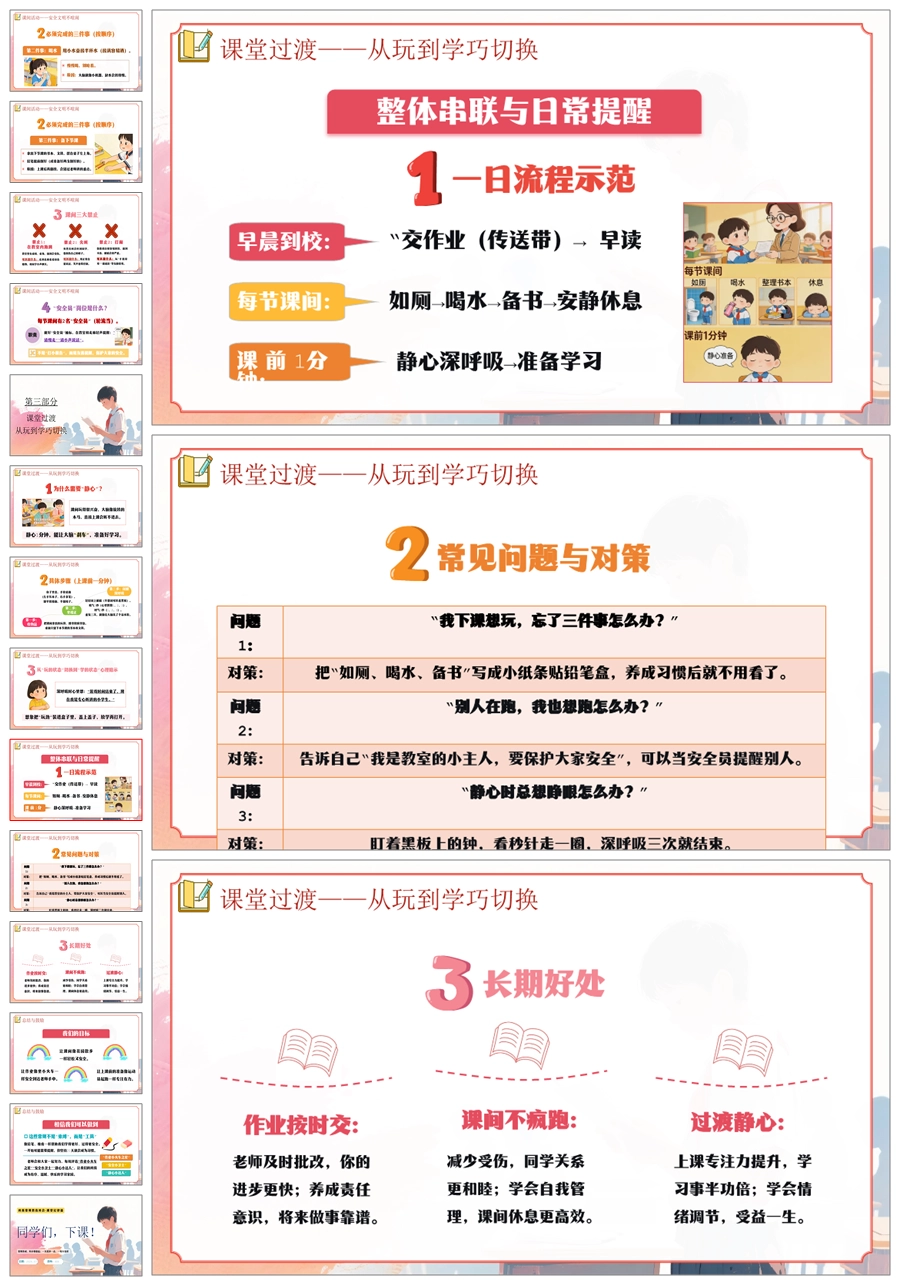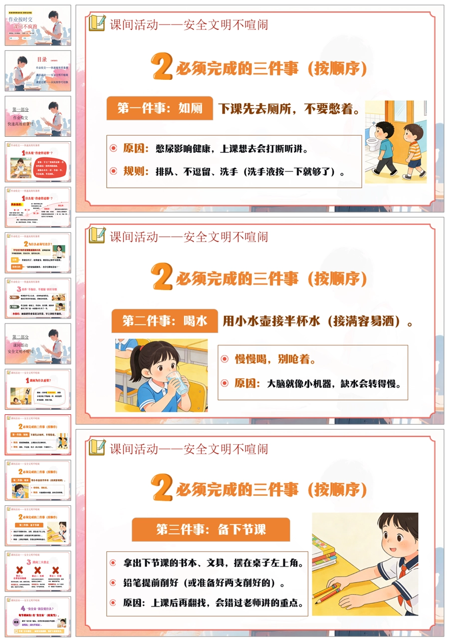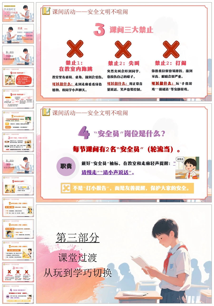 【6054】《作业按时交·课间不疯跑》班级常规教育学习指导小学主题班会PPT课件+教案