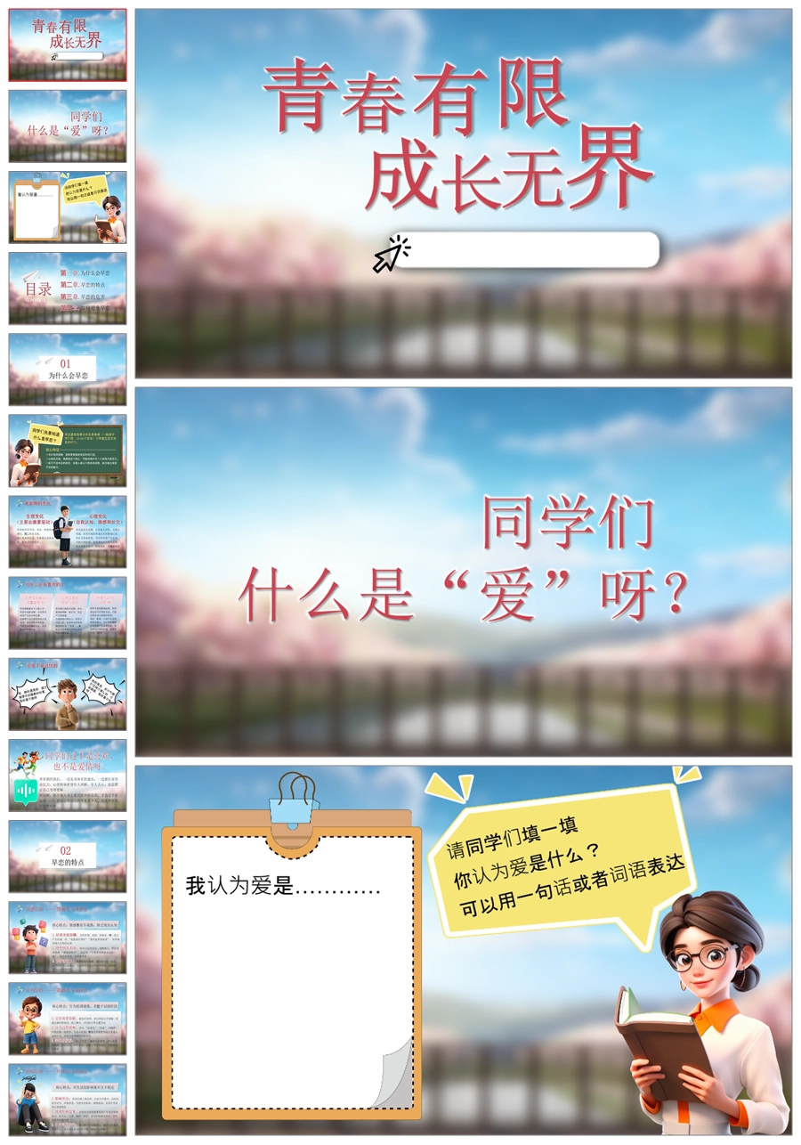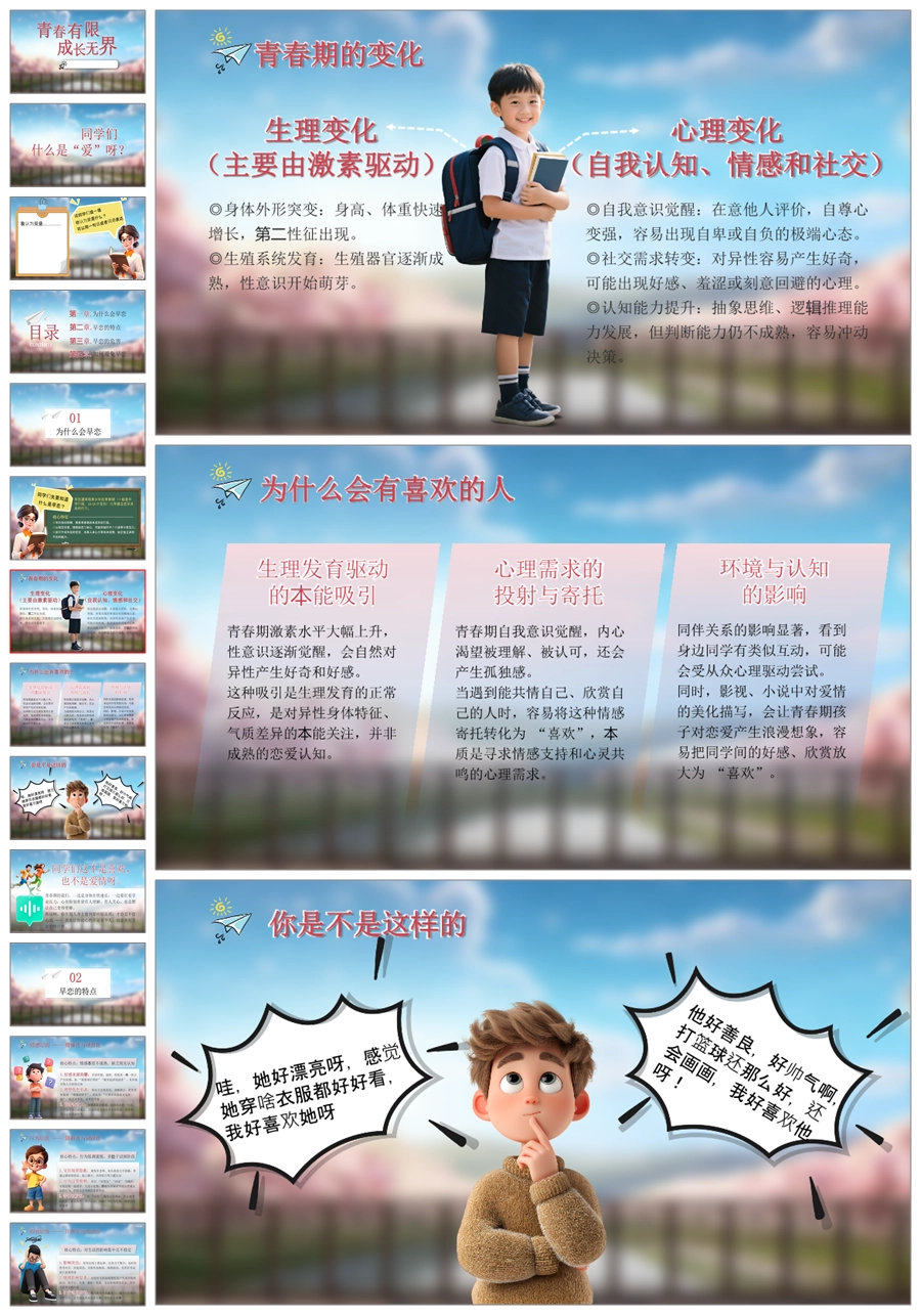 【6060】《青春有限,成长无限》预防早恋主题班会PPT课件+教案+视频