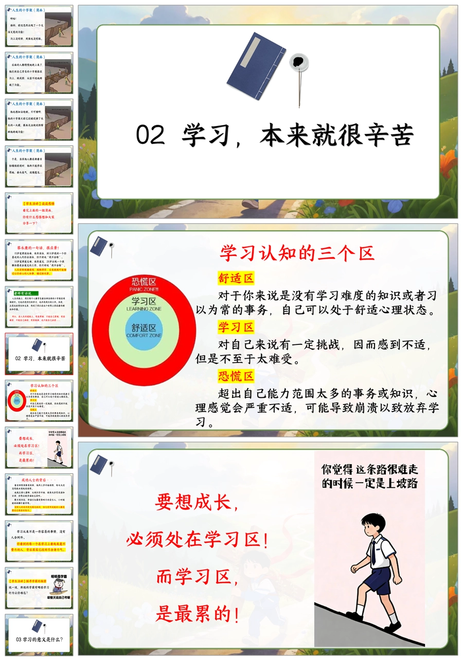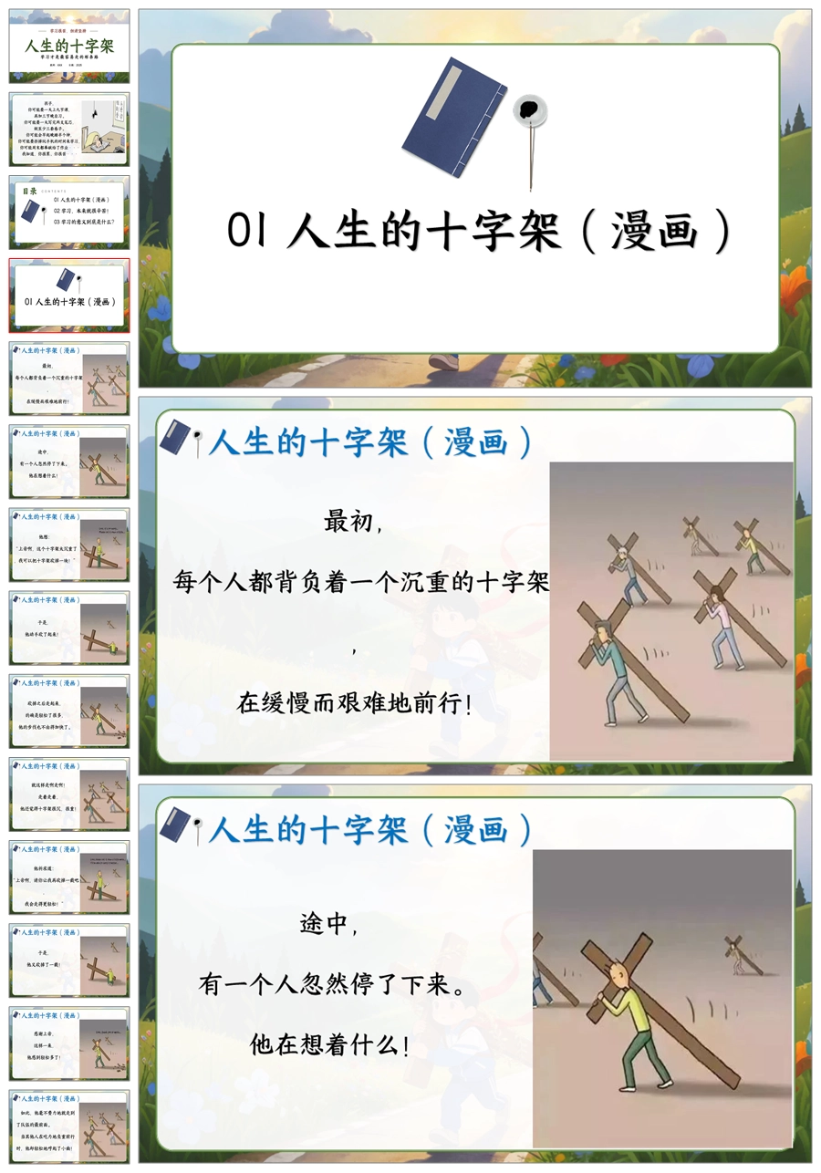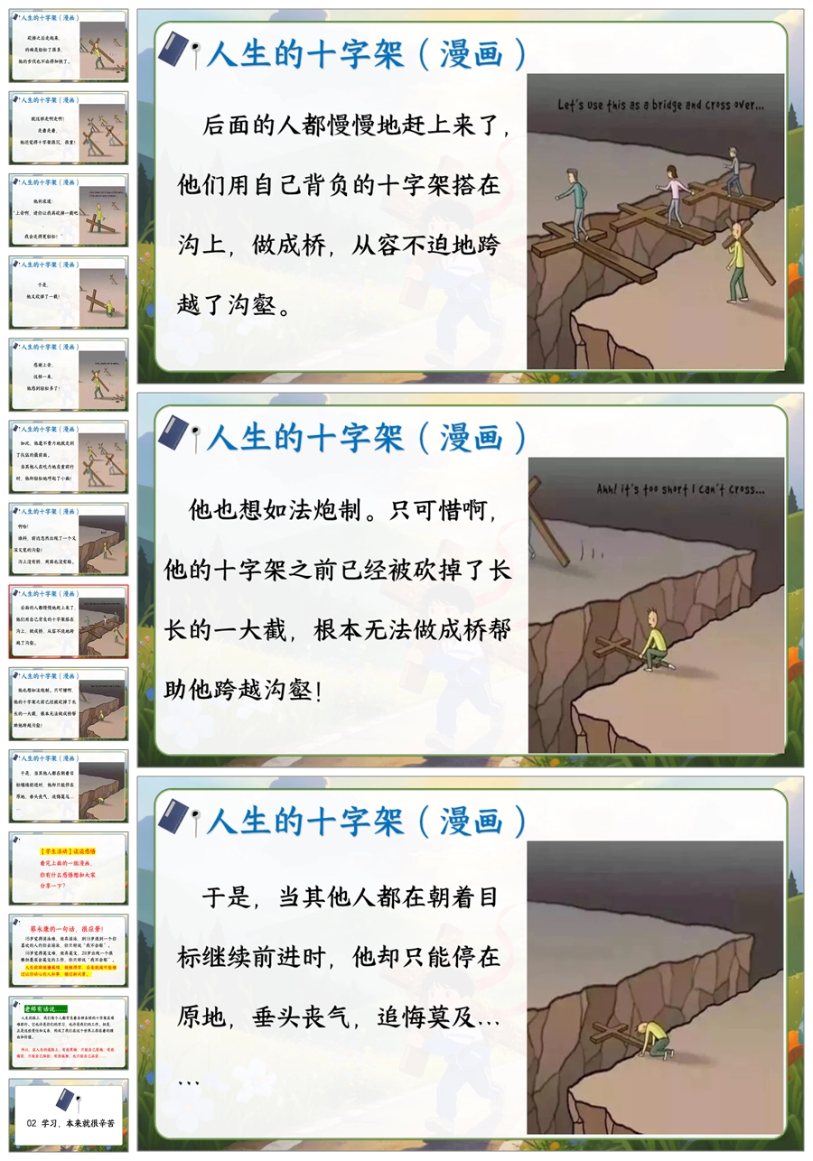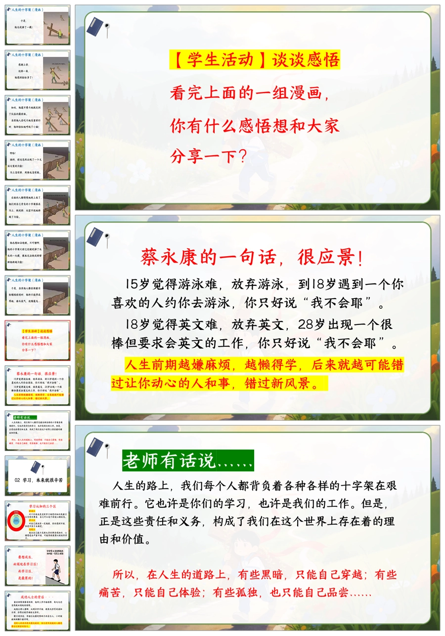 【6077】《学习很苦,但请坚持》人生的十字架主题班会PPT+逐字稿+教案