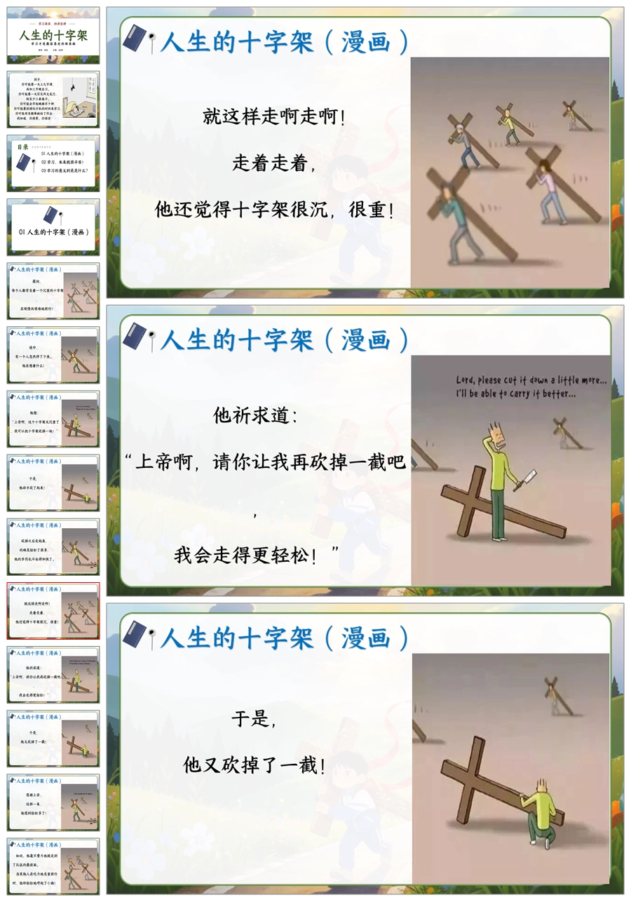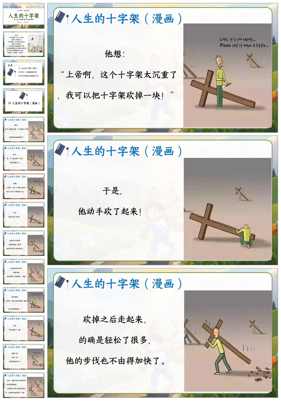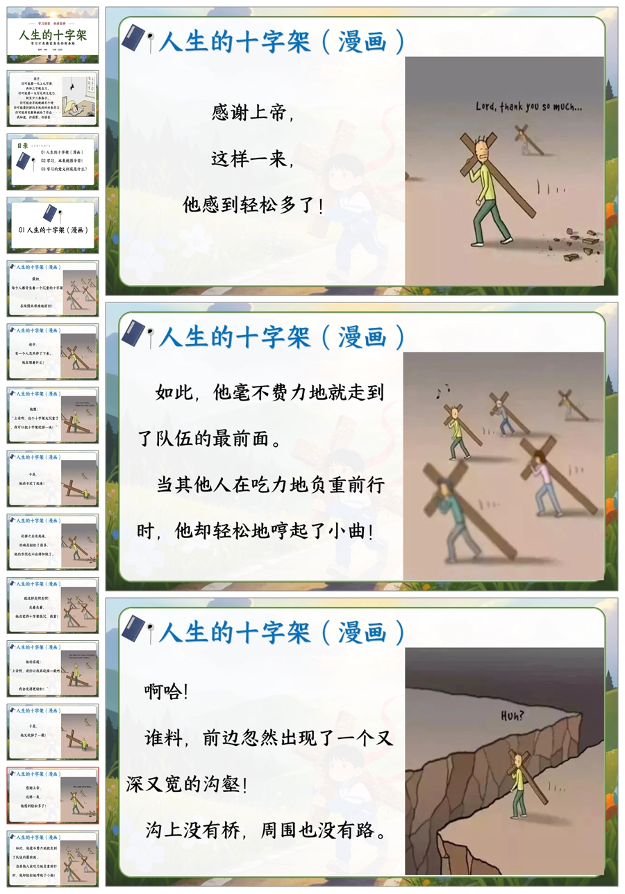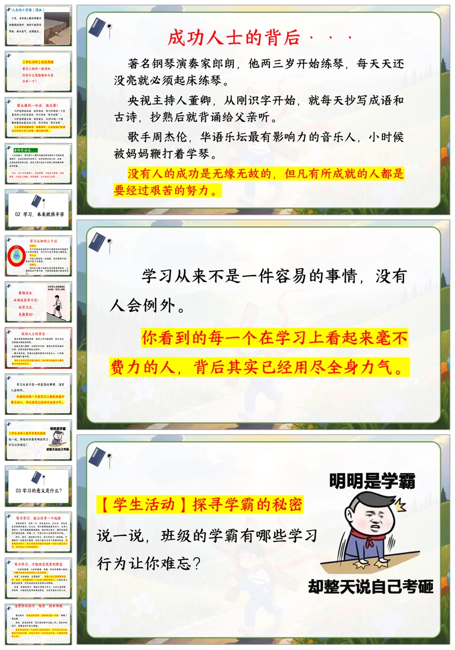 【6077】《学习很苦,但请坚持》人生的十字架主题班会PPT+逐字稿+教案